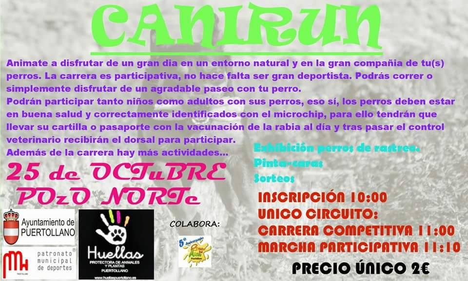 30 septiembre 2018 CANIRUN “HUELLAS” Anímate a disfrutar de un gran día en un entorno natural y en la gran compañía de tu(s) perro(s). Ven con nosotros y participa en nuestro CANIRUN, como en años anteriores tendrá lugar el domingo…