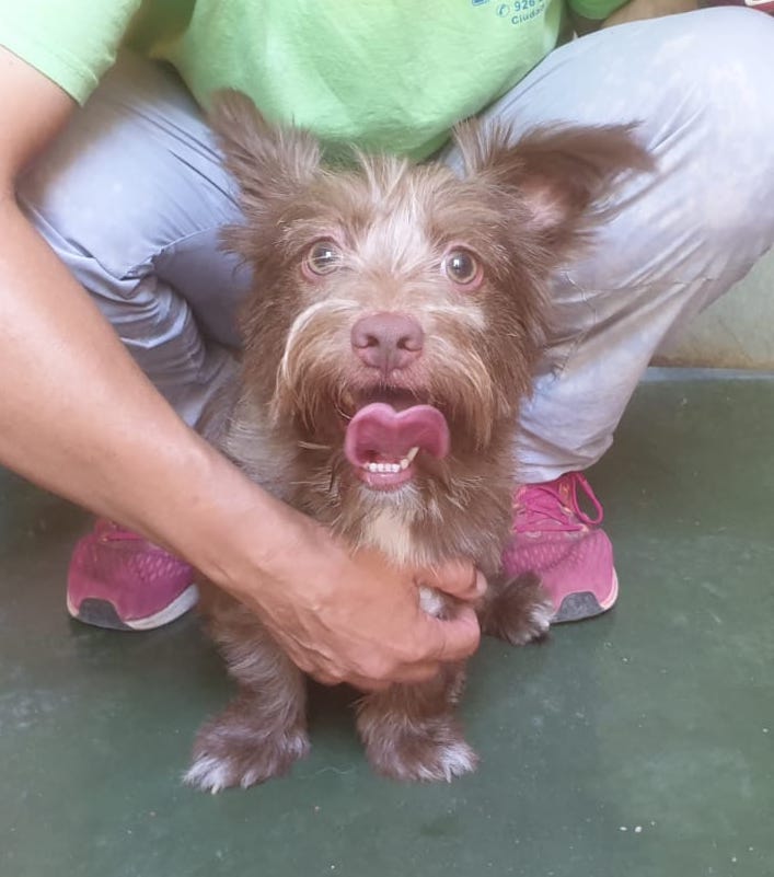 24 agosto 2020 Chuspy es un perro super bueno, va muy con la correa para pasear. Tiene entre 4 y 5 años