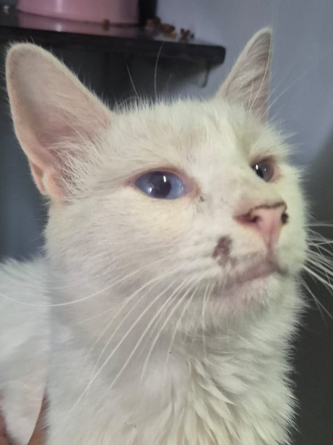 26-07-2025 Copito fue abandonado en condiciones lamentables. Ahora tras su atención veterinaria busca una familia. Es buenísimo con personas y otros gatos. Tiene 2 años