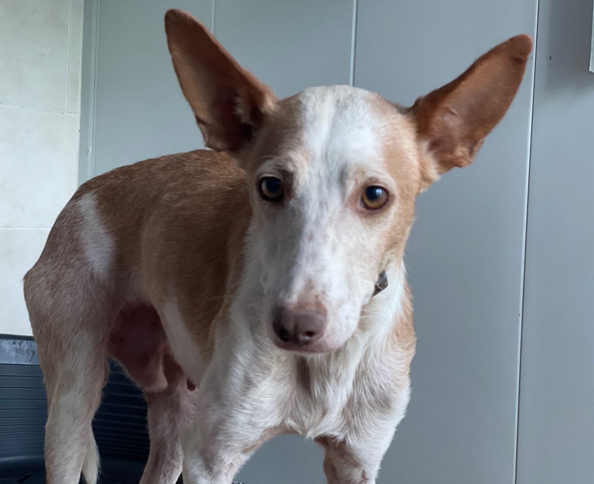 6 julio 2021 Palomo es un podenco mayorcito, que ya no lo quieren. Es bueno, tranquilo, algo tímido y bien con otros perros. De 2013