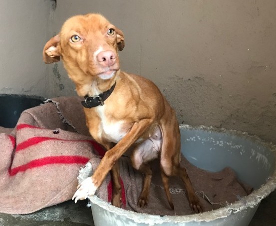 29 marzo de 2018 Podenquita muy pequeñita, de agosto de 2017 Es buenísma con personas, con perros también, pero está asustada en el albergue.
