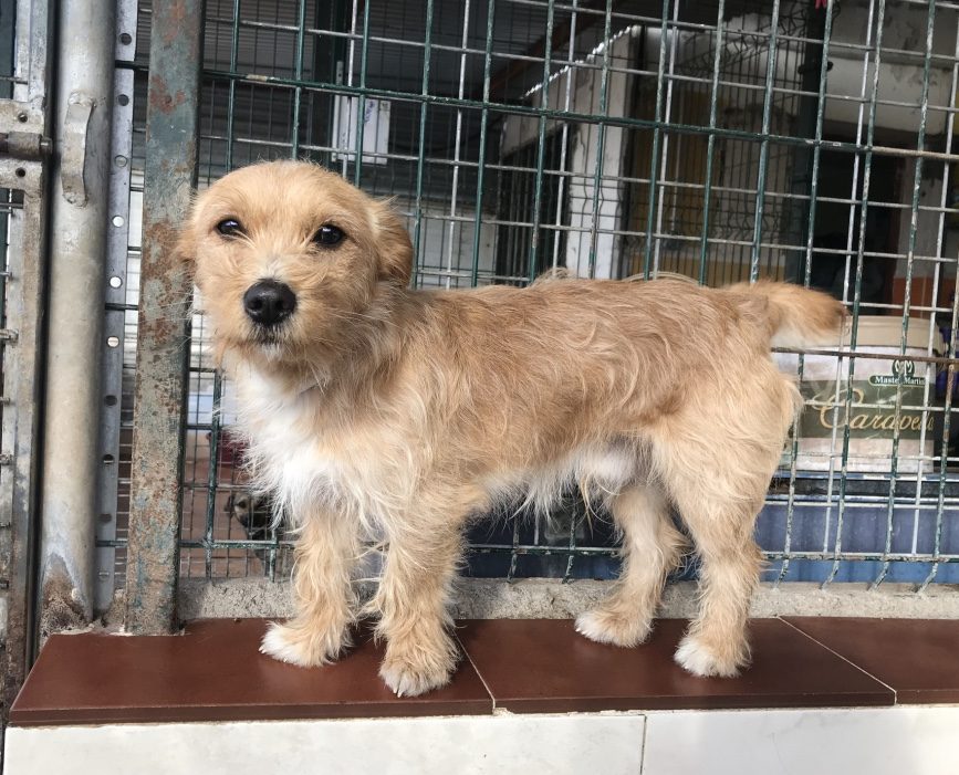 23 marzo 2019 Perrito encontrado en el Villar, estaba lleno de garrapatas. Es muy joven. Tendrá alrededor de 8 meses.
