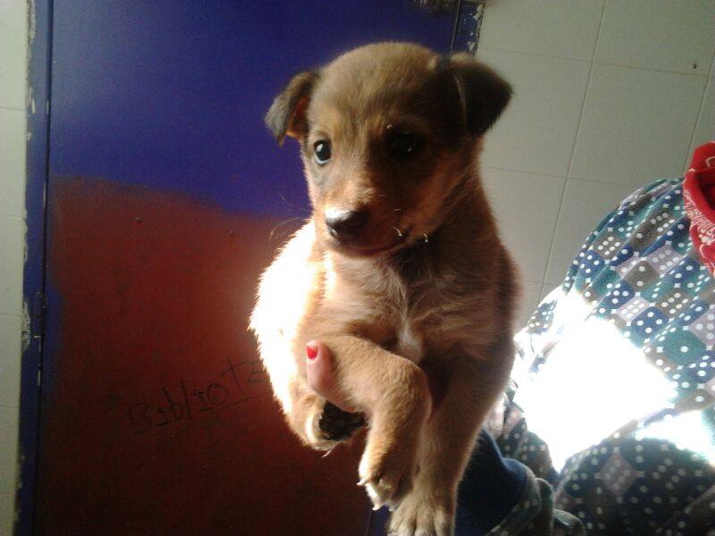 Este es Darco, un cachorrito macho de 2 meses, quizás menos, que ya come solito. Ahora es muy pequeñito de tamaño y crecerá a un tamaño mediano, mestizo precioso que no a tenido suerte y ya conoce lo que es el abandono y el desprecio.