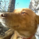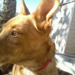 Este podenco apareció perdido en la casa de uno de nuestros voluntarios, que lo tiene en acogida desde entonces. Tiene unos cinco años; llegó muerto de hambre, probablemente perdido o abandonado por sus dueños. Es un podenquillo muy alegre y sociable con otros perros; obediente e inteligente, sabe buscar su lugar en el hogar sin arrinconarse aunque es un poco dominante con la comida.