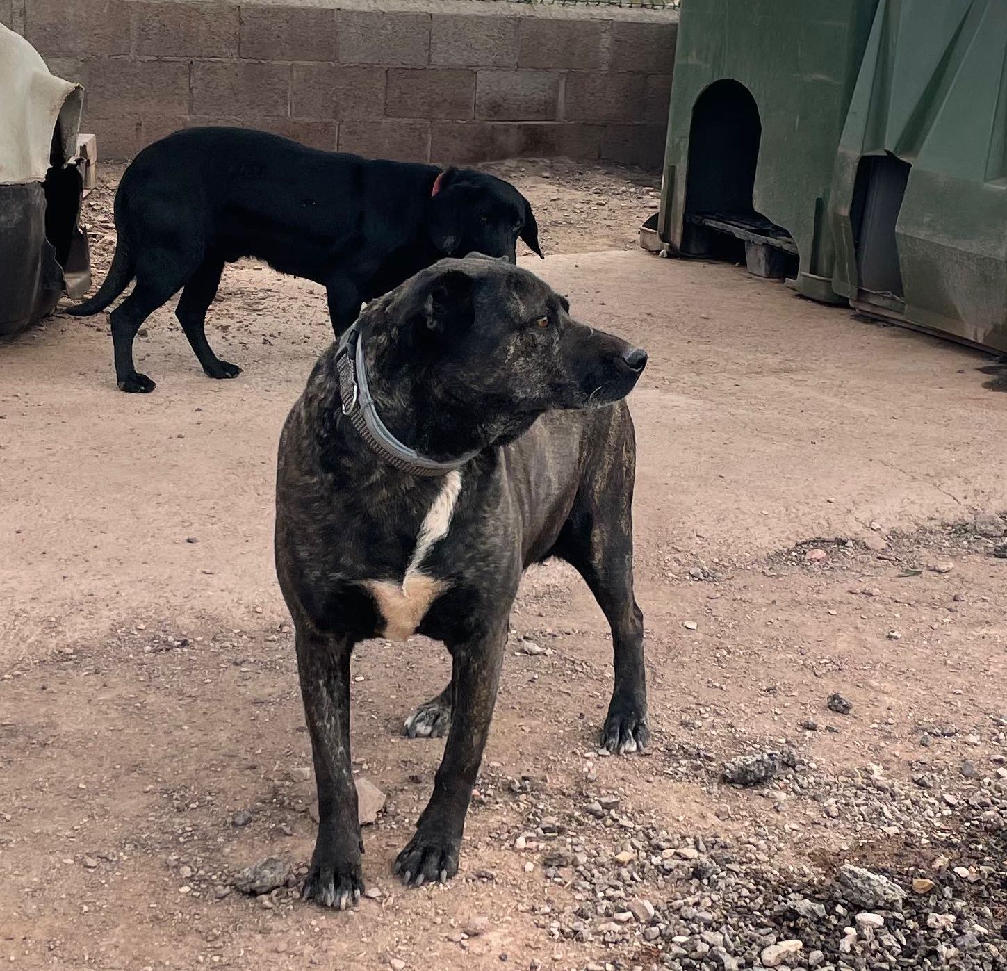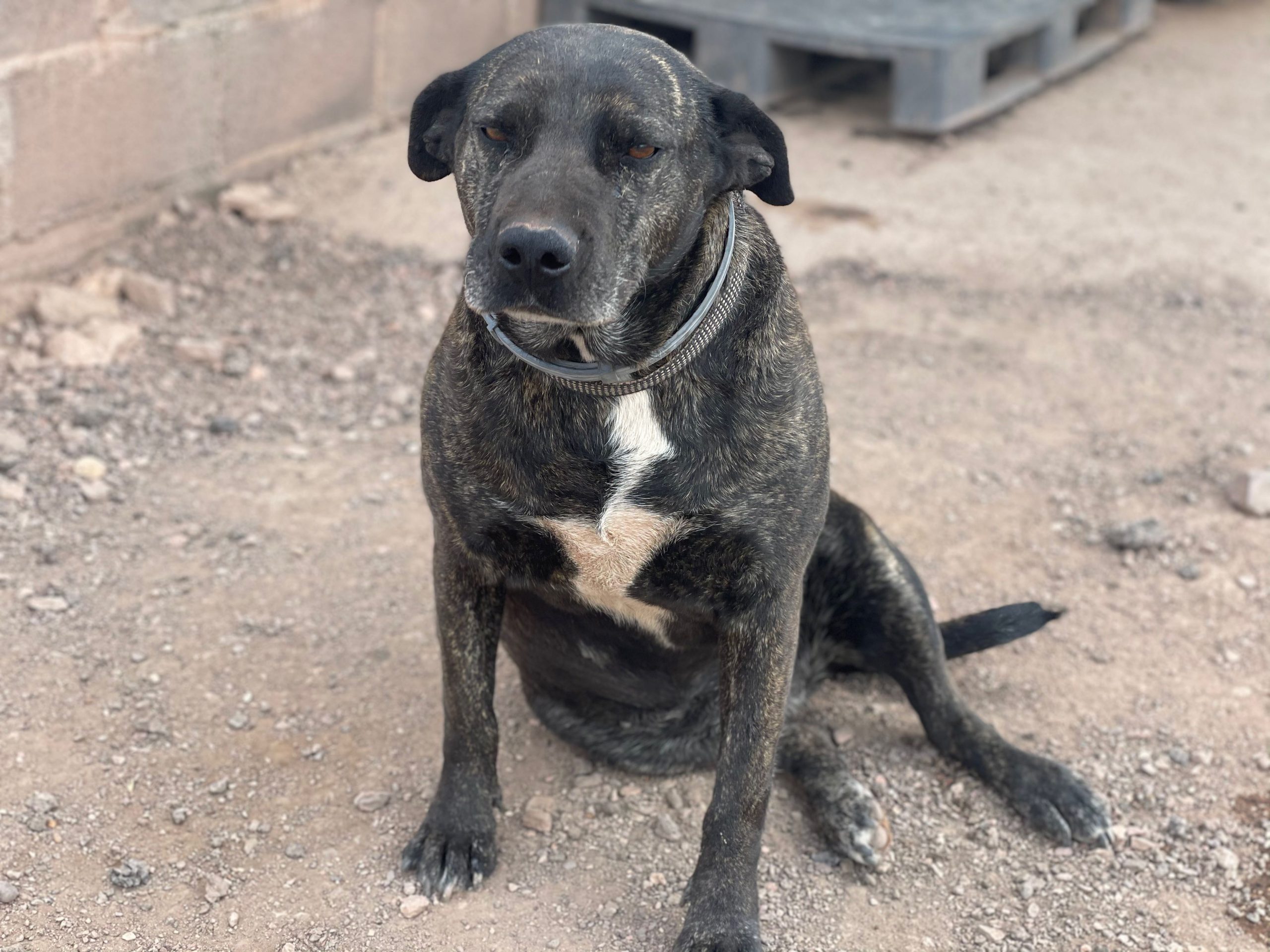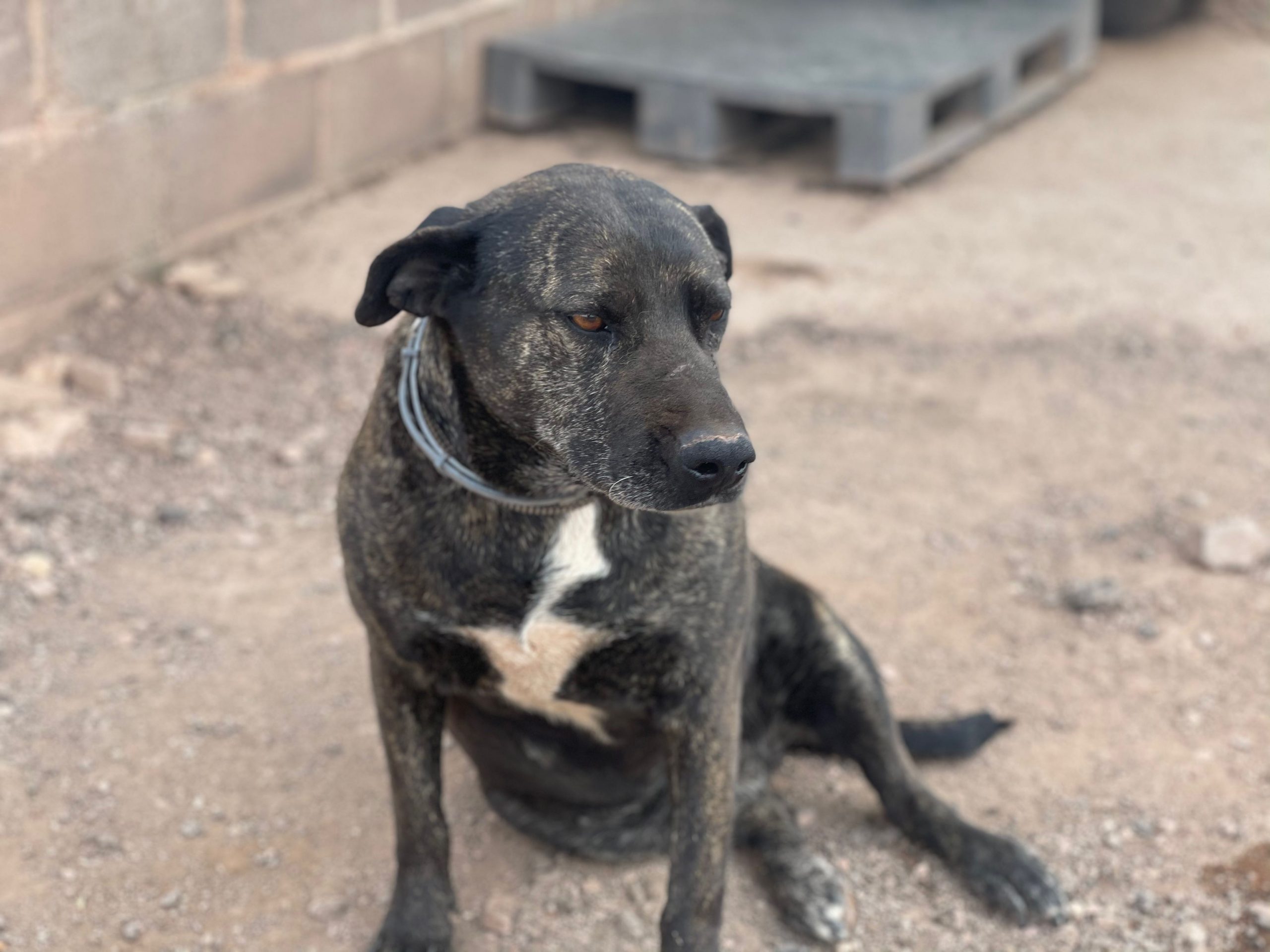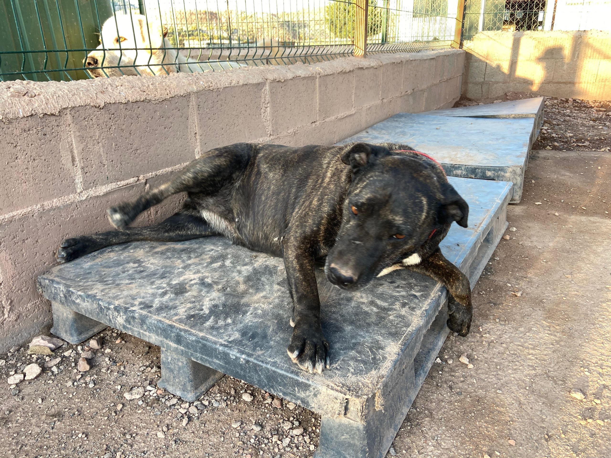Esta perra tan guapa es Polka, fue llevada al albergue por la Policía Local, llevaba varios días sola por la calle, es una perra activa y muy cariñosa con personas, carácter típico de cachorro. Convive con mas perros y no tiene problemas con ellos.