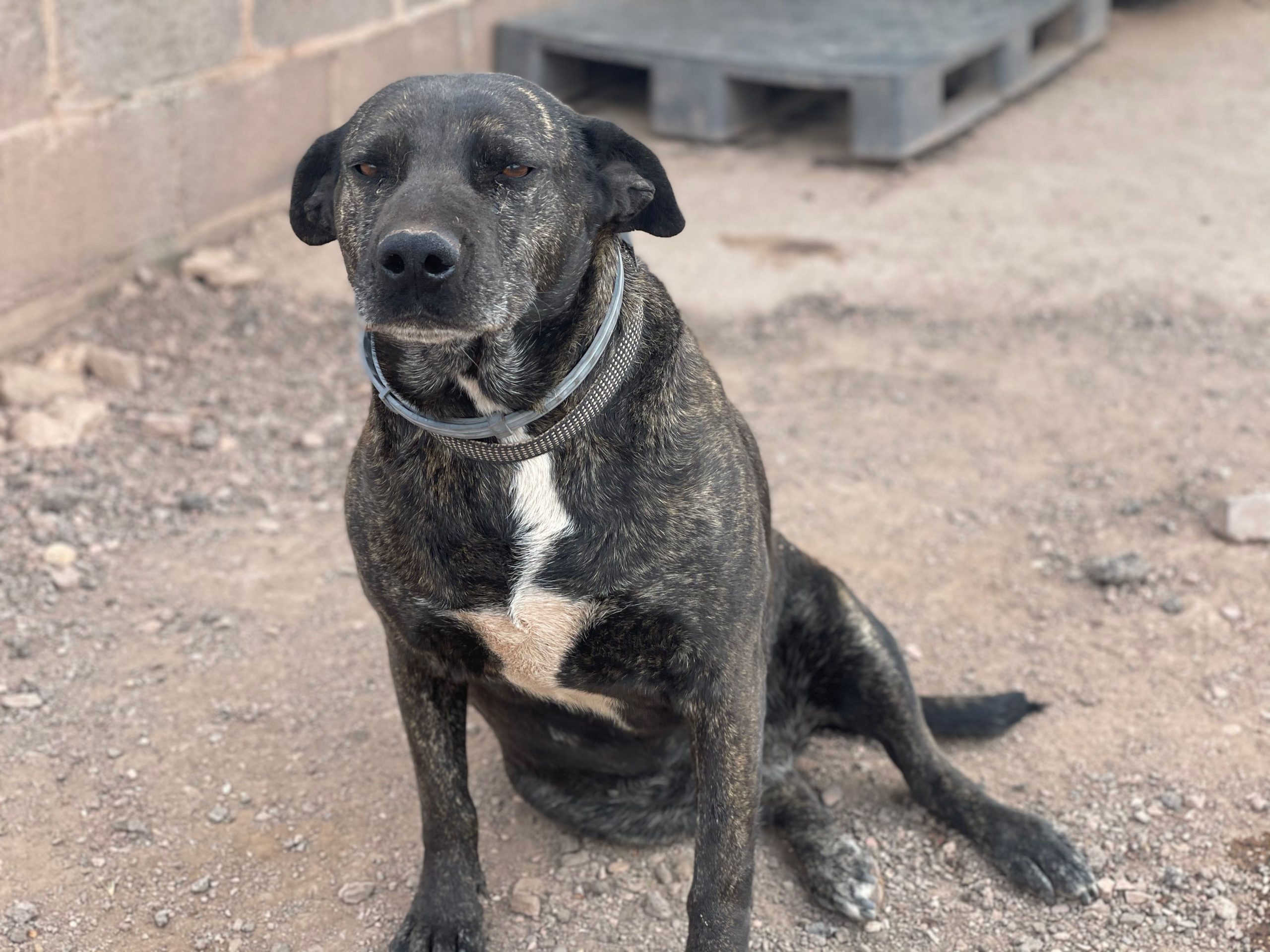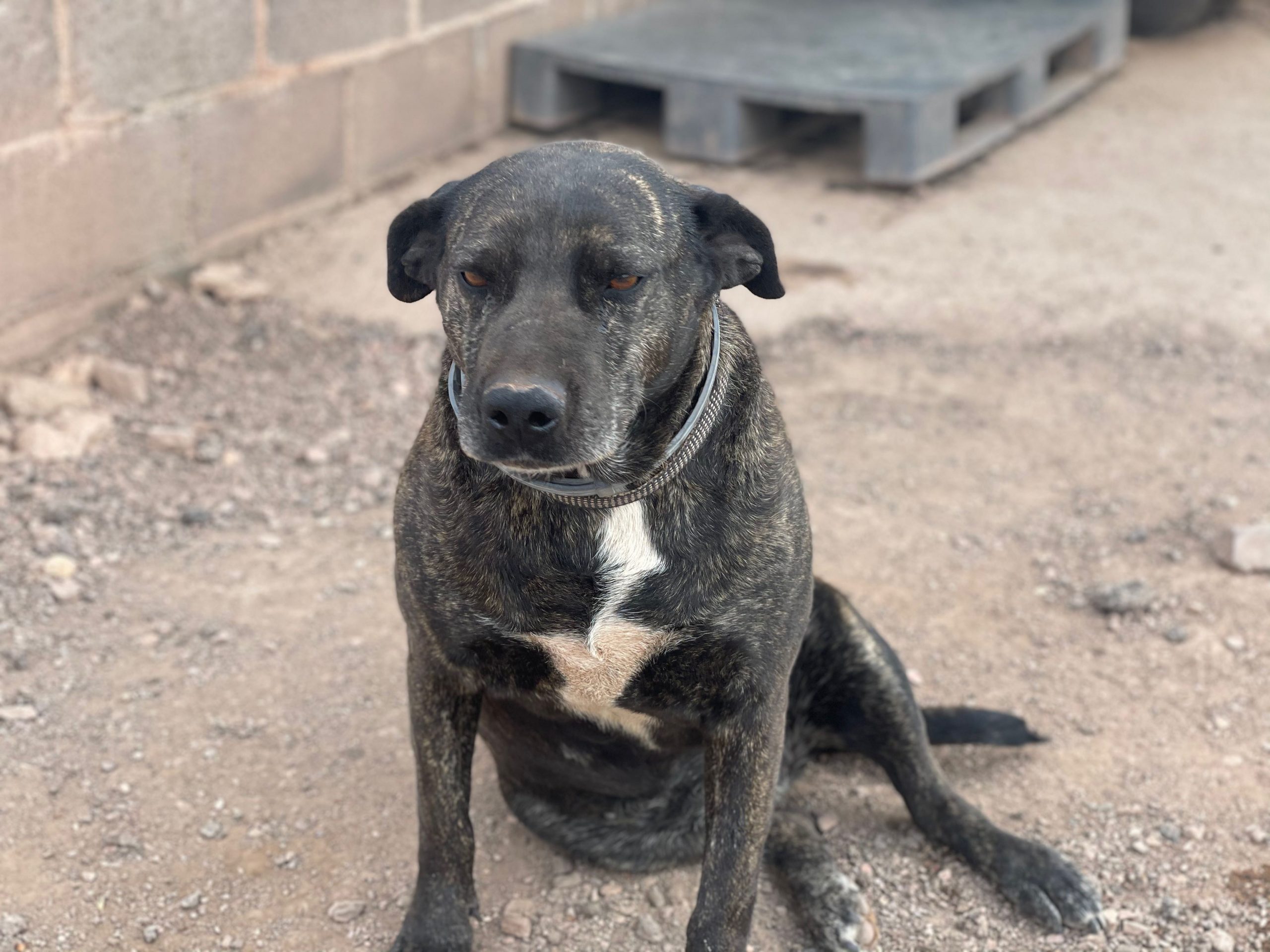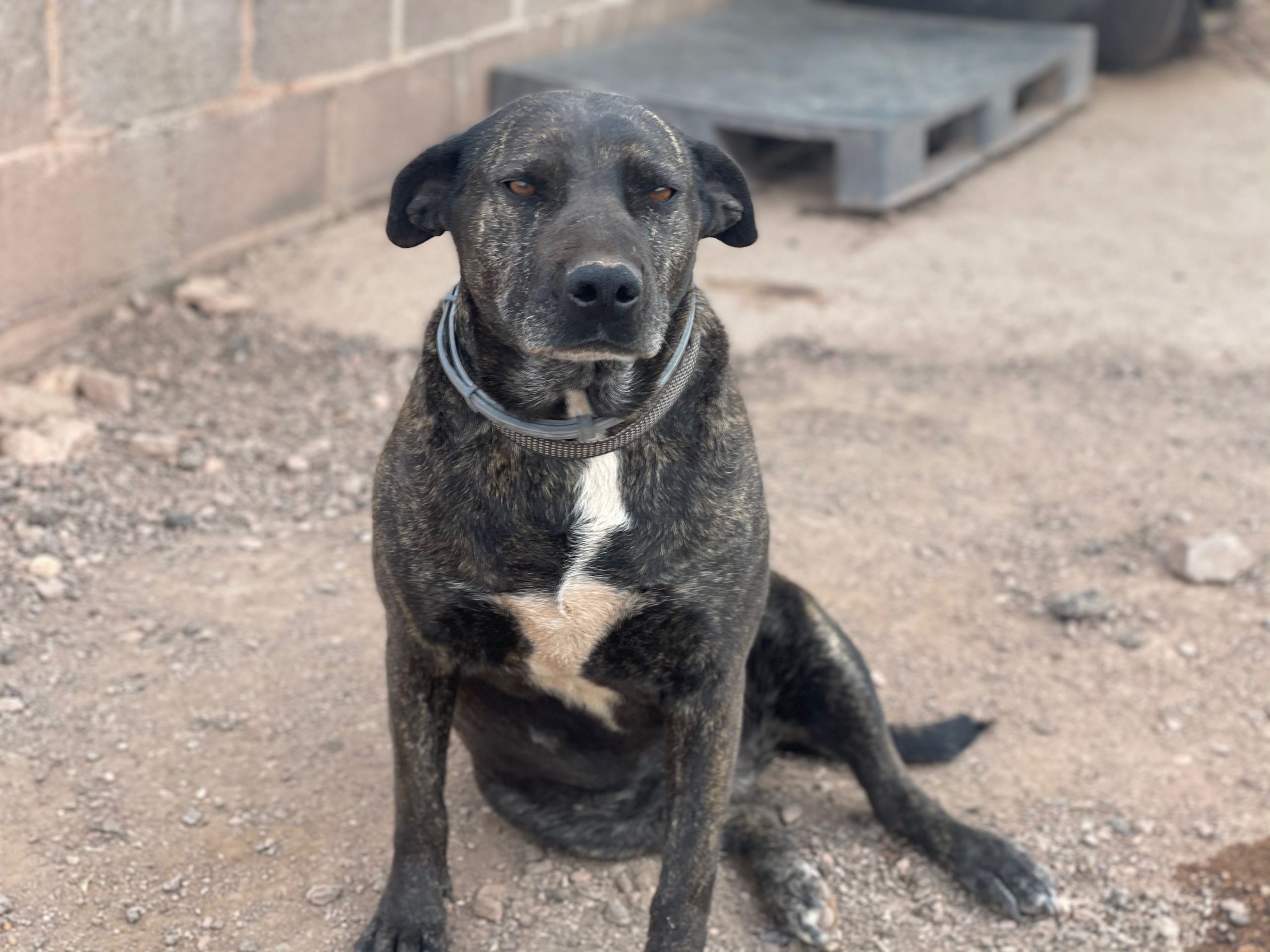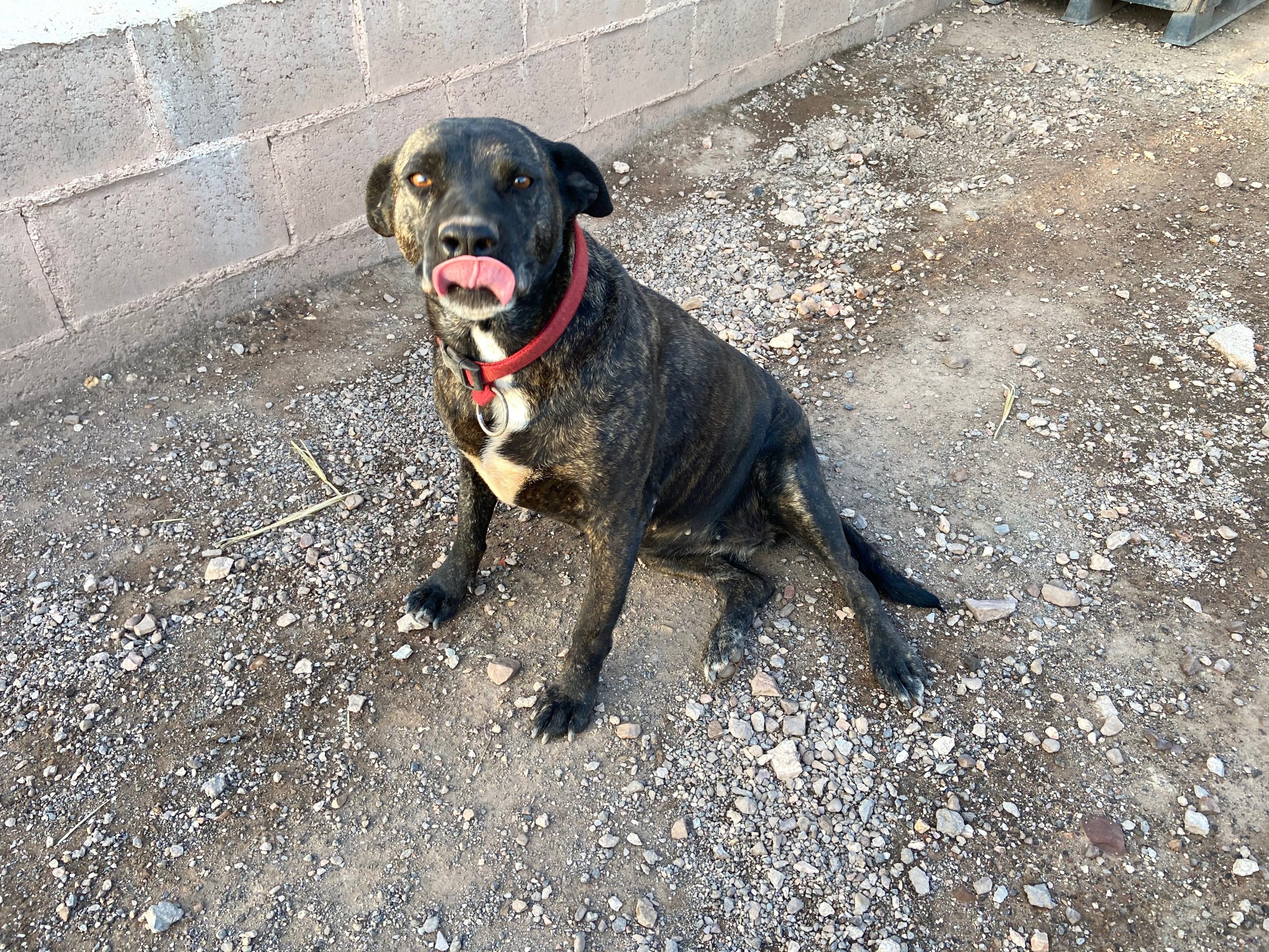Esta perra tan guapa es Polka, fue llevada al albergue por la Policía Local, llevaba varios días sola por la calle, es una perra activa y muy cariñosa con personas, carácter típico de cachorro. Convive con mas perros y no tiene problemas con ellos.