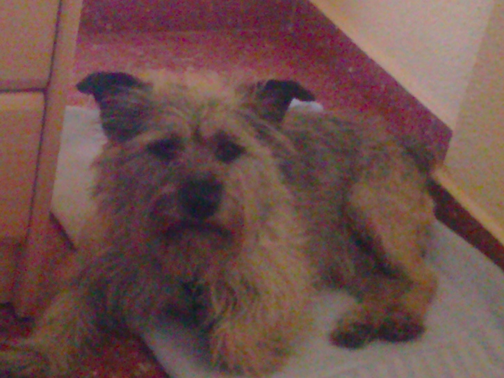 Este perro estaba en una casa de una familia con problemas mentales aquí en Puertollano y fue arrojado desde un tercer piso a la calle hace unos meses rompiéndose solo una pata. Servicios Sociales les retiró la custodia del animal y se le llevo a la Protectora, donde fue atacado por otros perros más grandes, sufriendo graves heridas en los cuartos traseros y en los genitales, de tal forma, que estuvo a punto de ser eutanasiado porque creían que no saldría.