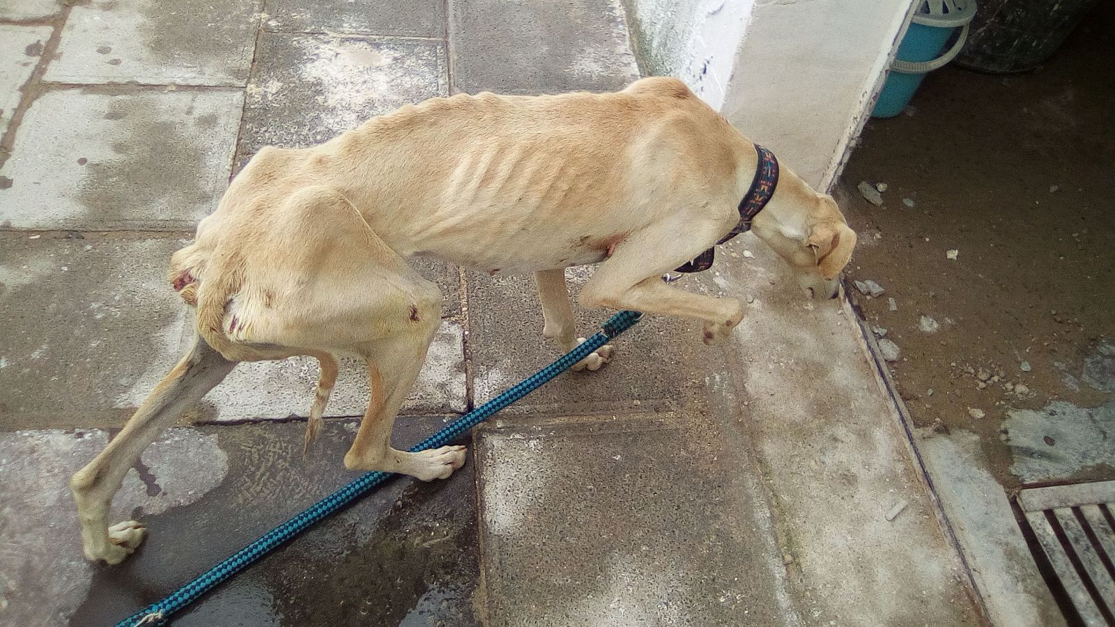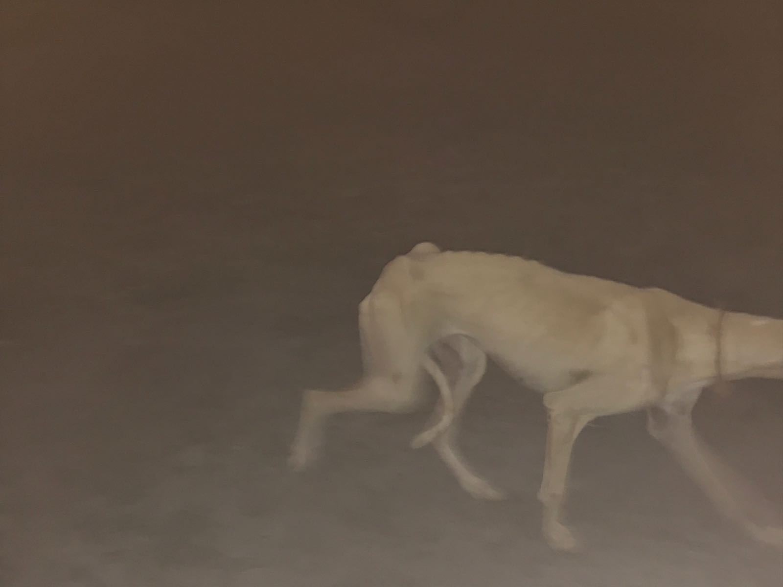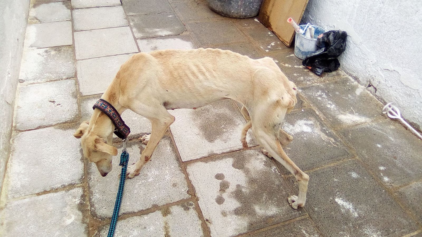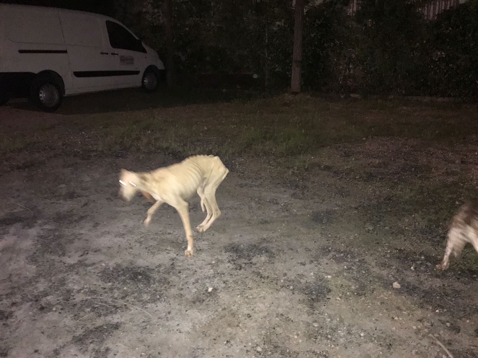 Breda es una galguita que tendrá como mucho 1 año y medio, y que se ha encontrado en este estado lamentable, ha sido abandonada por uno de esos galgueros que “quieren tanto a sus perros”.