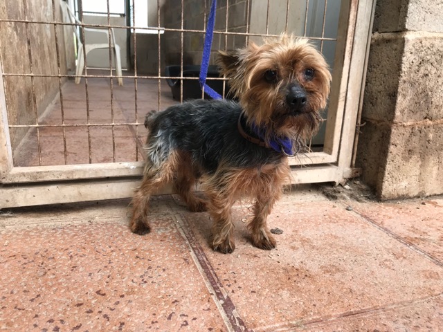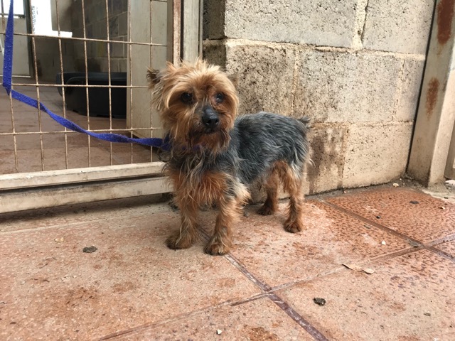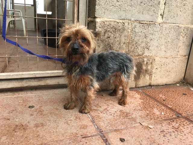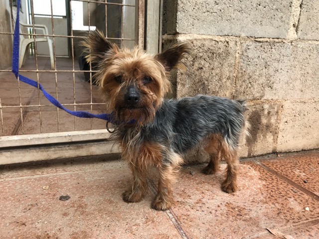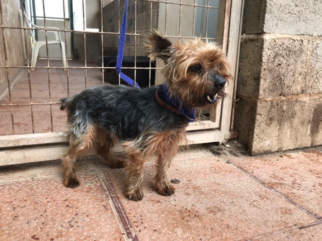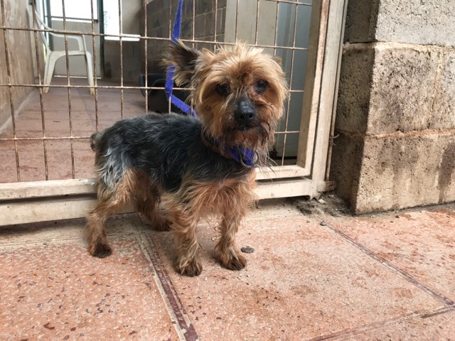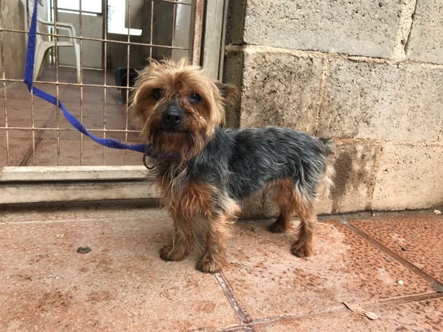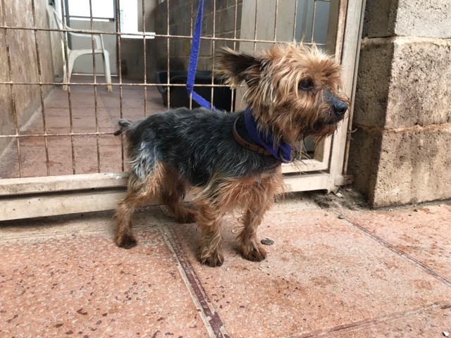 Boxi es un perrito de unos 9 años, nos ha llegado lleno de parasitos y en los huesos, también el pelo cortado a trasquilones.