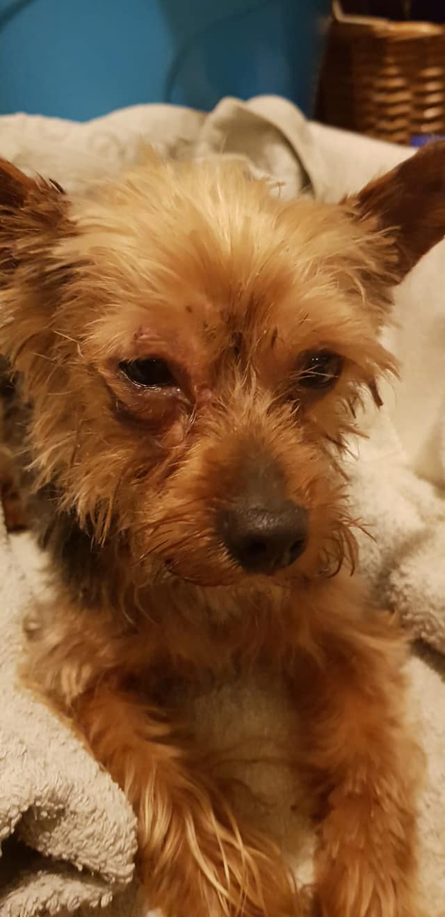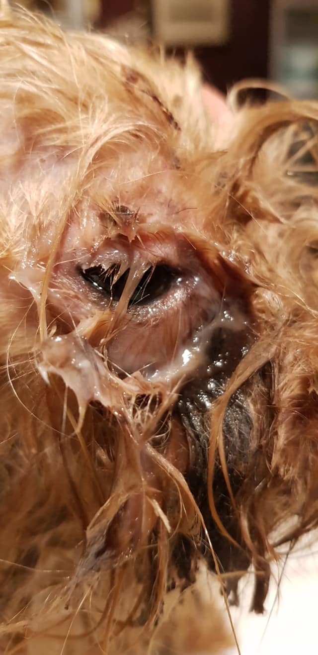 Un caso más, Minero es como hemos bautizado a este pequeño que fue recogido de la calle por una voluntaria después de varios avisos,su estado era lamentable, un ojo totalmente tapado de suciedad y de pelo enredado que le impedía abrirlo. Ahora se encuentra en el albergue ya lavado, ahora ya puede ver.