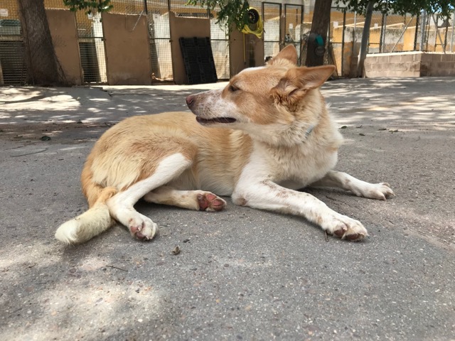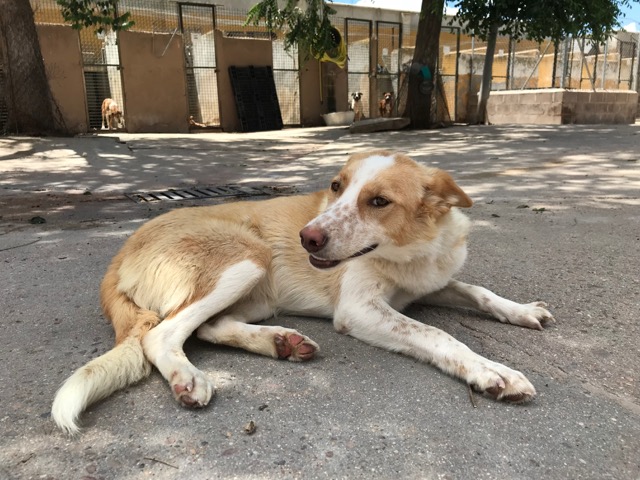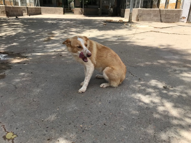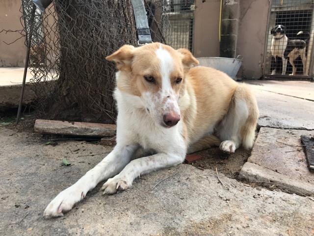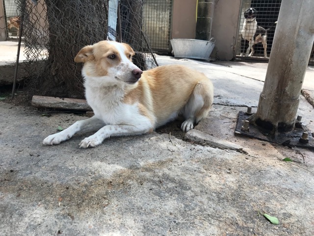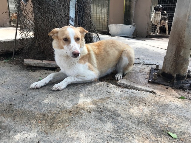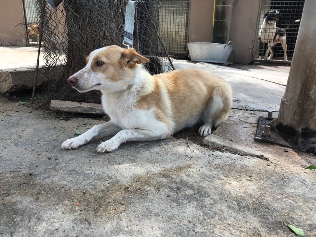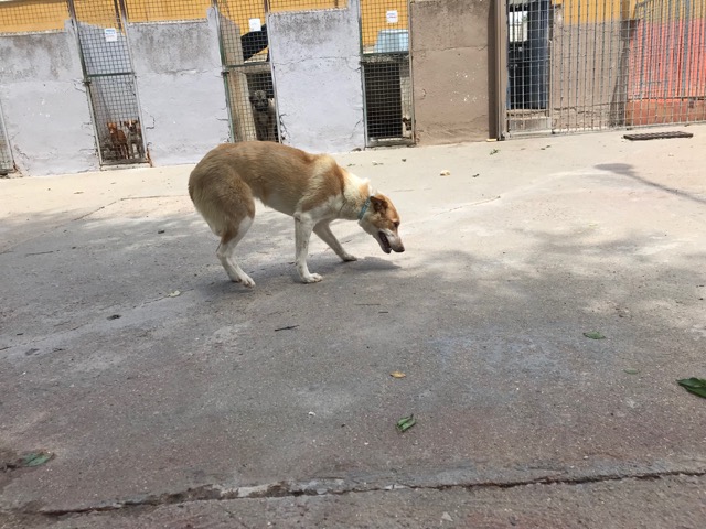 Citronela es una preciosa perra que fue recogida en la calle tras varios avisos de ellas, gracias a unos niños que le dieron de comer y se dejó coger.