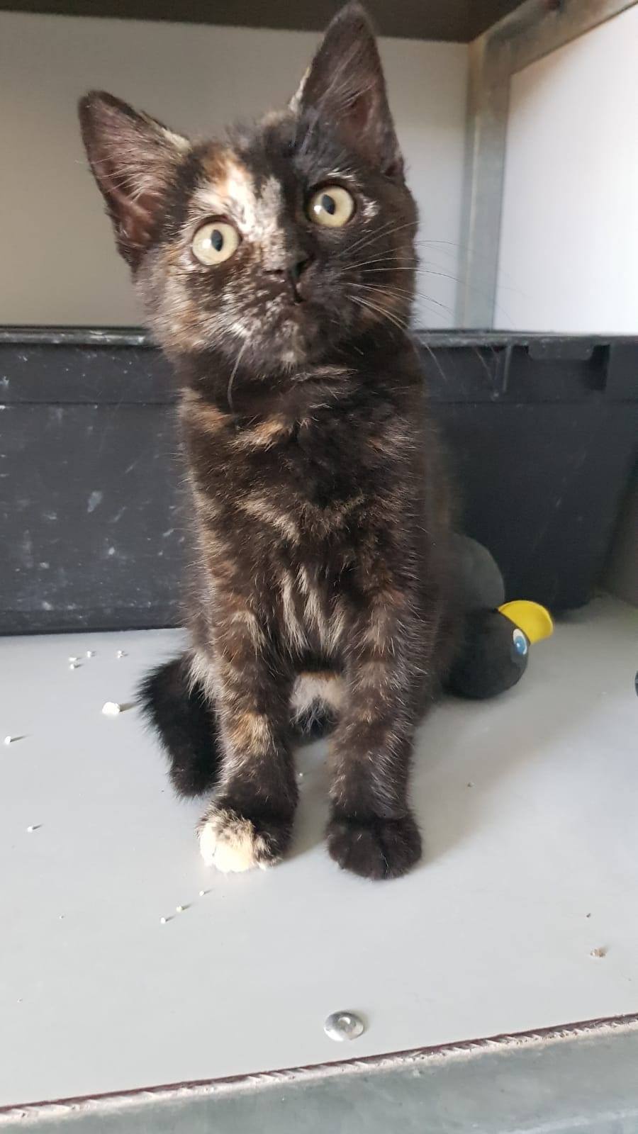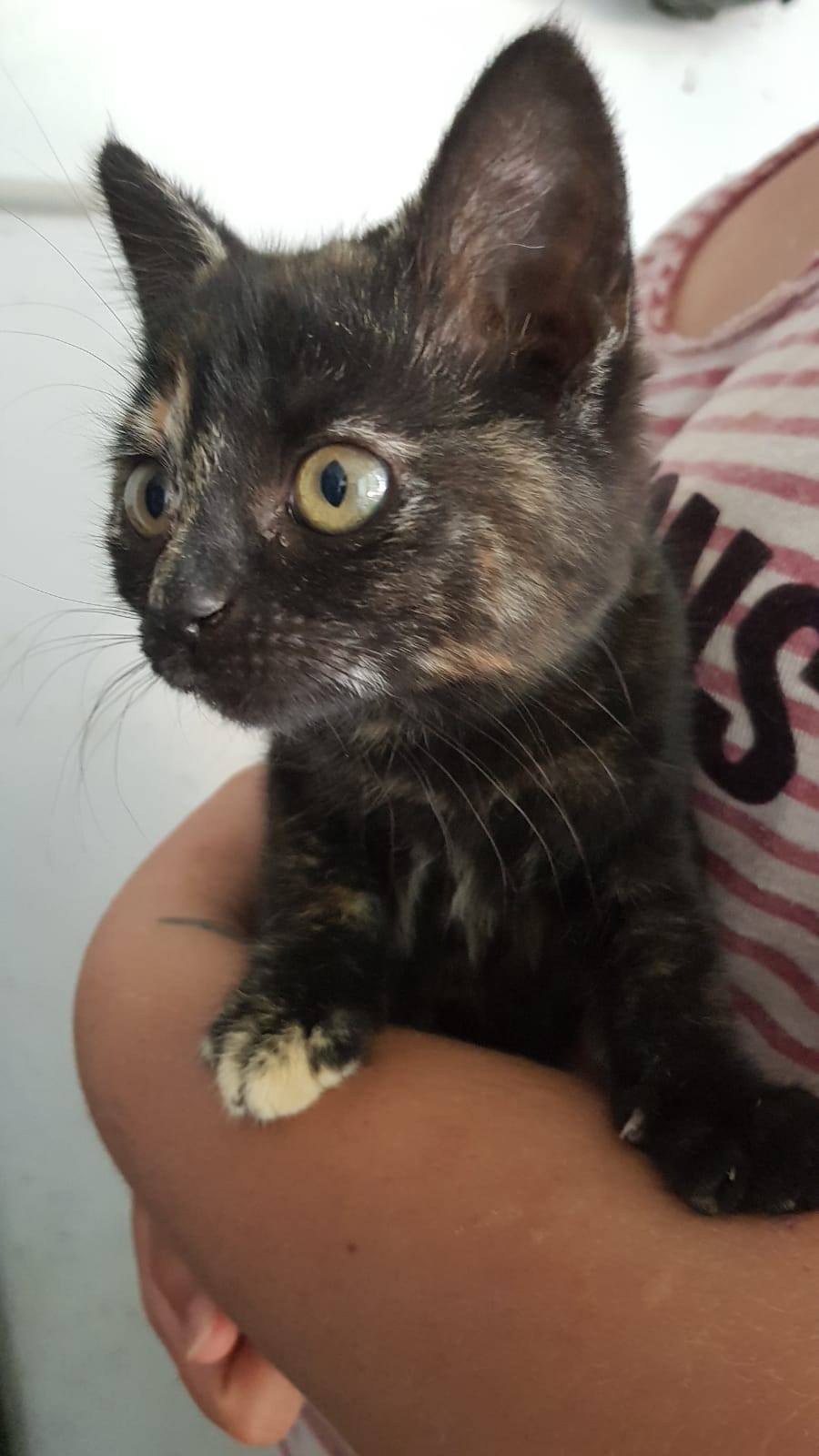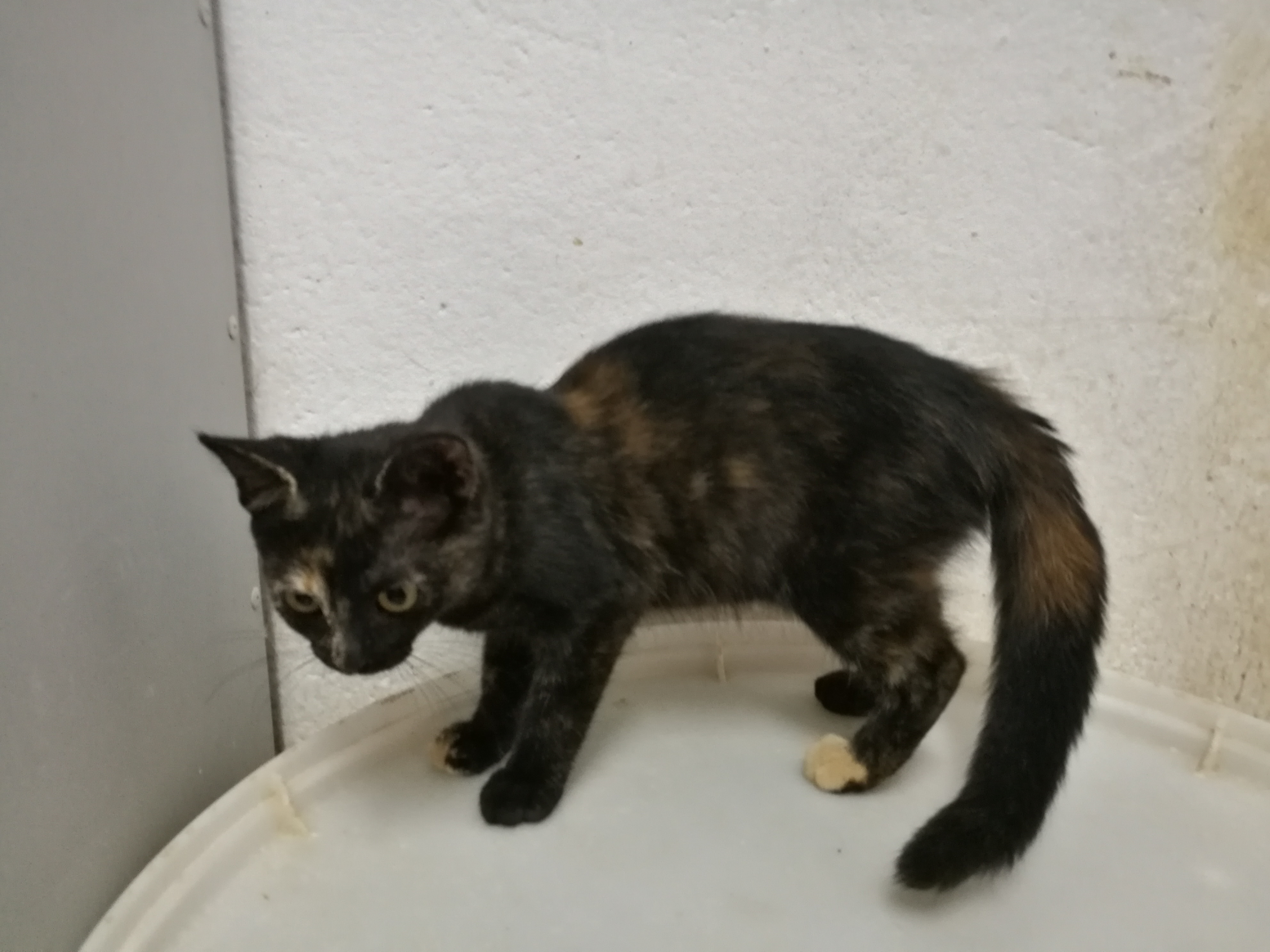 Nuestra pequeña Merche fue encontrada junto con su hermana que ya ha tenido la suerte de ser adoptada.