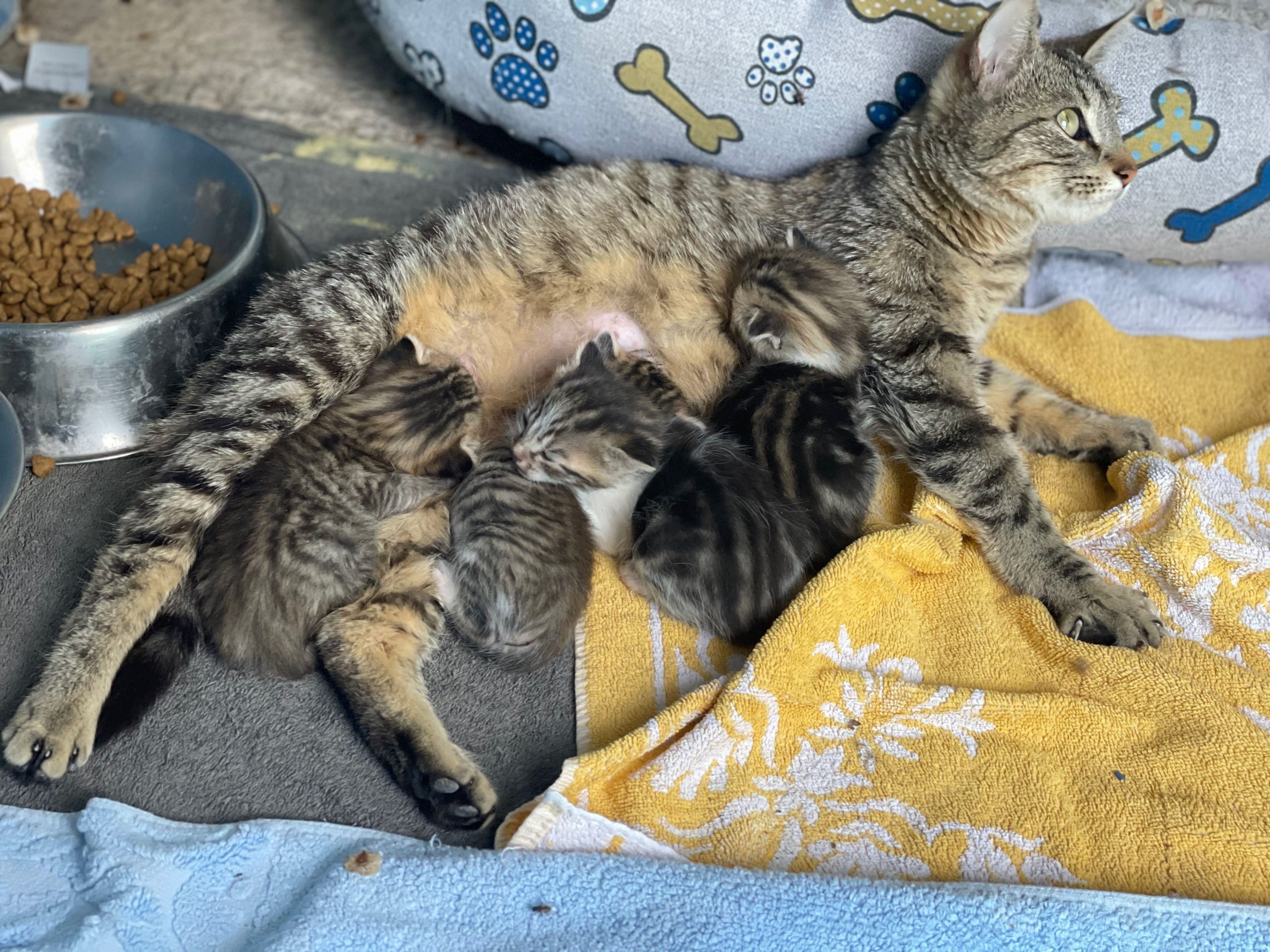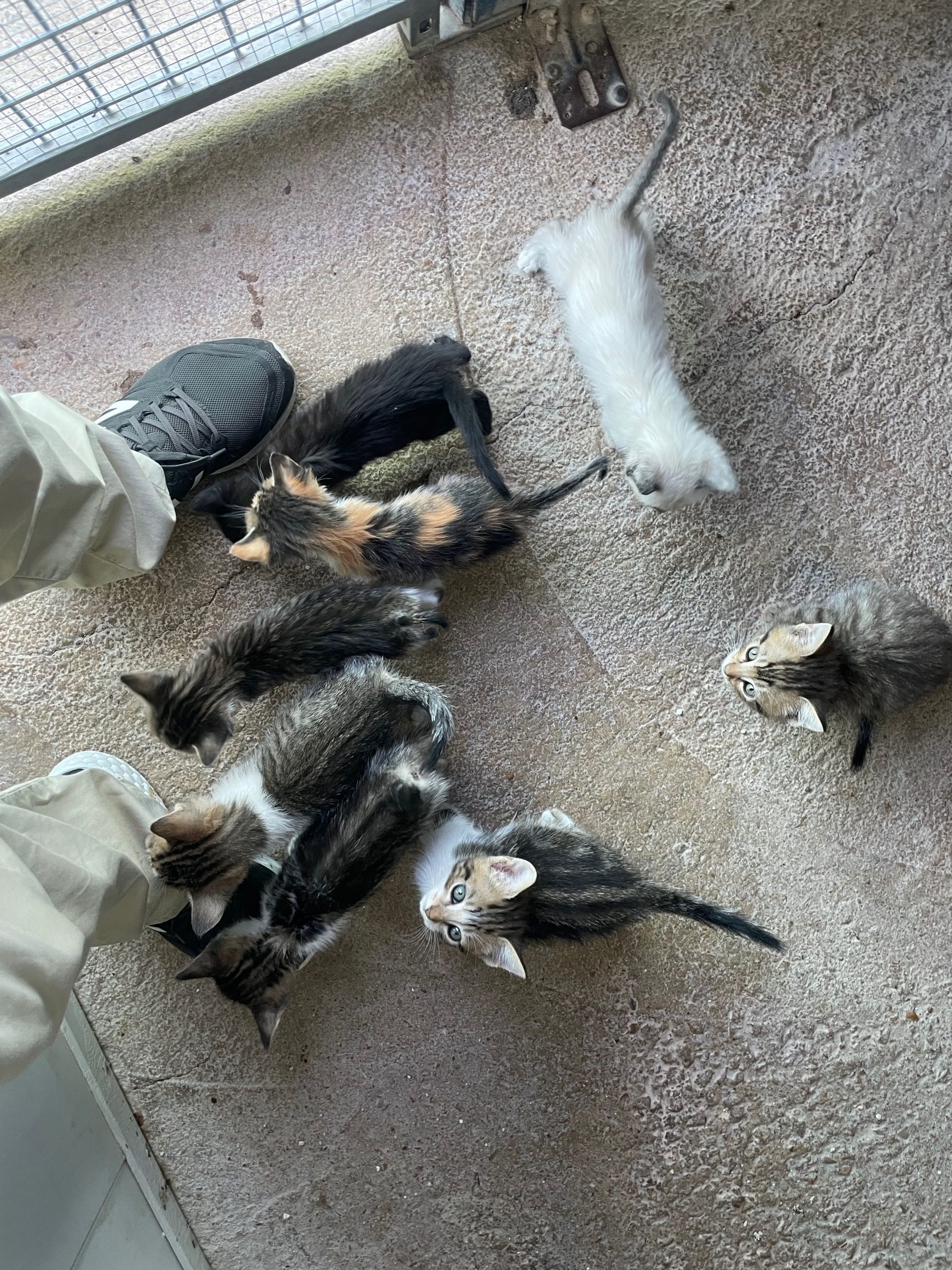 Tenemos este año más de 6 camadas, la gente le quita indiscrimidamente los gatos a sus madres y nos lo traen, se lavan las manos y conciencia y aquí nos quedan a nosotros, sin recursos de ningún tipo , ni económicos, ni humanos ni nada…..y ellos mientras van a jaulones, o van a un box de perros o algunos mueren tan pequeños de cualquier enfermedad.