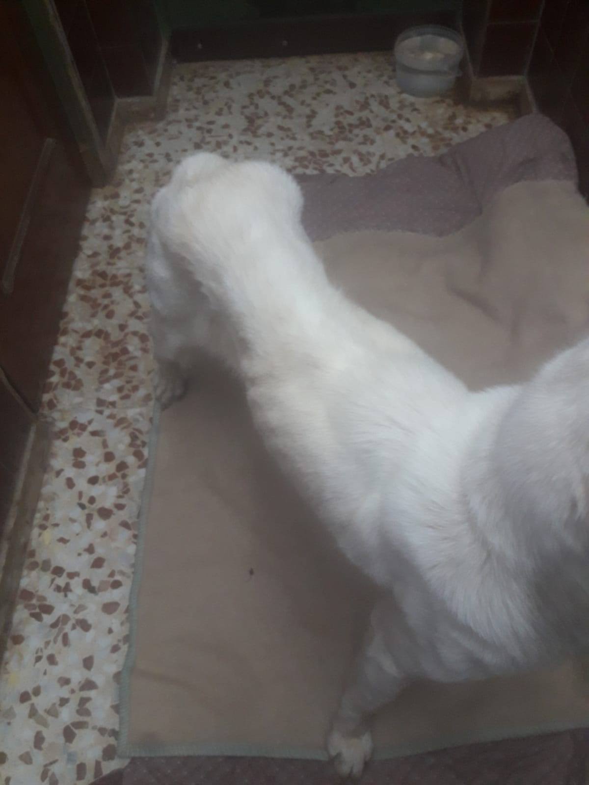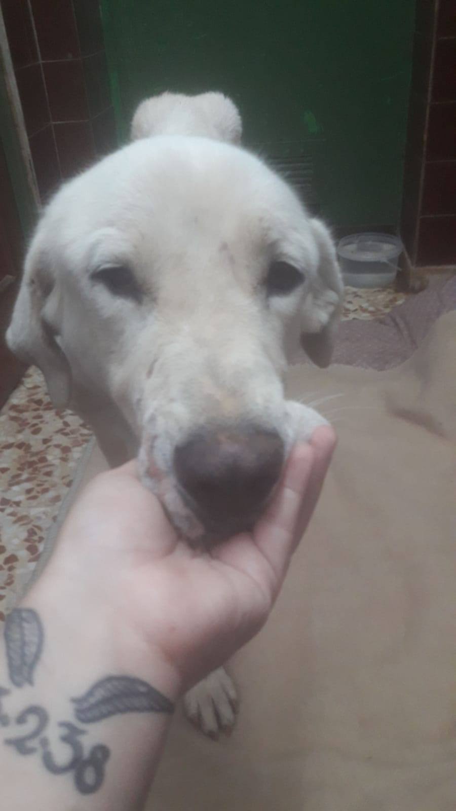 Jade es una preciosa mastina que ha sido recogida en la calle estaba sola y con una cuerda en el cuello y llena de parásitos, esta muy delgada ha empezado con una dieta blanda y de poca cantidad poco a poco irá mejorando. Es muy buena y cariñosa.