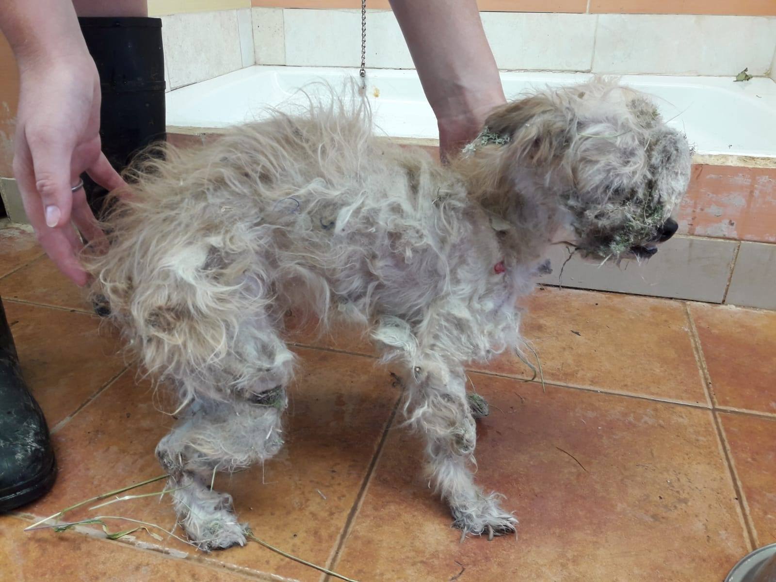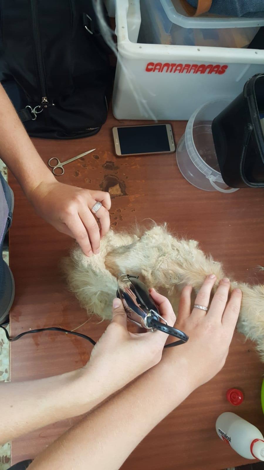 Las imágenes hablan solas, a Gabriela hemos tenido que cortarle el pelo porque era un matojo de pinchos,enredos y suciedad. Está muy delgada.
