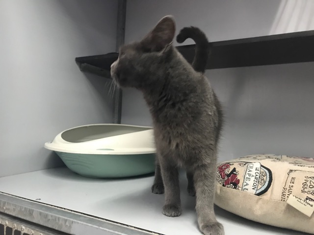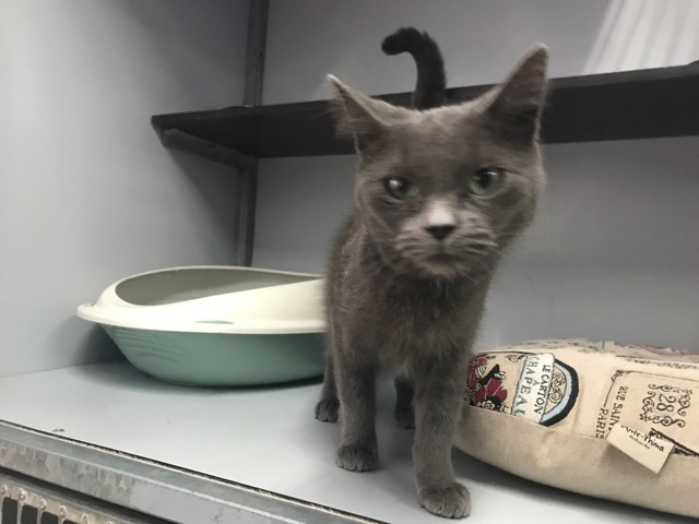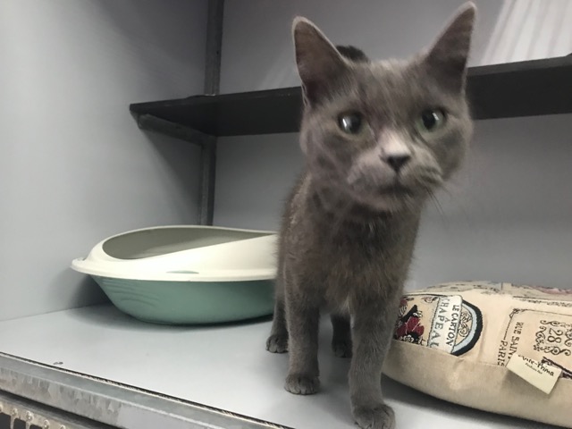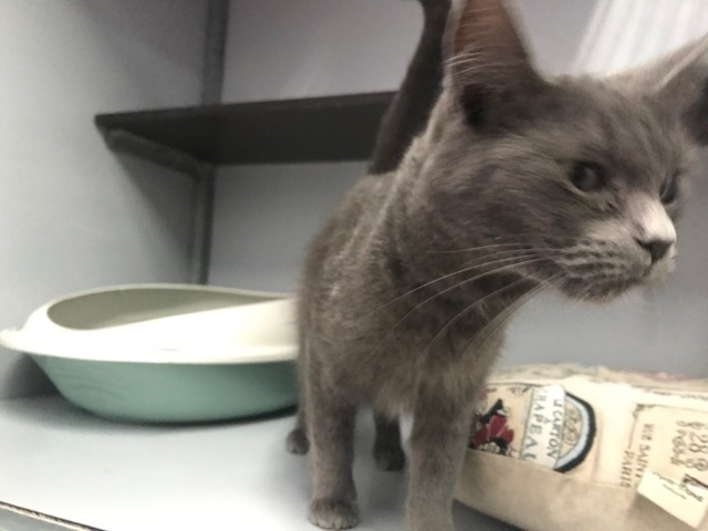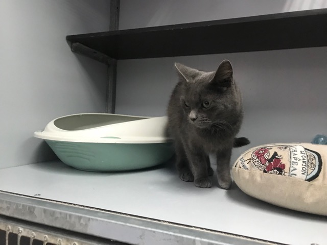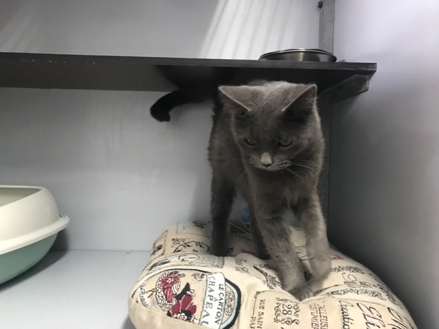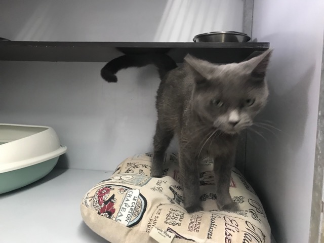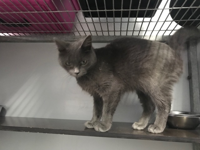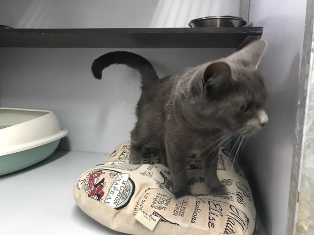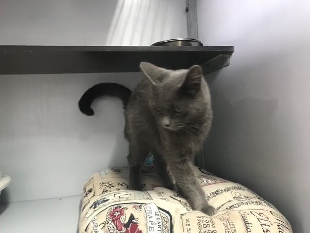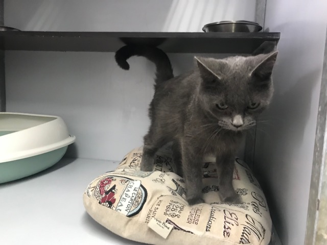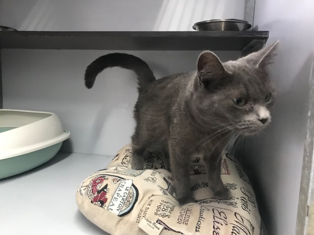 Chacra es una preciosa gata gris , fué abandonada en los patos junto a su hermana Katnnis, sería ideal una adopción conjunta.