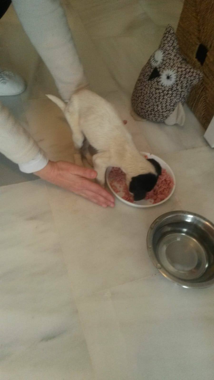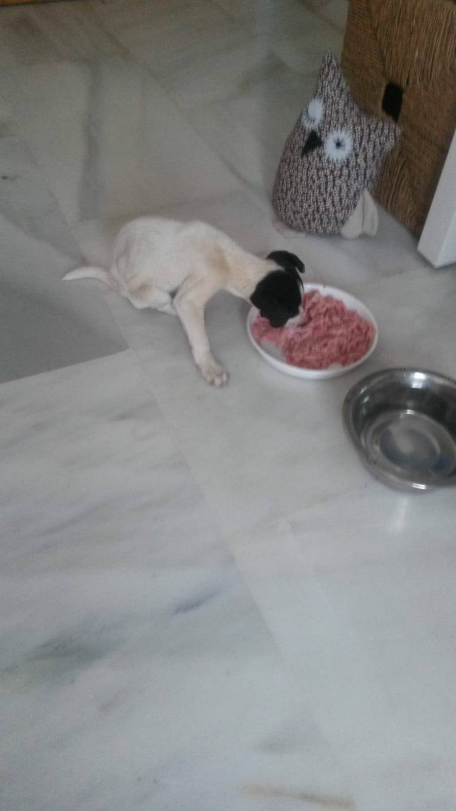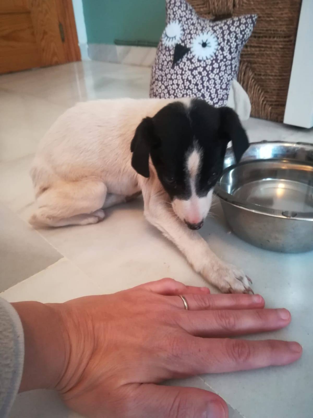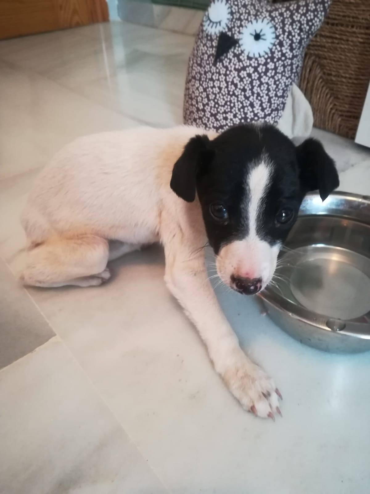 Mara tiene apenas 1 mes y medio,y ha sido rescatada por una voluntaria en la cuneta de la carretera, hambrienta,asustada y muerta de miedo que al ir a cogerla sólo chillaba.