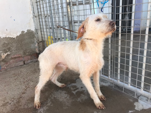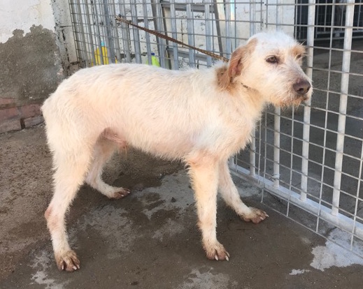Llegó muy delgado pero se ha ido recuperando muy bien. Es muy cariñoso, simpático y sociable con otros perros.