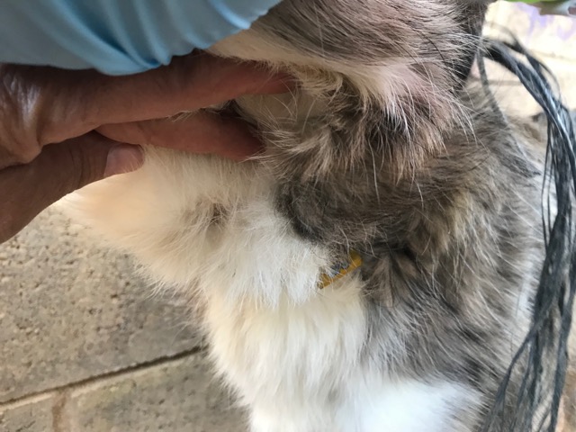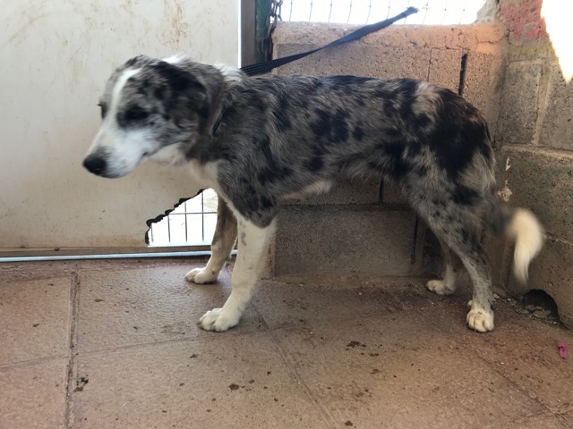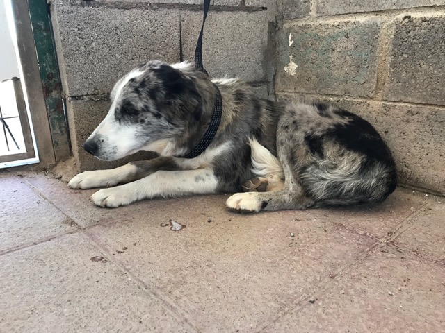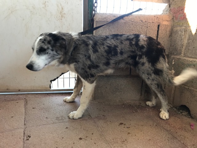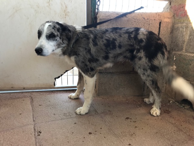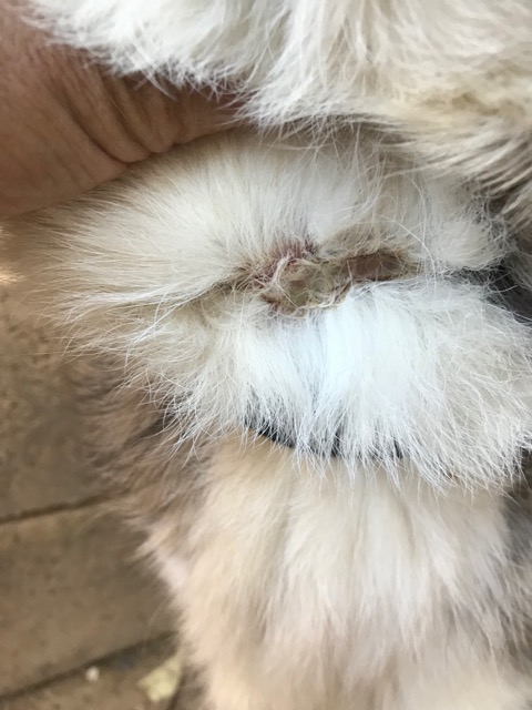 Ha llegado con una guita de plástico alrededor del cuello, tan apretada que tiene una herida en el cuello, jamás se la debieron aflojar a pesar de ir creciendo el pobre Blas, nos gustaría encontrar a su dueño, a la persona que le ha hecho esta barbaridad para denunciarlo por maltrato, que pena que no tenga chip y no podamos saber quién es.