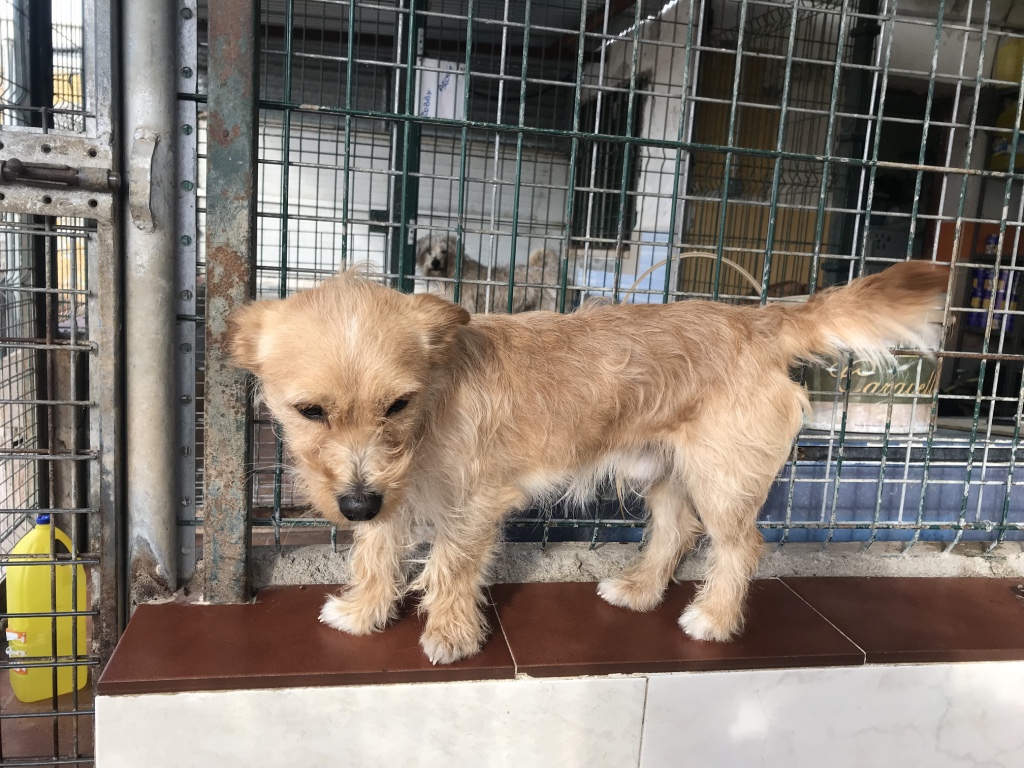 Perrito encontrado en el Villar, estaba lleno de garrapatas.