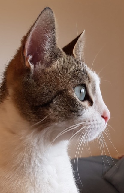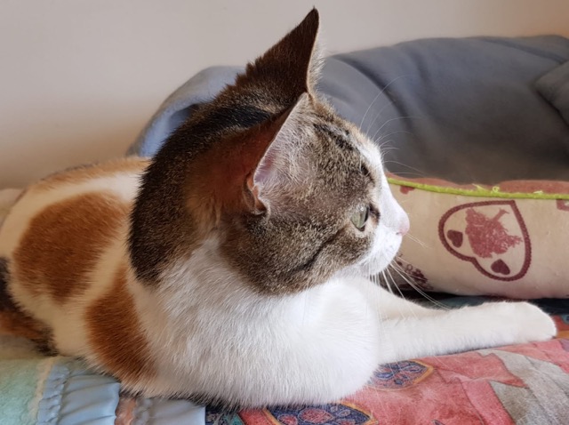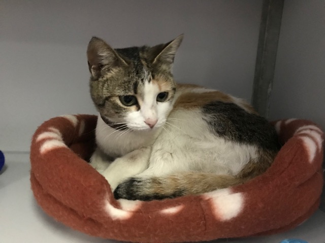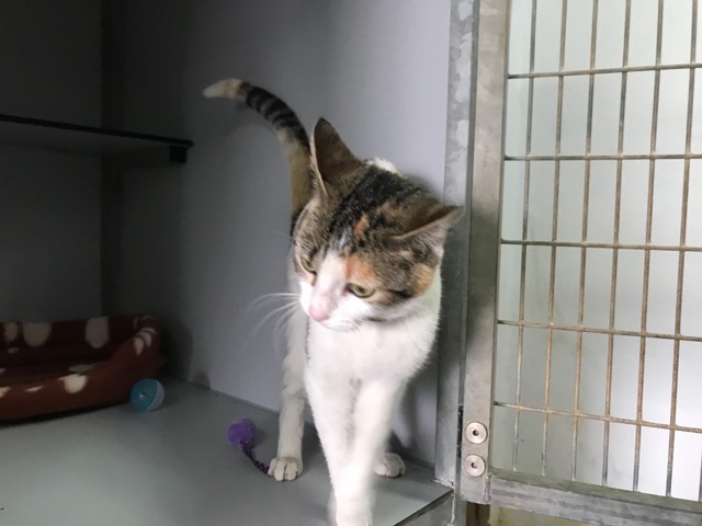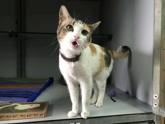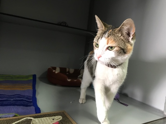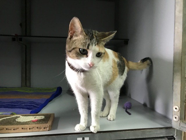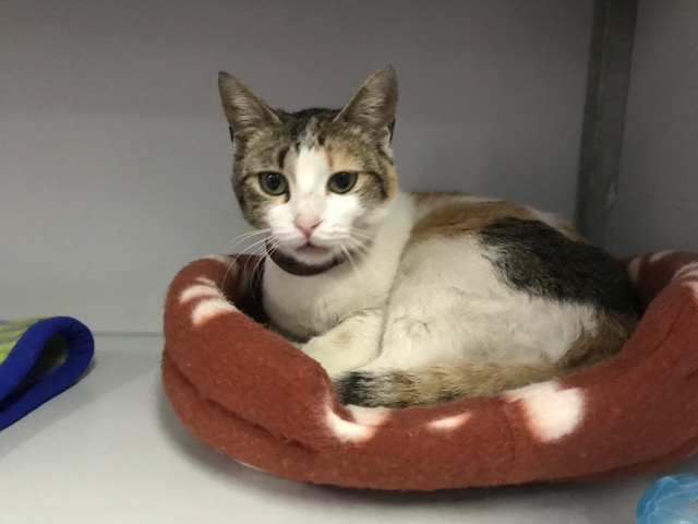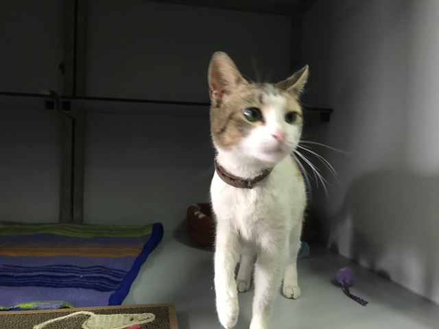 Tiene collar antiparasito, parece pérdida…aún nadie le ha reclamado.