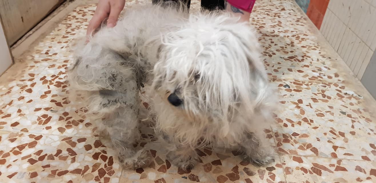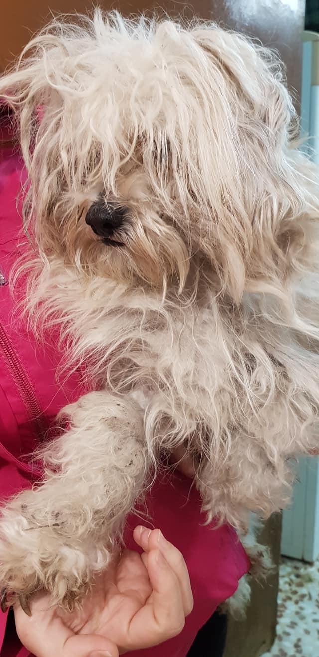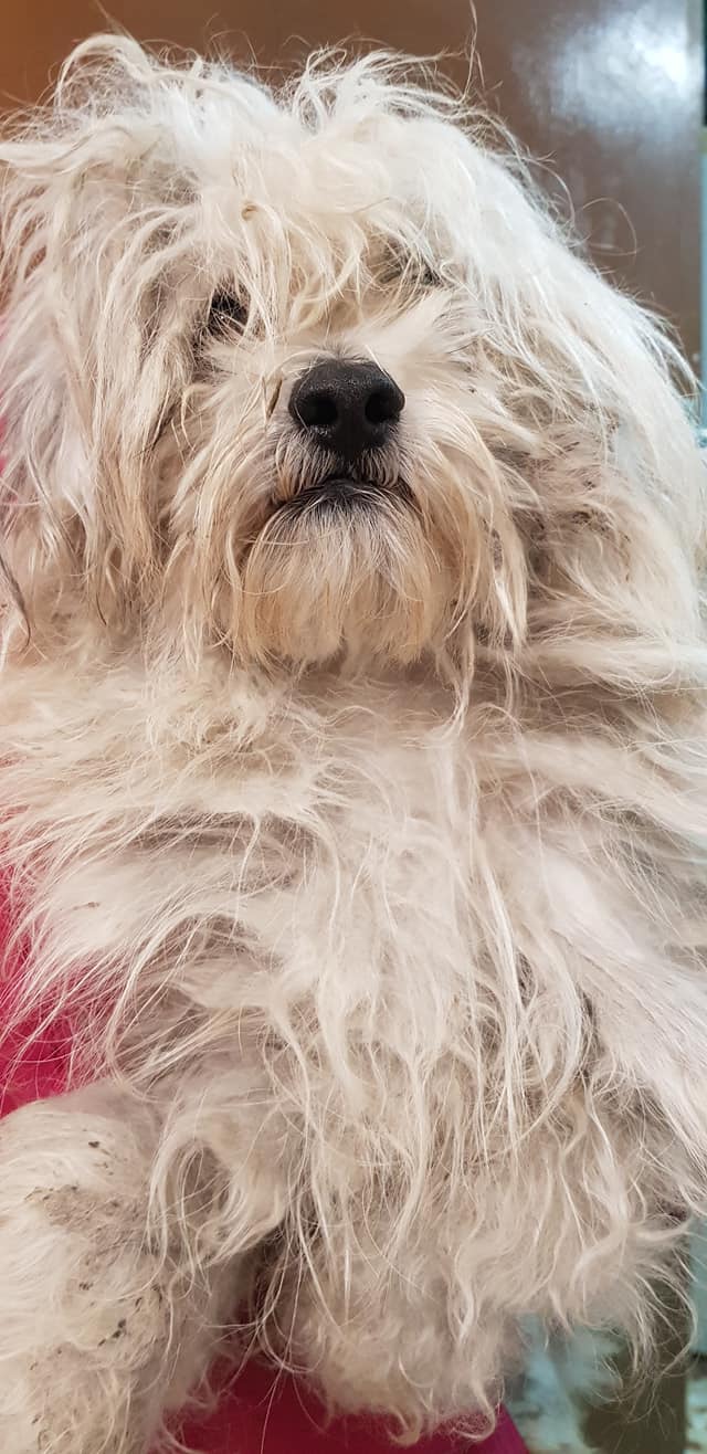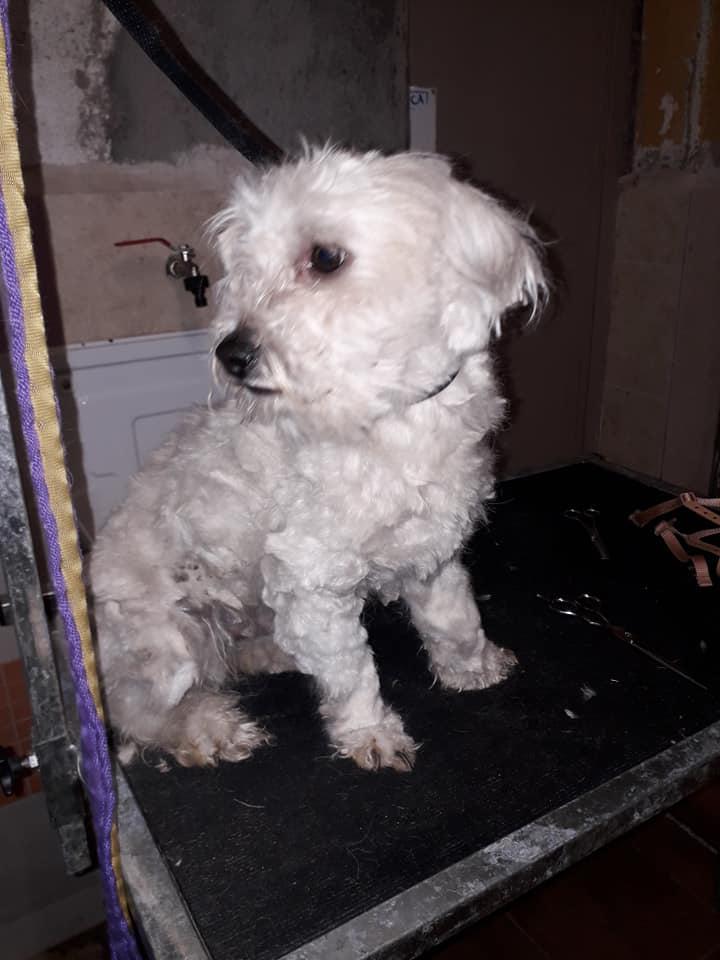 Le hemos cortado el pelo y ha resultado ser un perro precioso y joven.