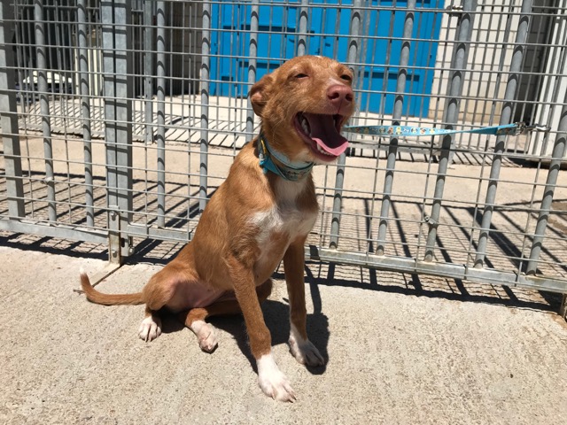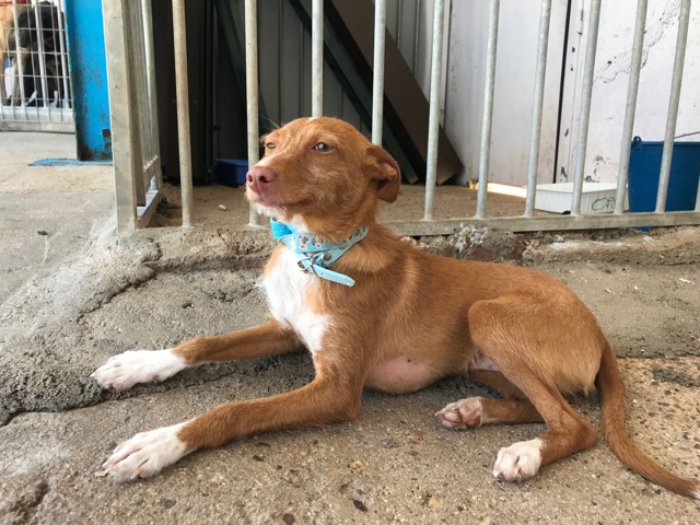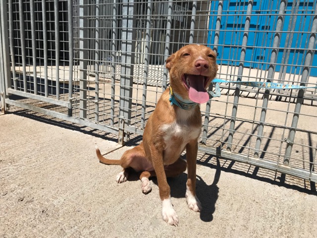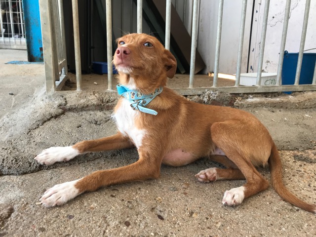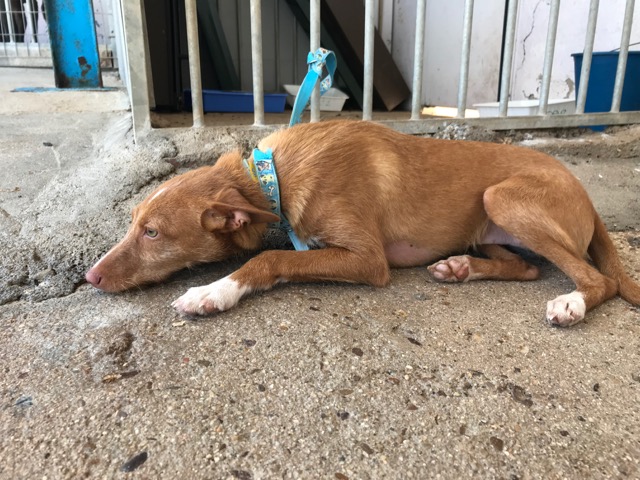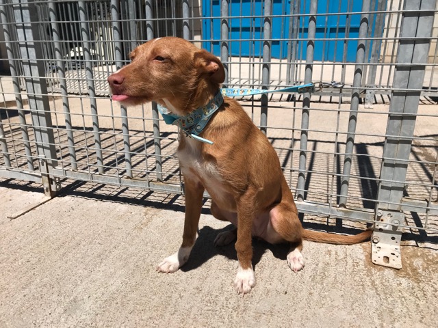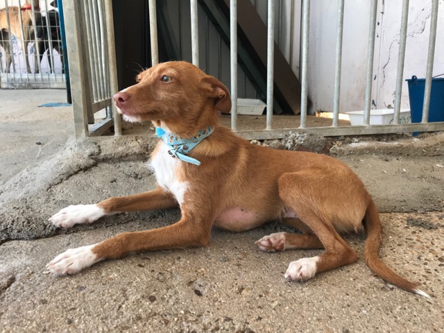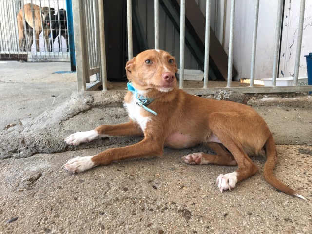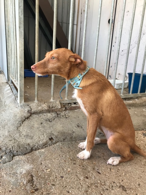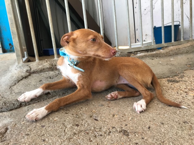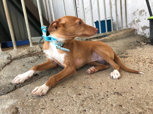 Menta es una podenquita de unos 6 meses, ya sabe lo que es el abandono.