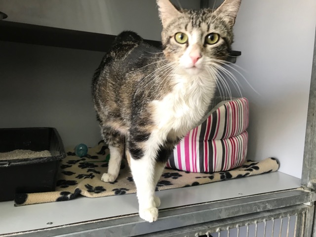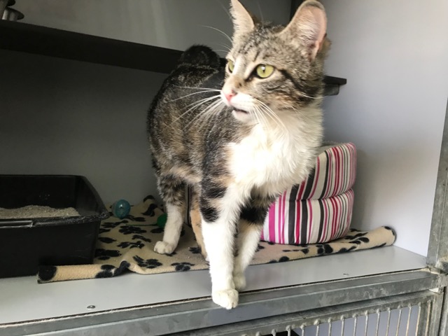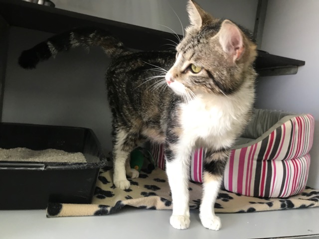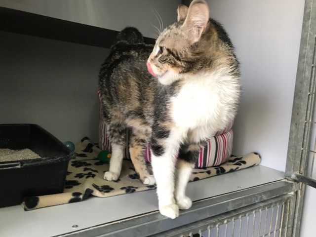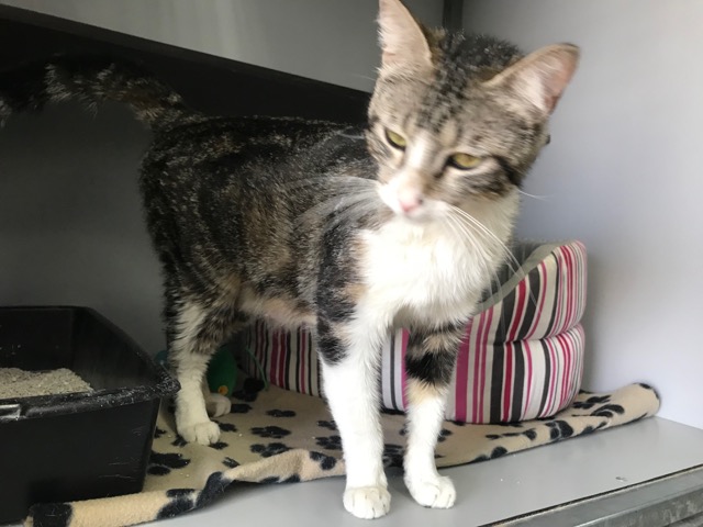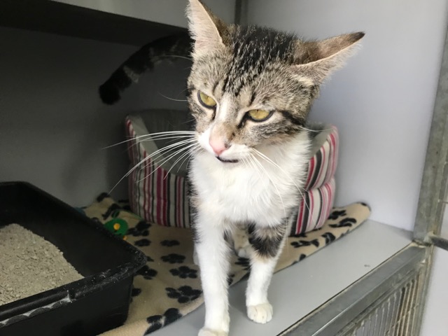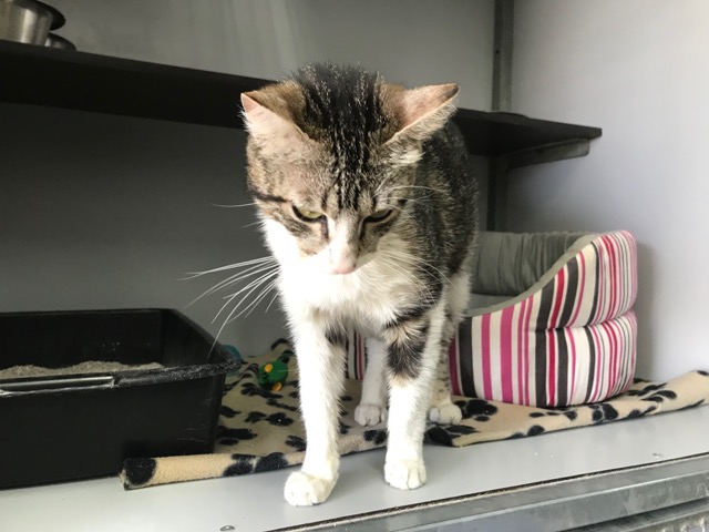 Esta gatita estaba en la calle abandonada, nos contaron cuando nos llamaron que había estado horas en el mismo sitio buscando a sus cachorros, los debieron coger porque una madre jamás los pierde.