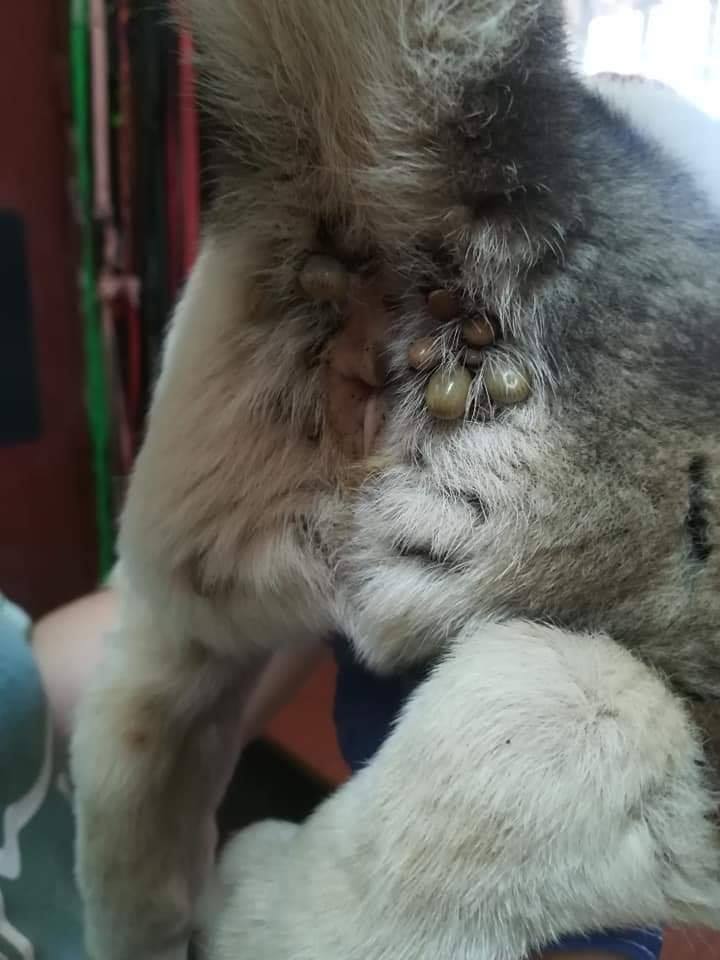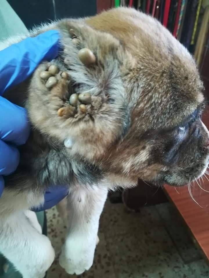 Esta pequeña es Nata tiene apenas 2 meses y ha sido dejada en la casa de un ciudadano atada con una cuerda, como se ve en las imágenes está llena de garrapatas, delgada y hambrienta…..con apenas 2 meses ya ha sufrido el abandono y la soledad de estar en la calle.