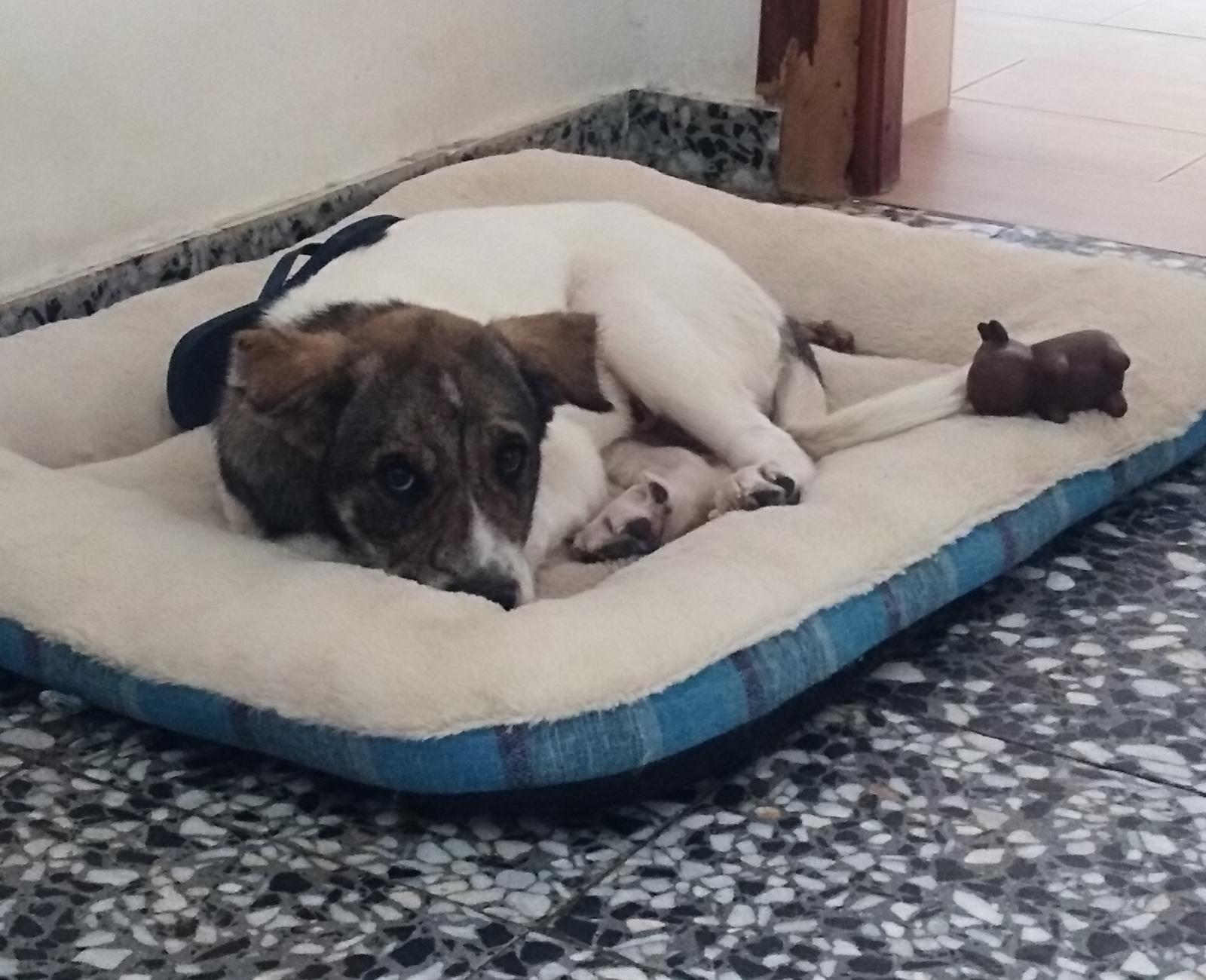 La pequeña Nata cada vez está mejor en su casa de acogida, sin parásitos y bañada y con la atención que merece. También nos hemos dado cuenta que unas de las orejas las tiene cortadas…😡
