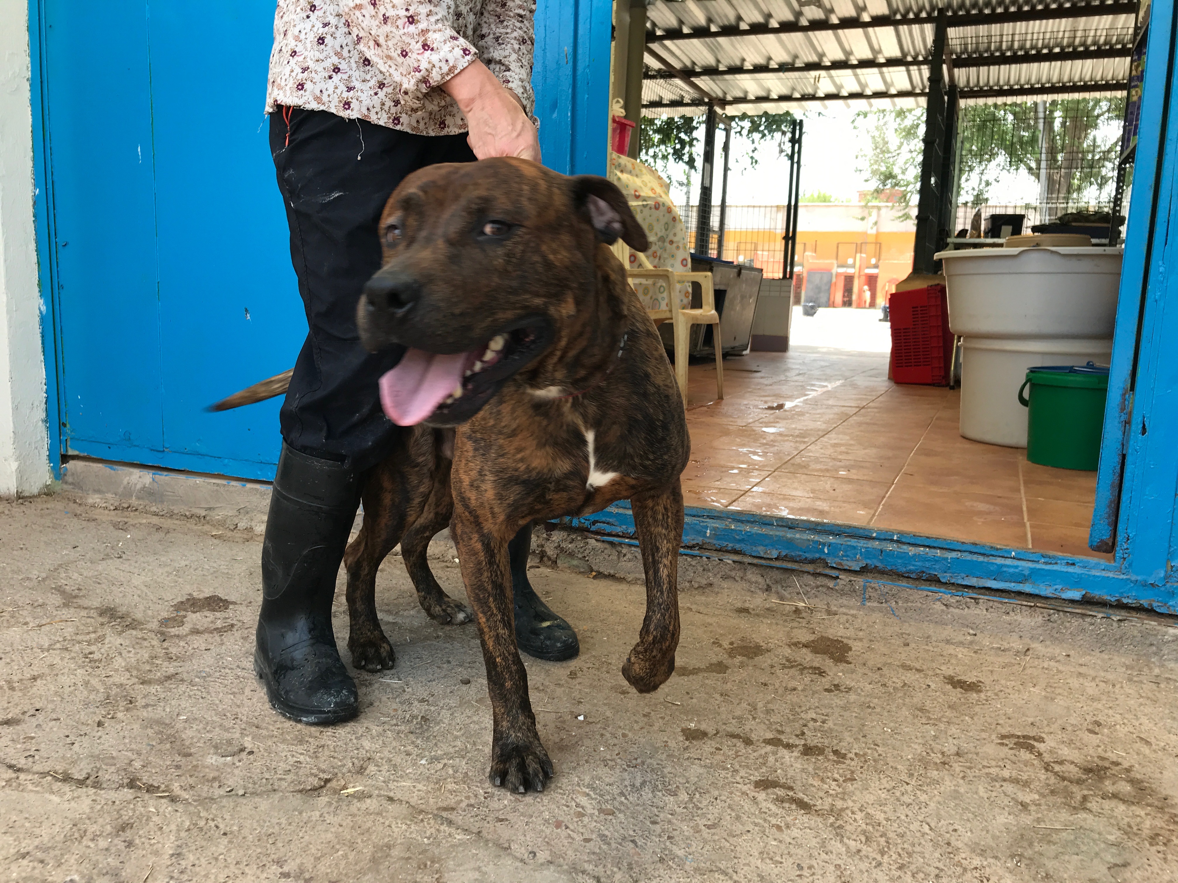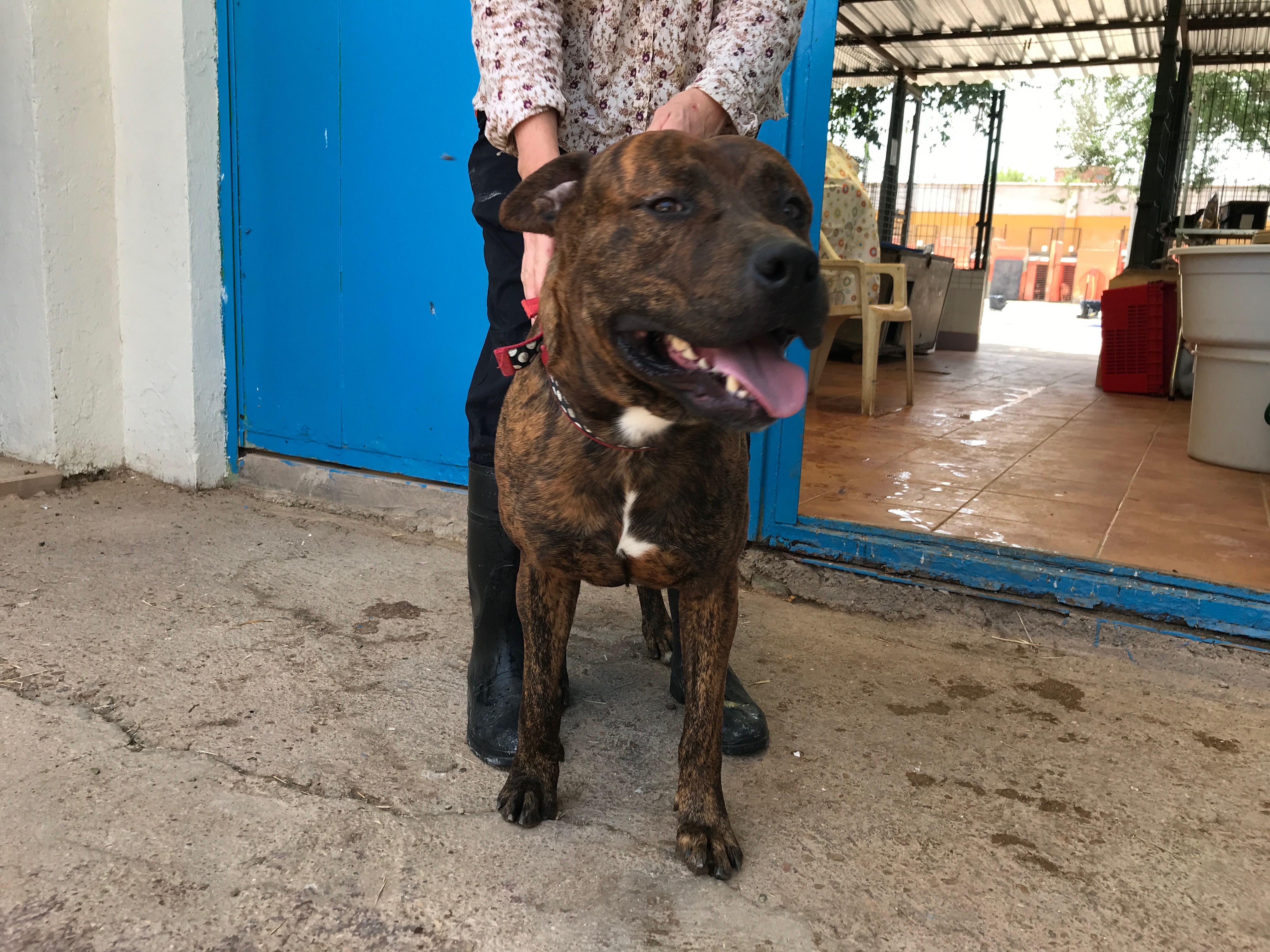Esta enel albergue , no esta adoptado, es buenísimo.