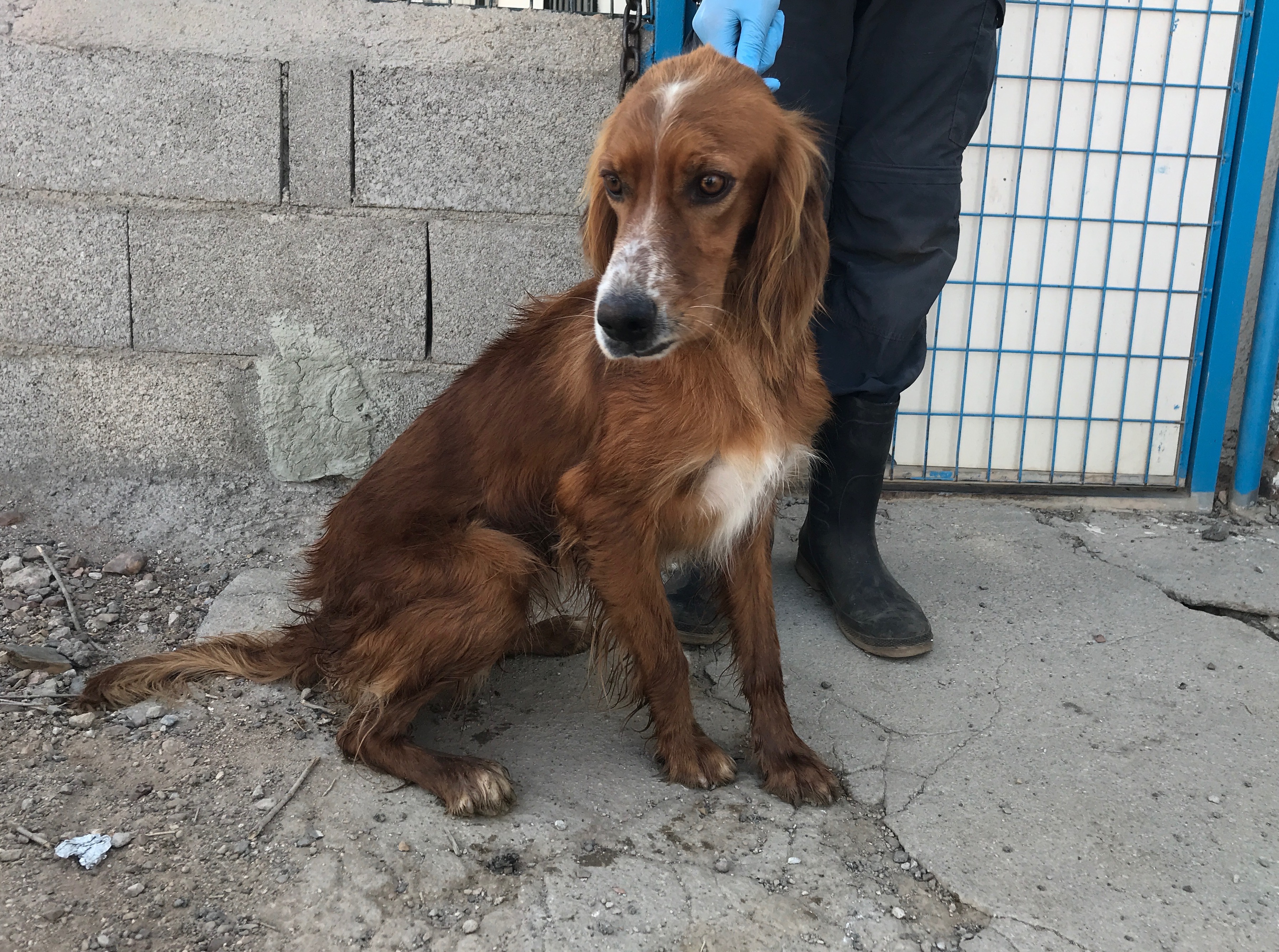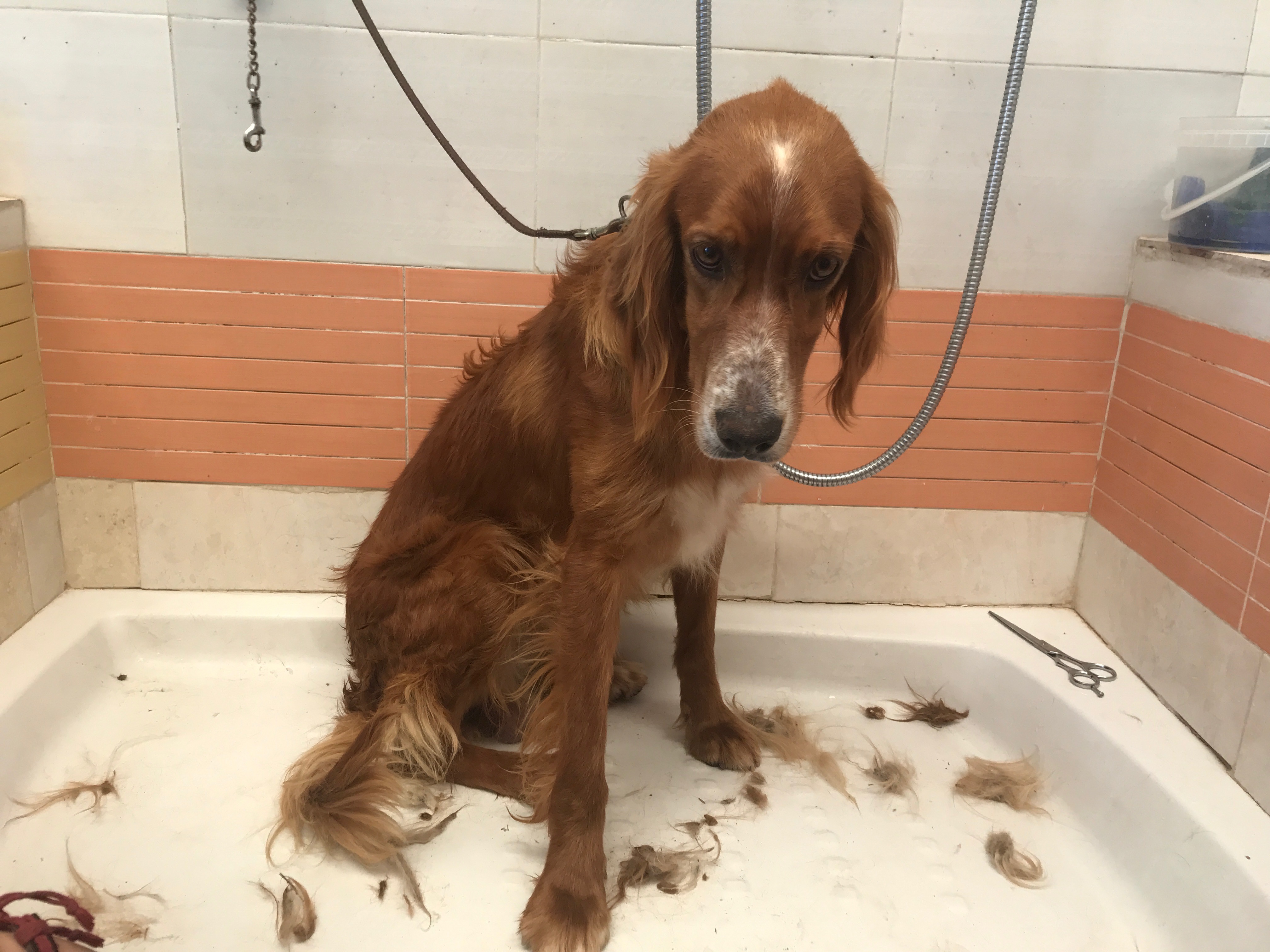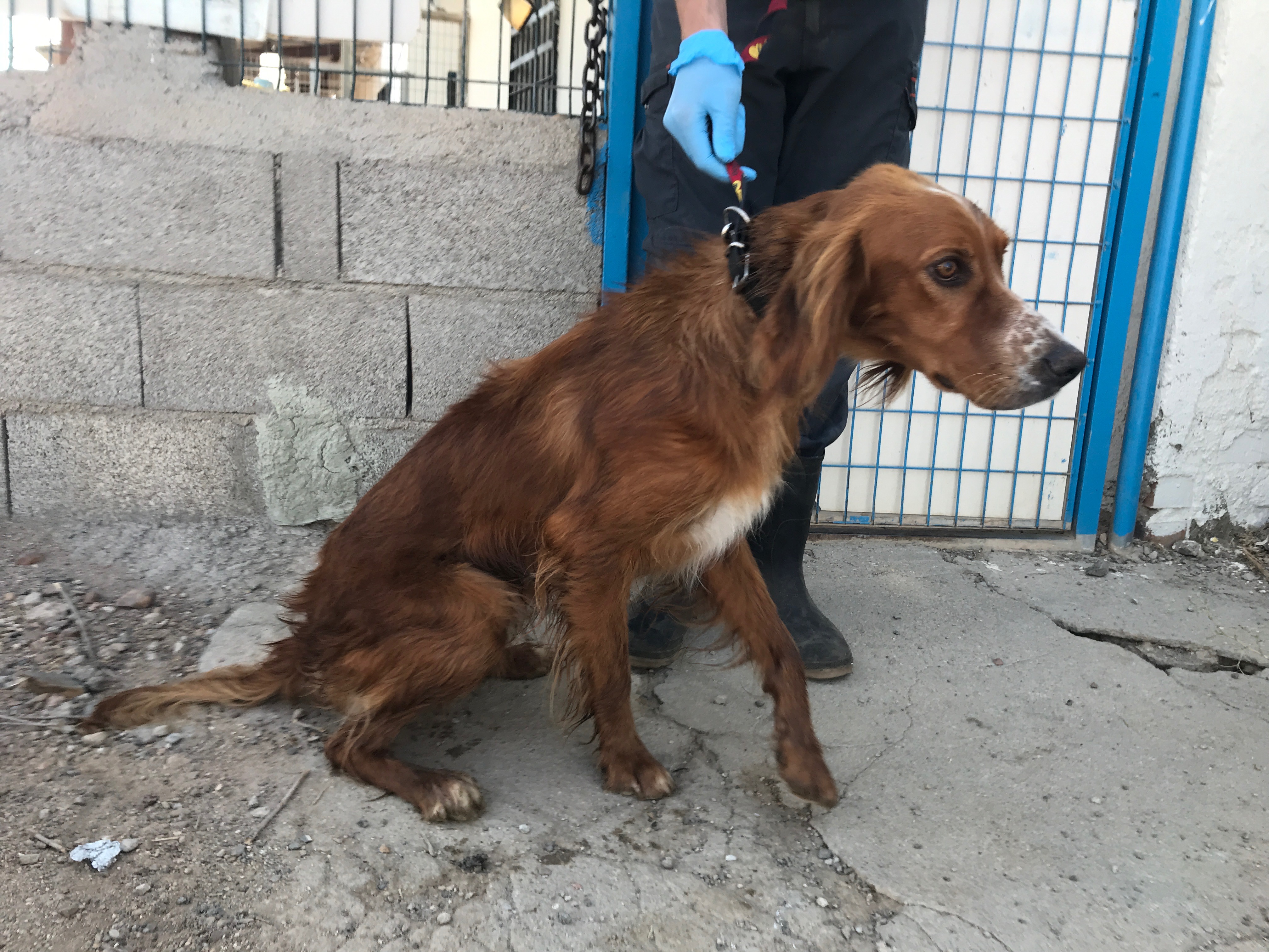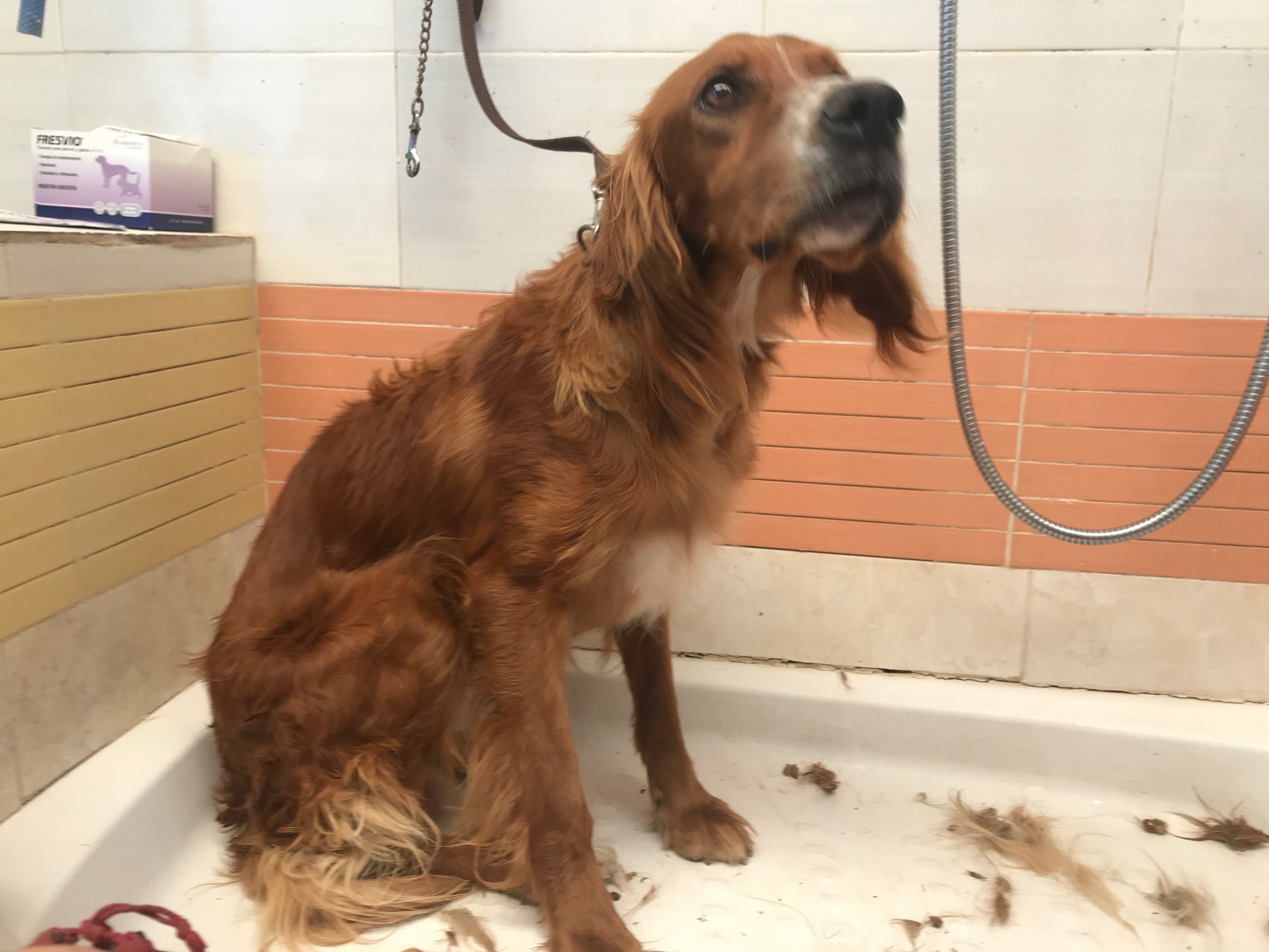 Lo han encontrado cerca del hospital, está muy delgado y con espigas clavadas, lo hemos lavado, quitado espigas…..