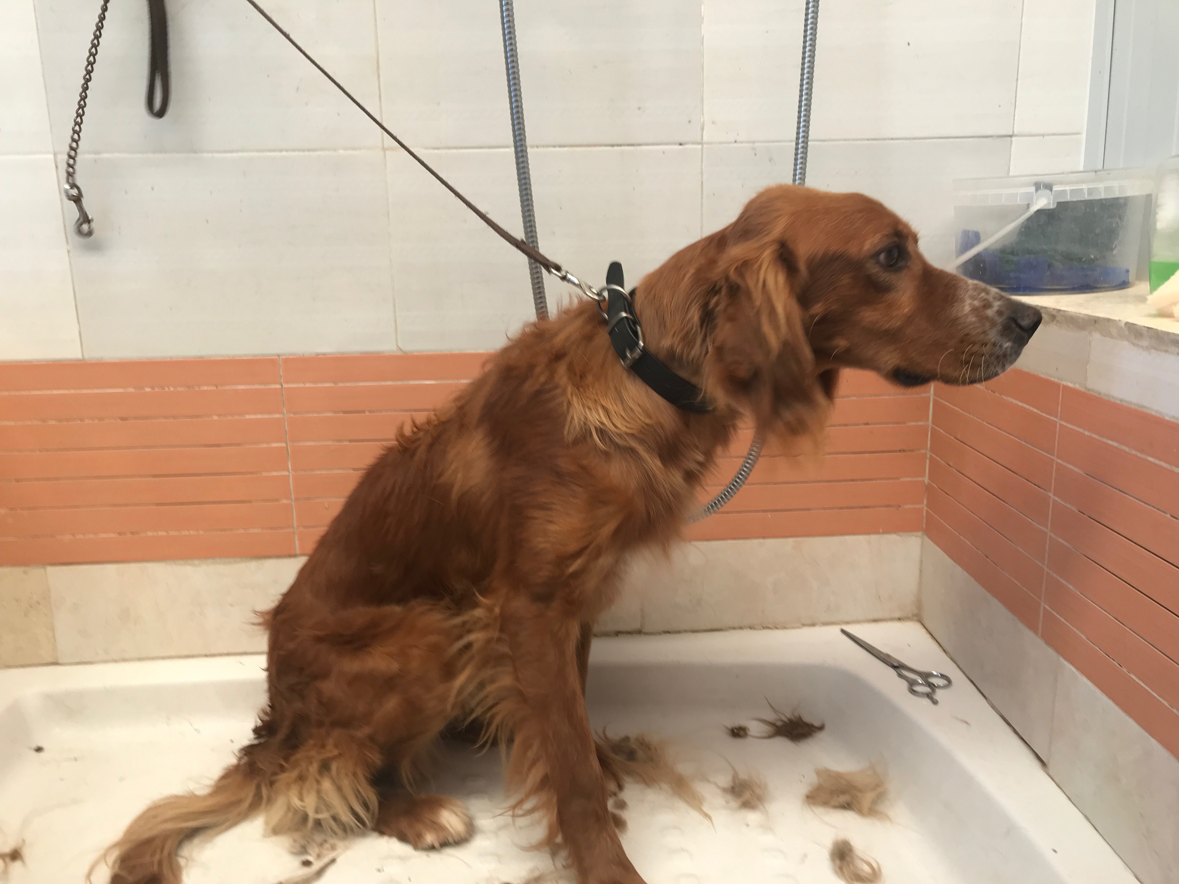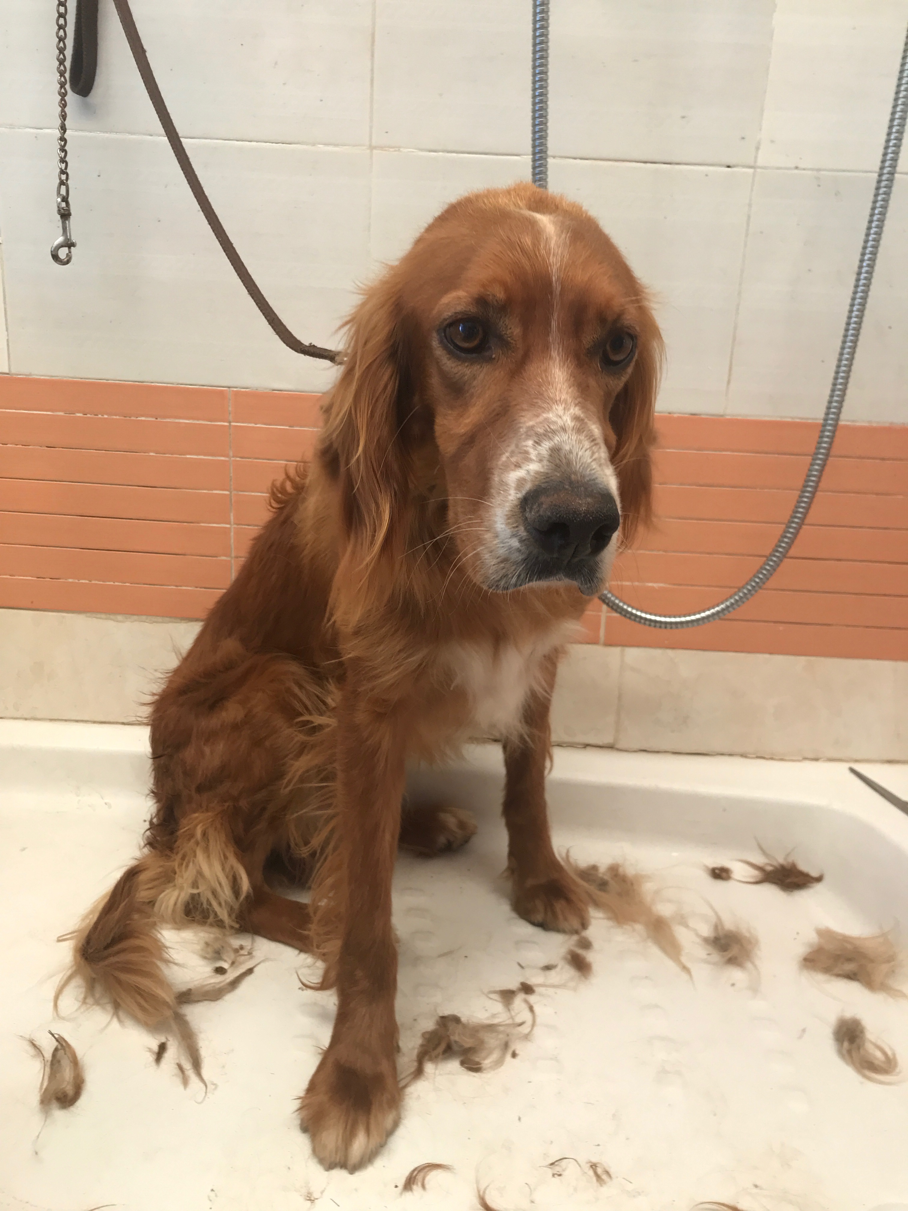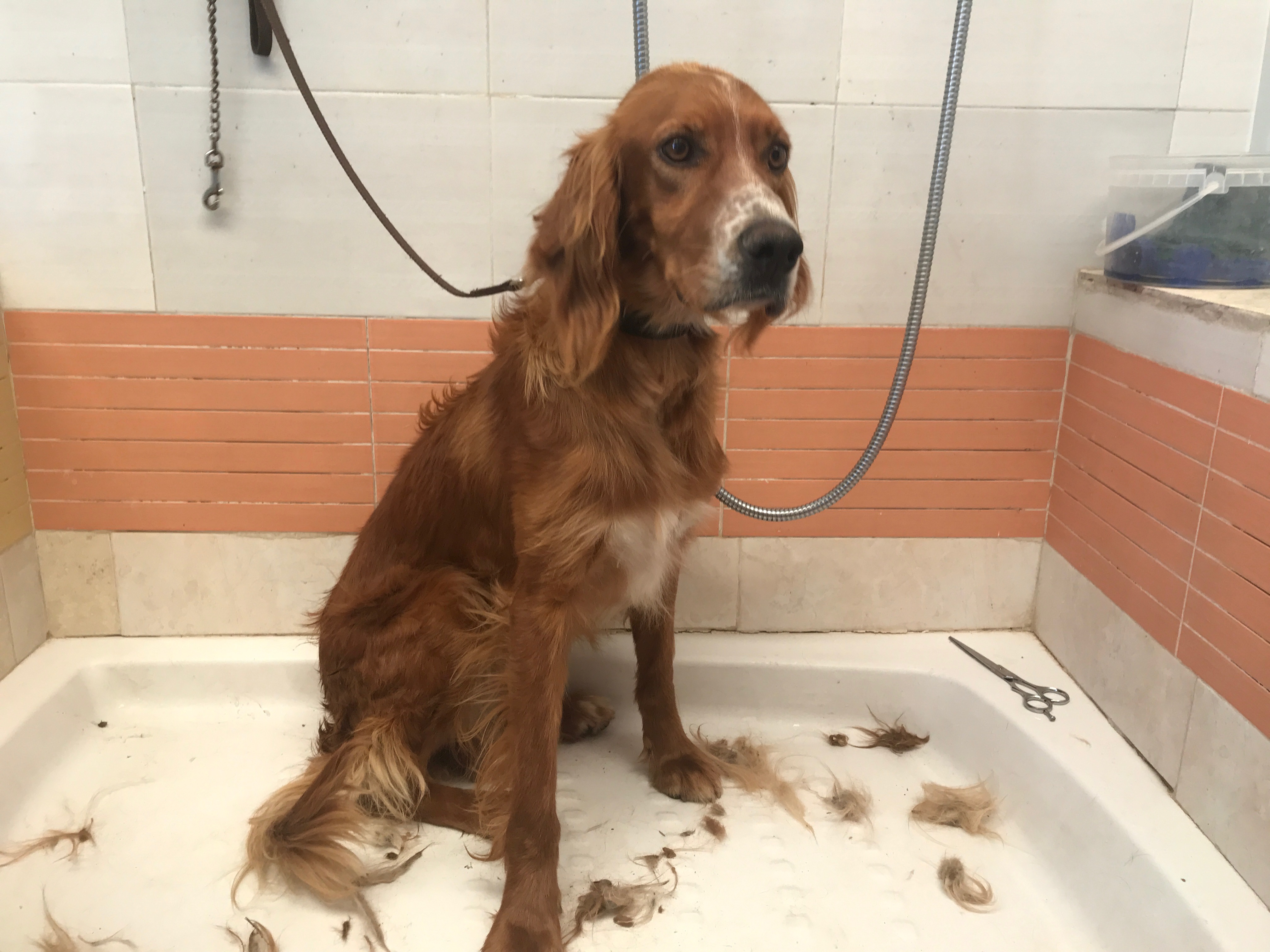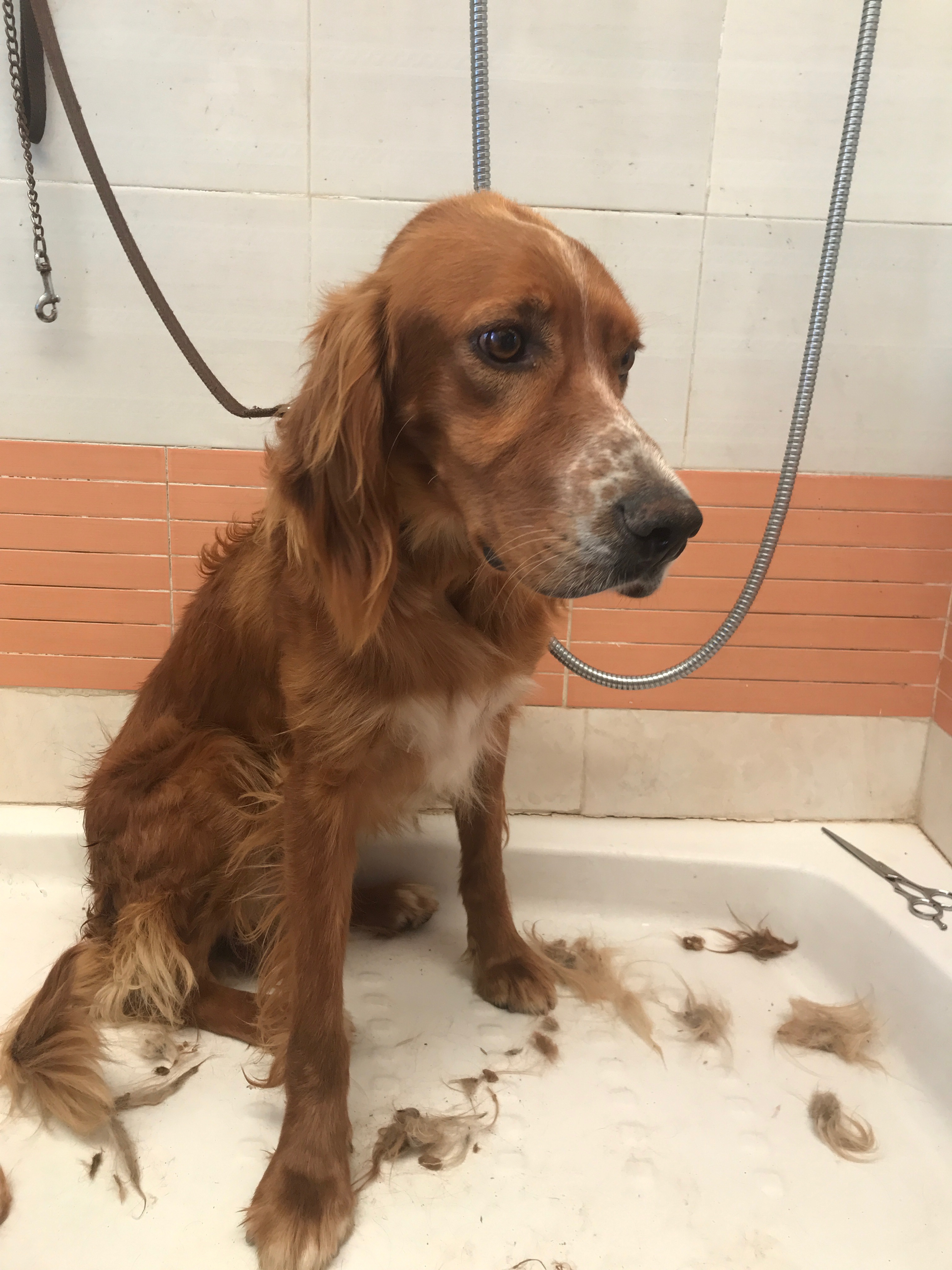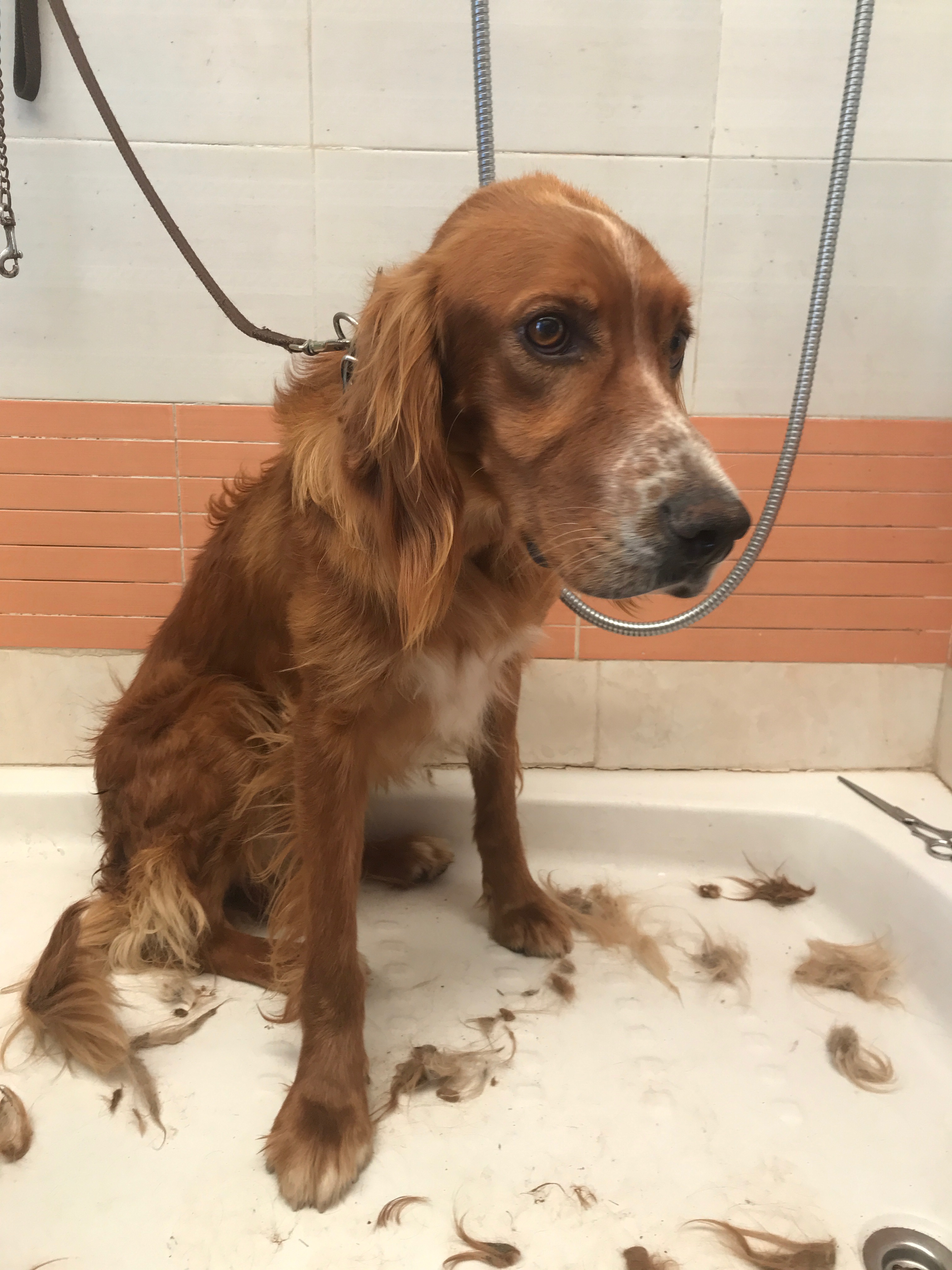 Lo han encontrado cerca del hospital, está muy delgado y con espigas clavadas, lo hemos lavado, quitado espigas…..