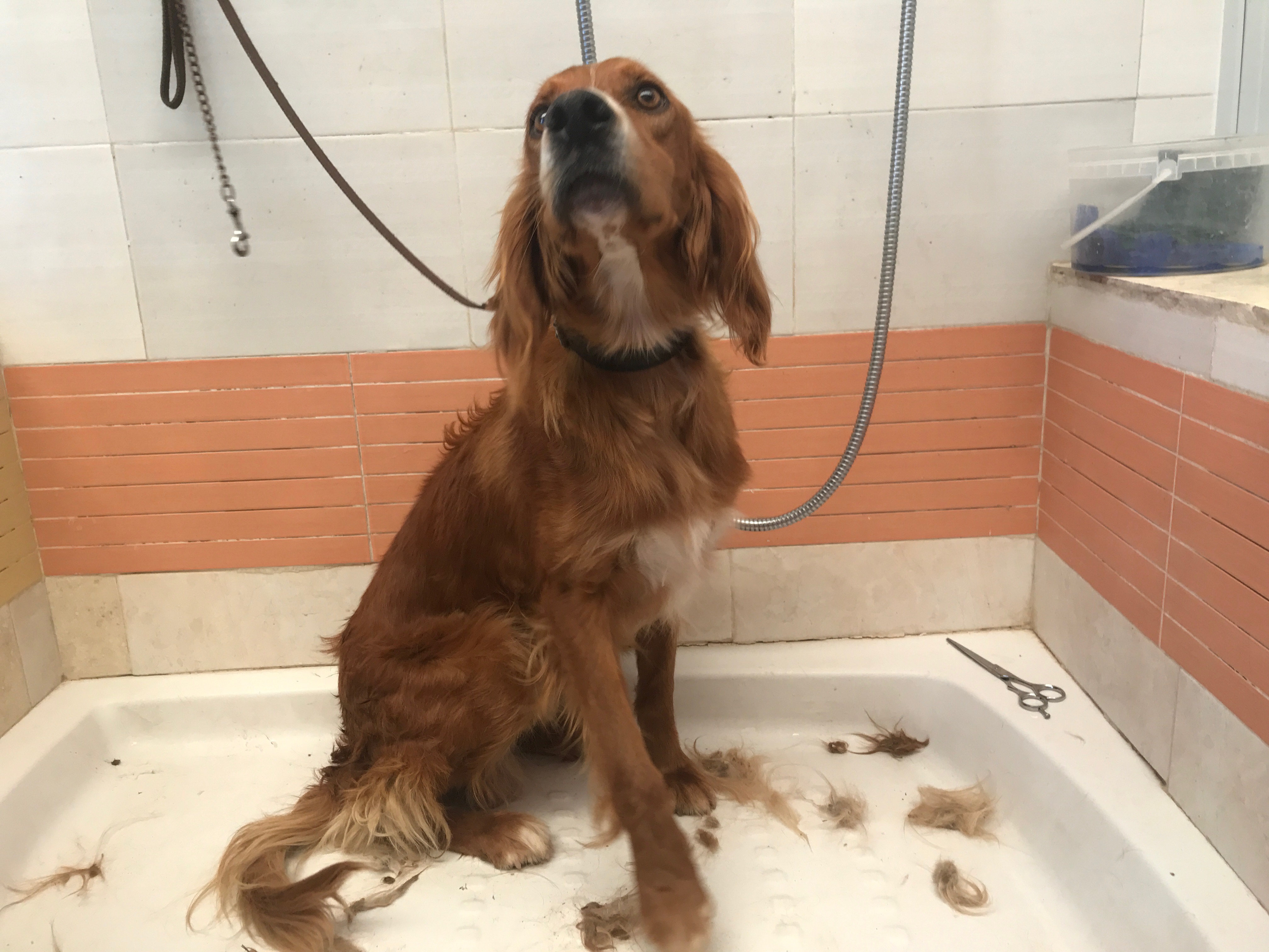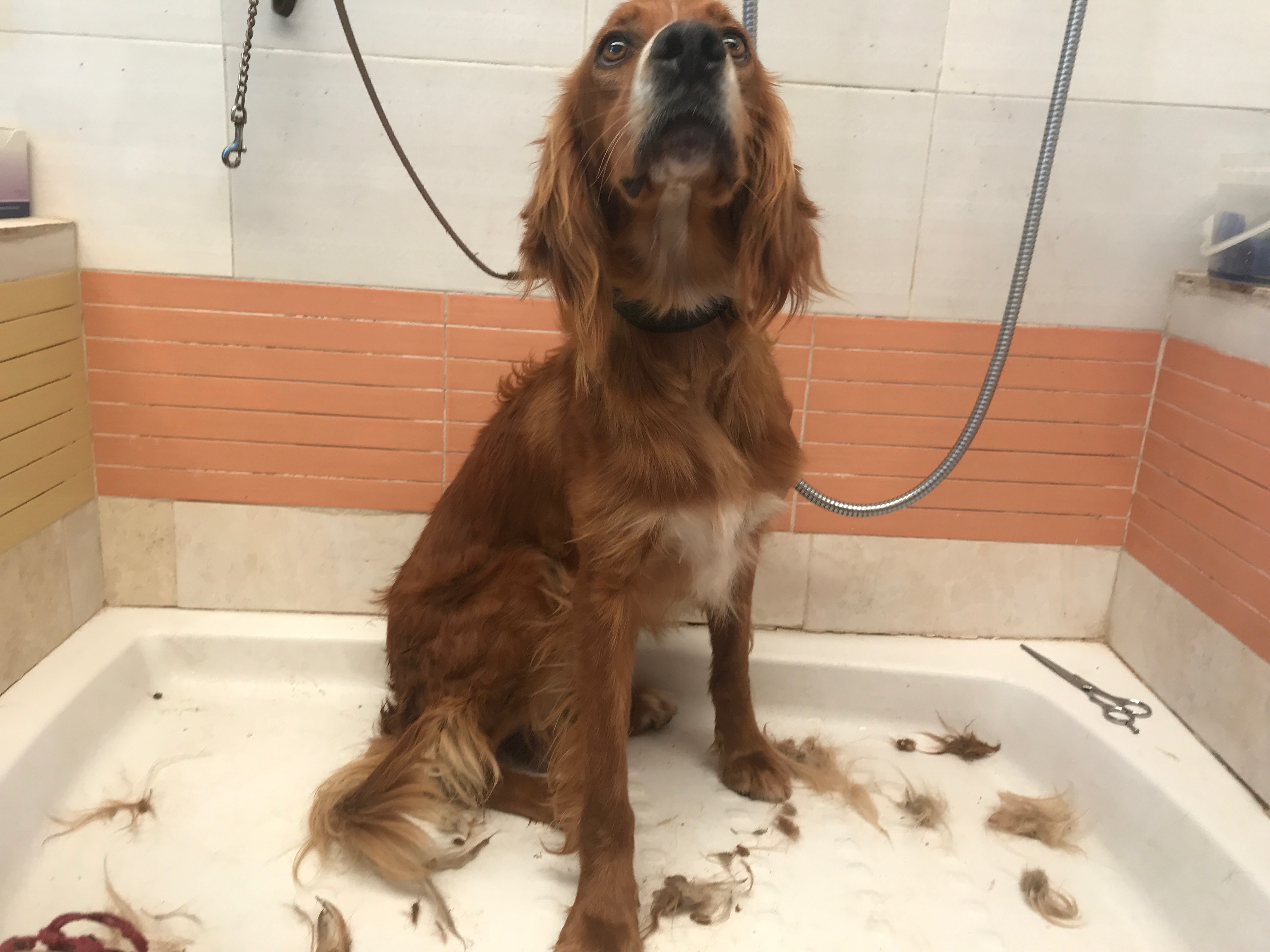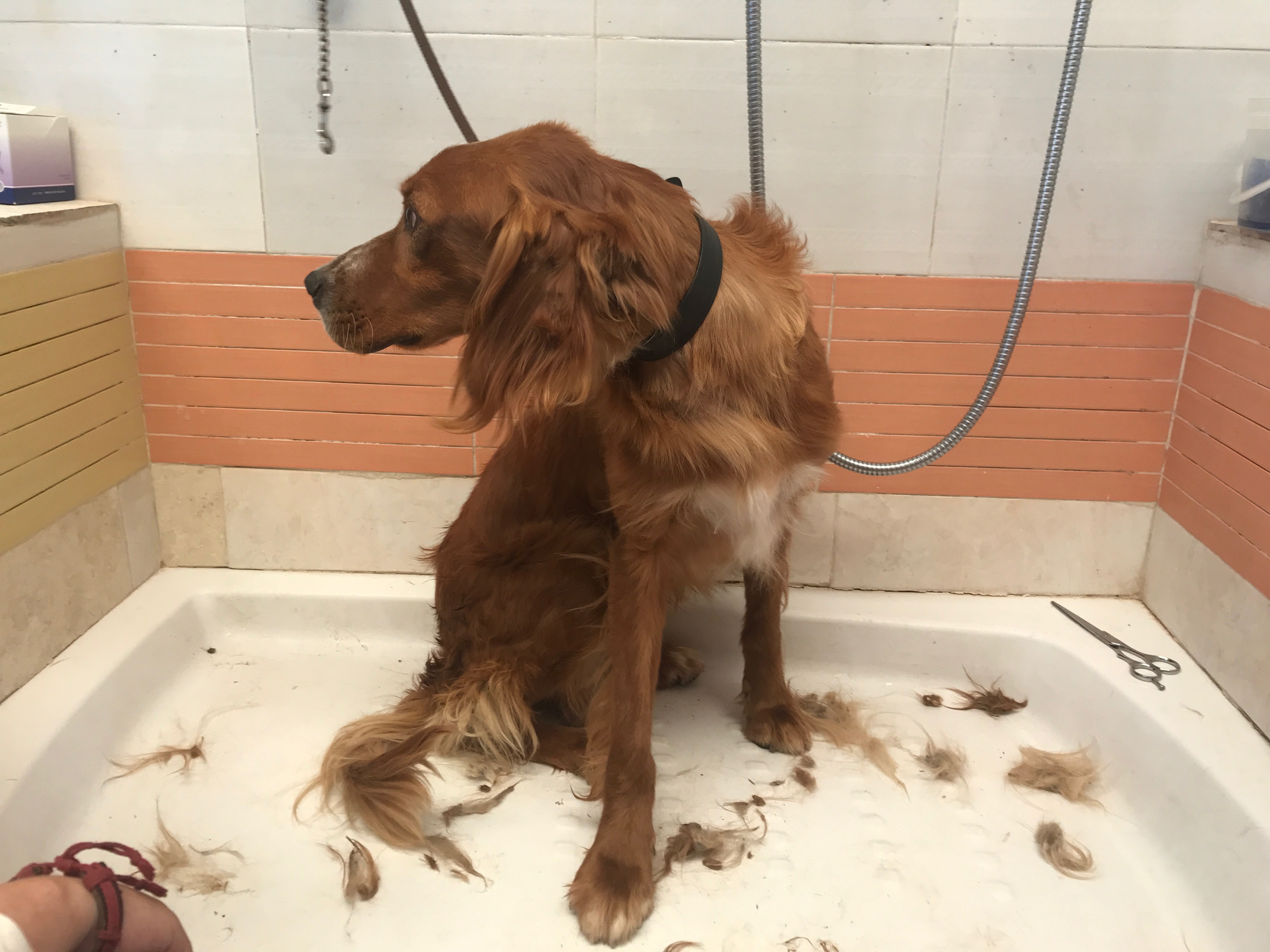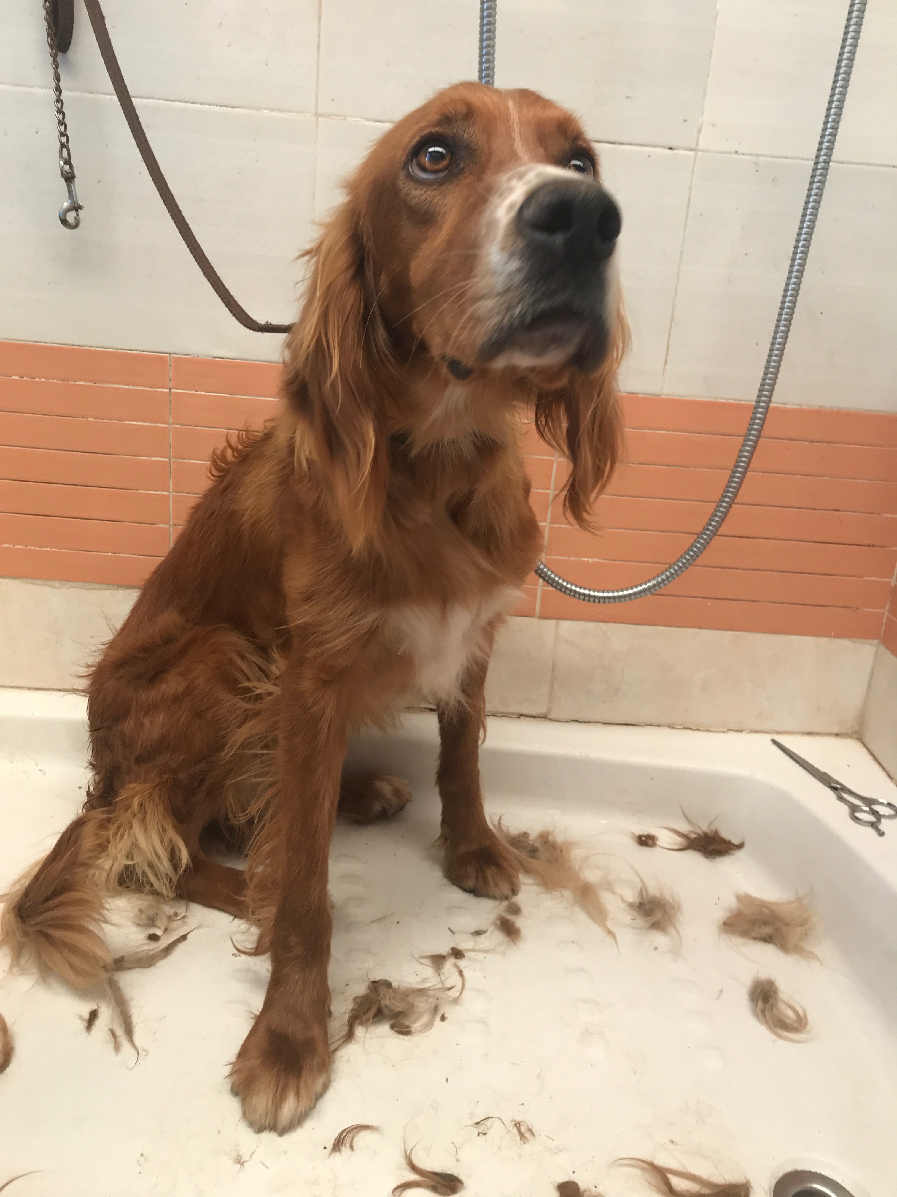 Lo han encontrado cerca del hospital, está muy delgado y con espigas clavadas, lo hemos lavado, quitado espigas…..