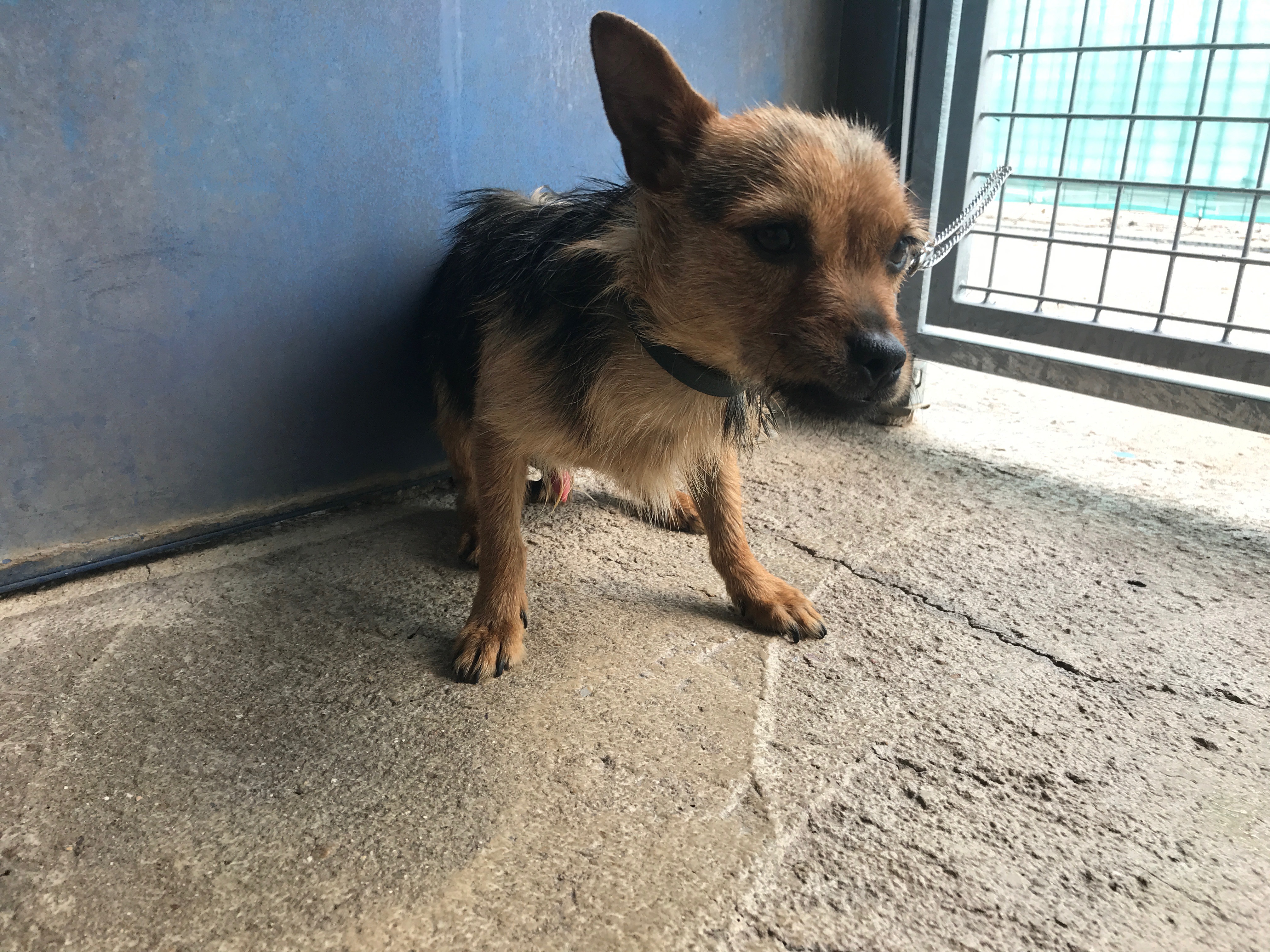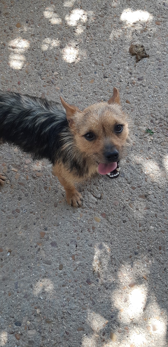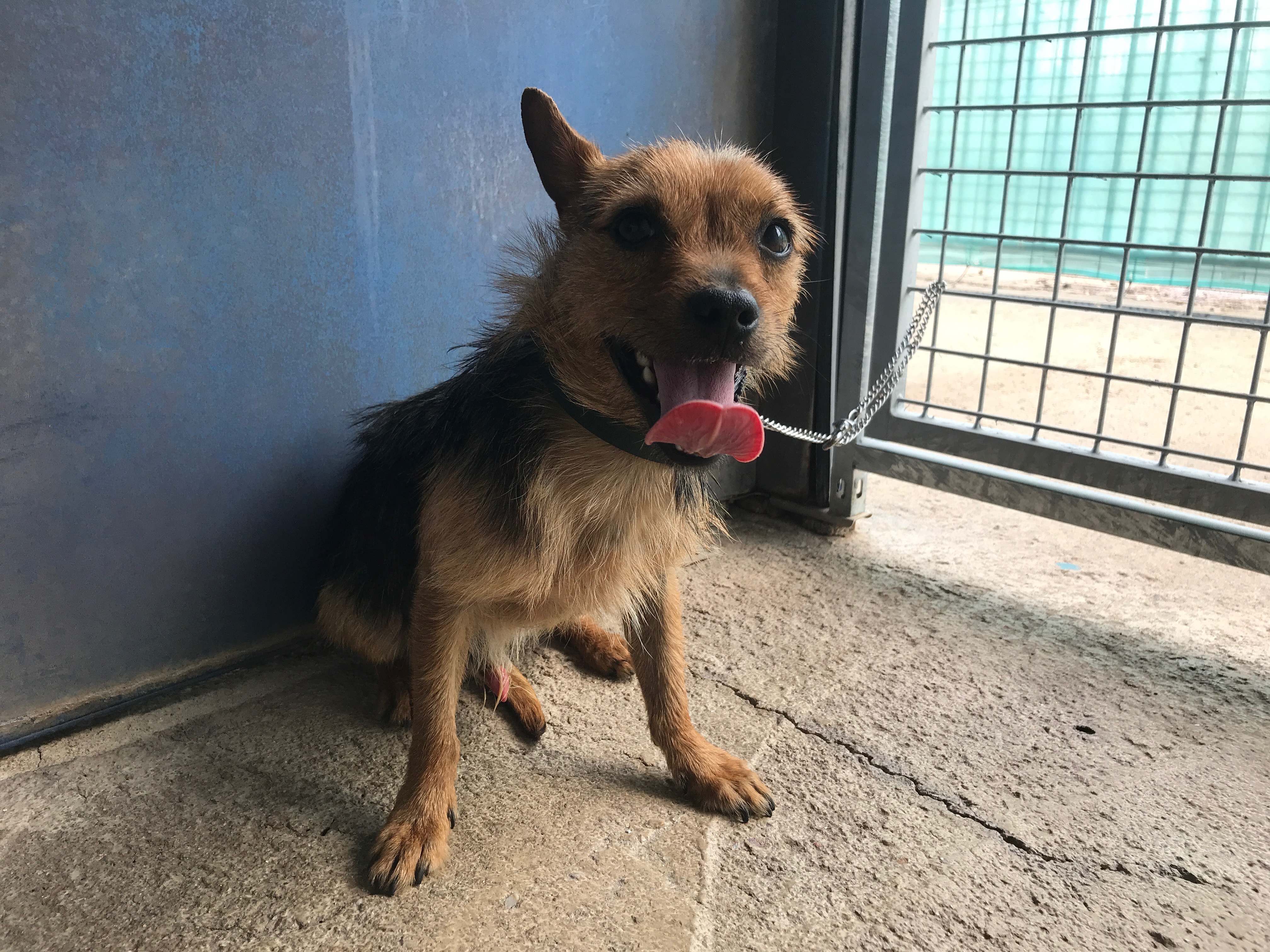 Elton es un simpático perro que fue rescatado de la calle y llevado al albergue por una voluntaria.
