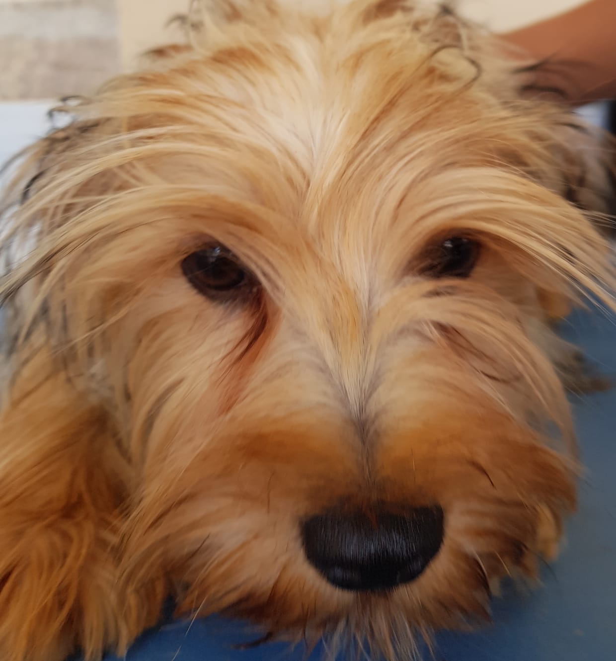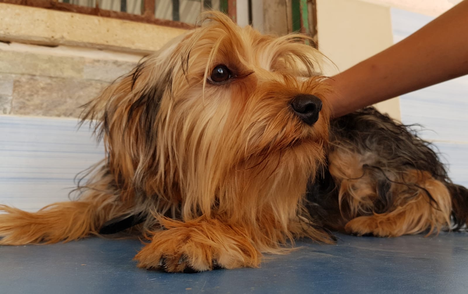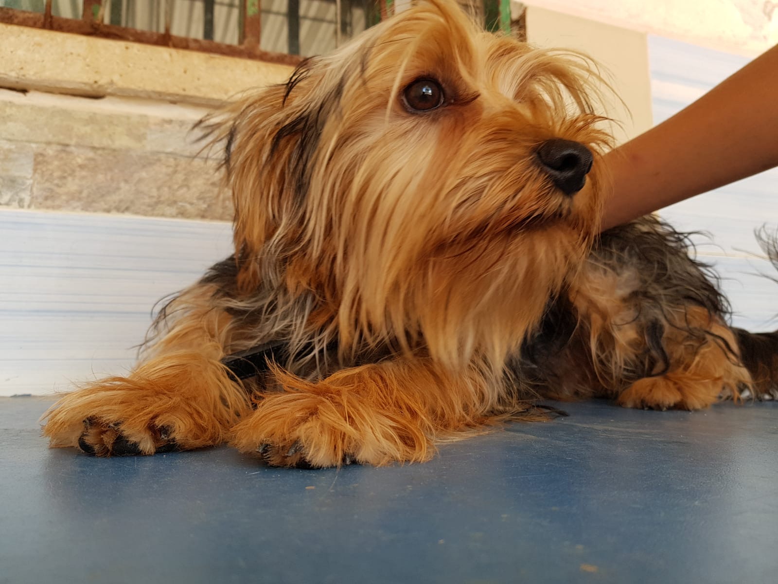Luciano también fue rescatado de la calle y llevado al albergue,llegó lleno de nudos y muy sucio.