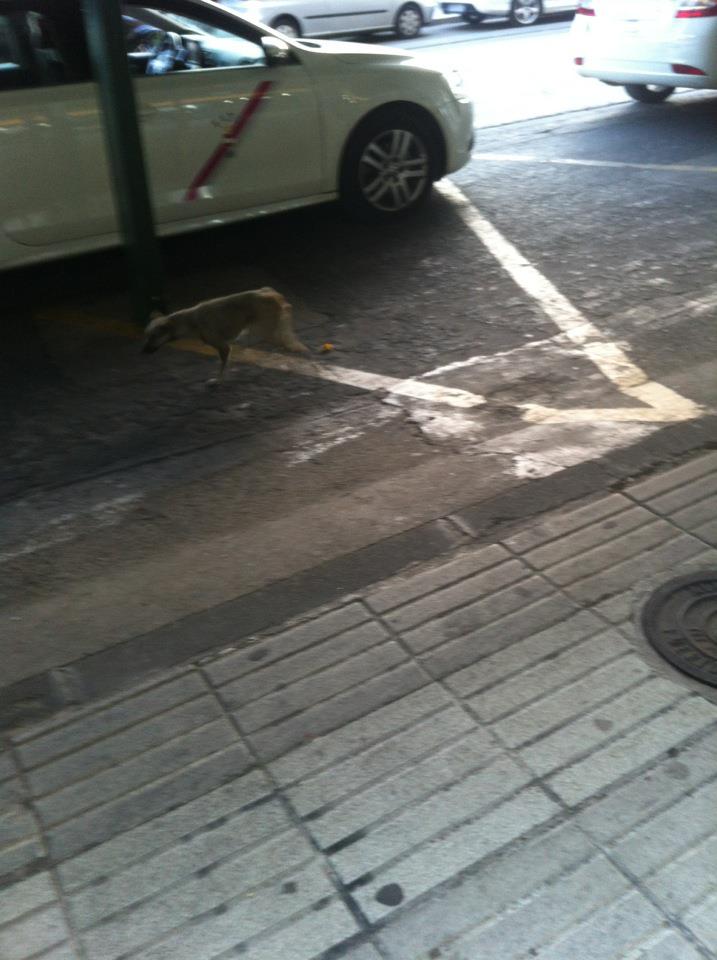 Encontramos a Valentina en la parada de taxis de Puertollano, estaba en unas condiciones lamentables, muerta de miedo, en los huesos, con una pata trasera rota y con los huesos astillados ya rompiendo la piel, plagada de parasitos externos e internos y ahora que está un poquito recuperada, necesita operación urgentemente de su patita.