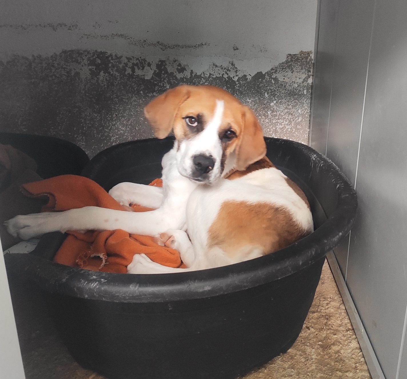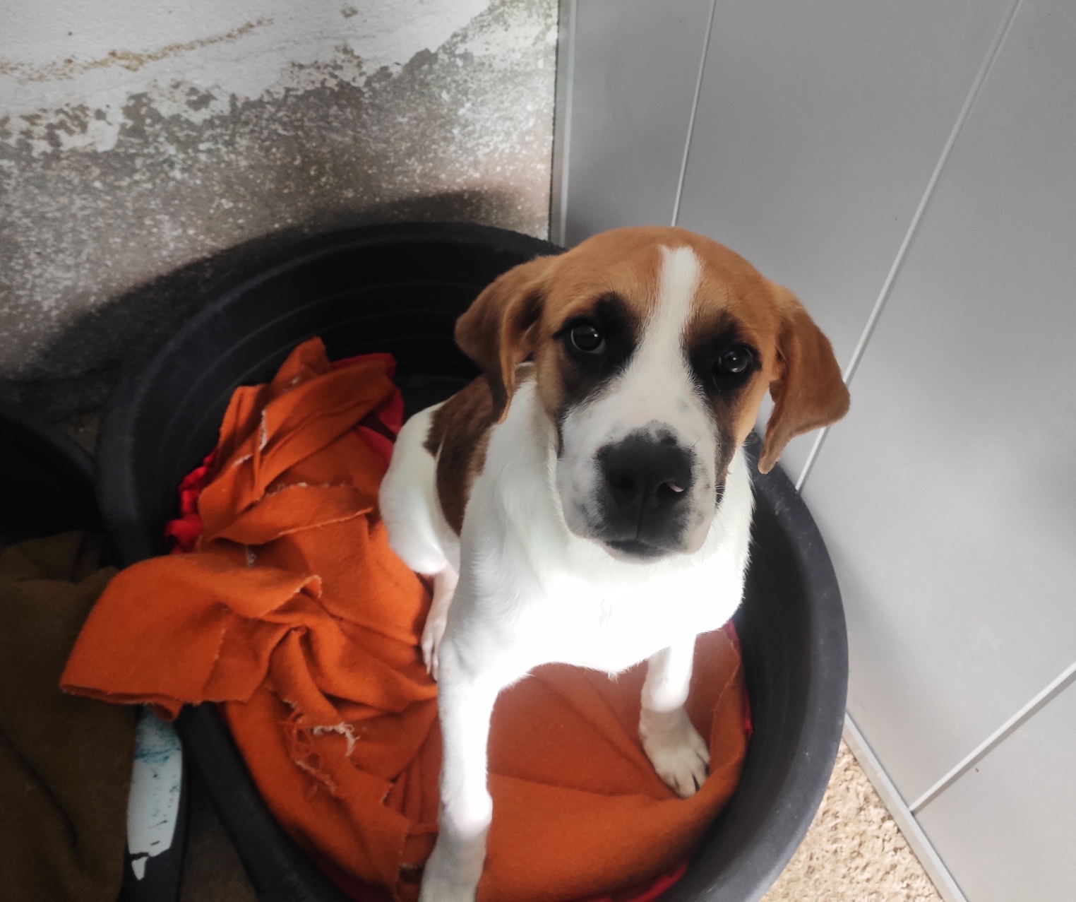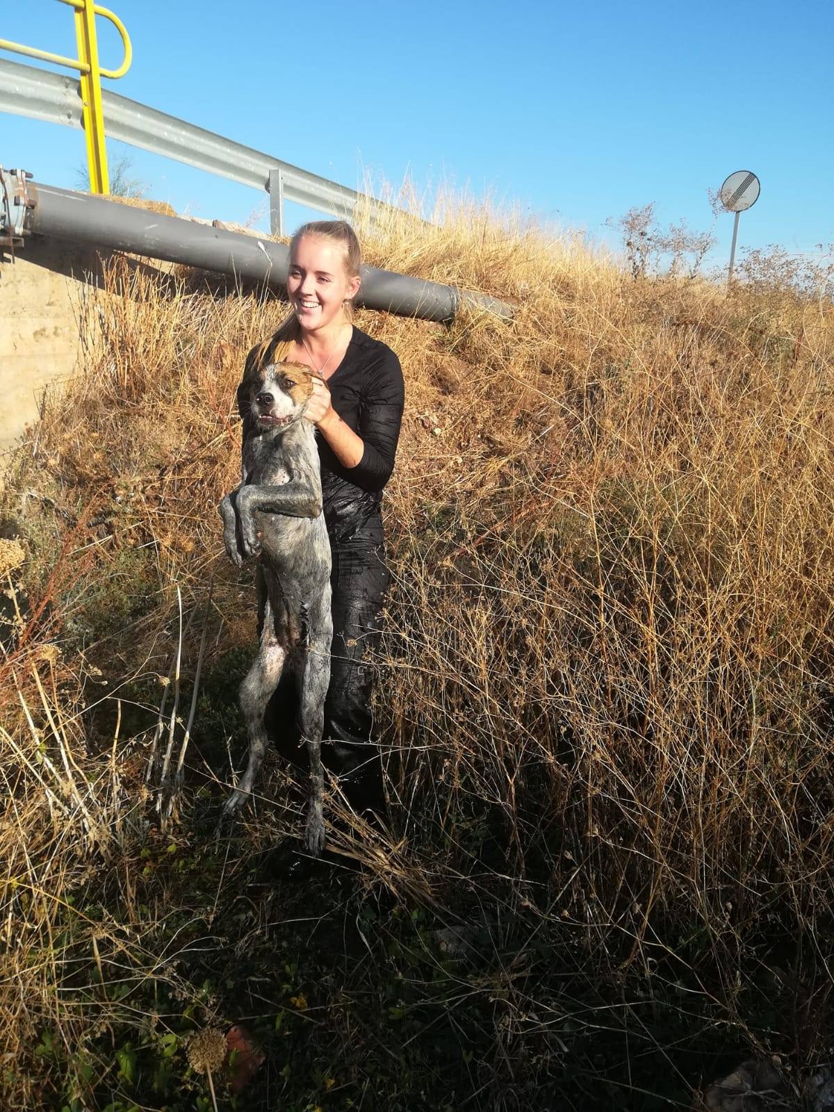 Yvon e Indigo dos cachorros que ya han sufrido el abandono, nos dieron aviso de que habían visto a un coche tirar a la carretera dos perros cerca del albergue se fueron a buscar pero no vimos ni rastro, al día siguiente cuando los voluntarios íbamos al albergue los fuimos a buscar de nuevo y estaban metidos en el río, una de nuestras voluntarias Holandesa no dudó en meterse a por uno de ellos, estaban hasta arriba de barro y lodo, y con los rabos recién cortados que tuvieron que ser llevados de urgencias al veterinario tras la revisión fueron lavados y curados y ahora están con medicación. Tienen un miedo horrible pero sabemos que será cuestión de tiempo y que poco a poco irán cambiando, son muy jóvenes y tienen que tener su oportunidad.