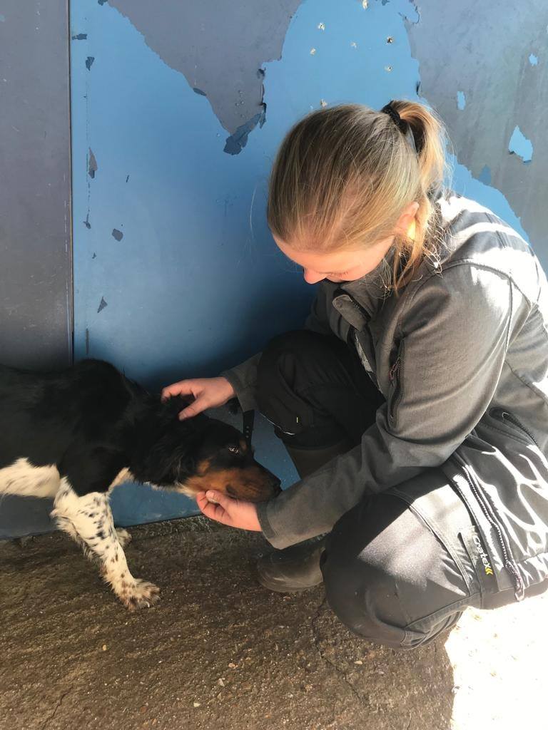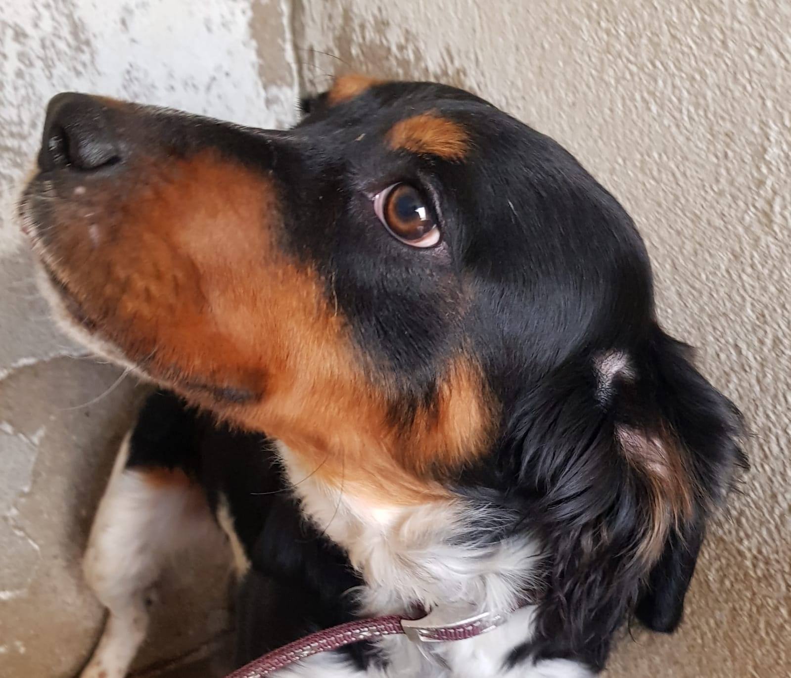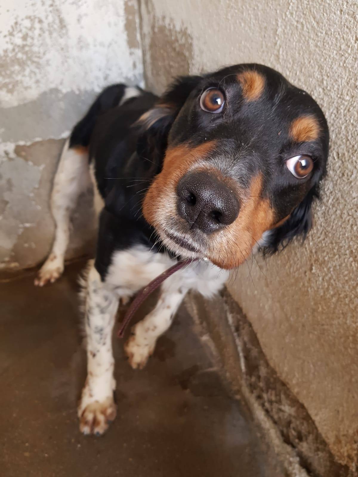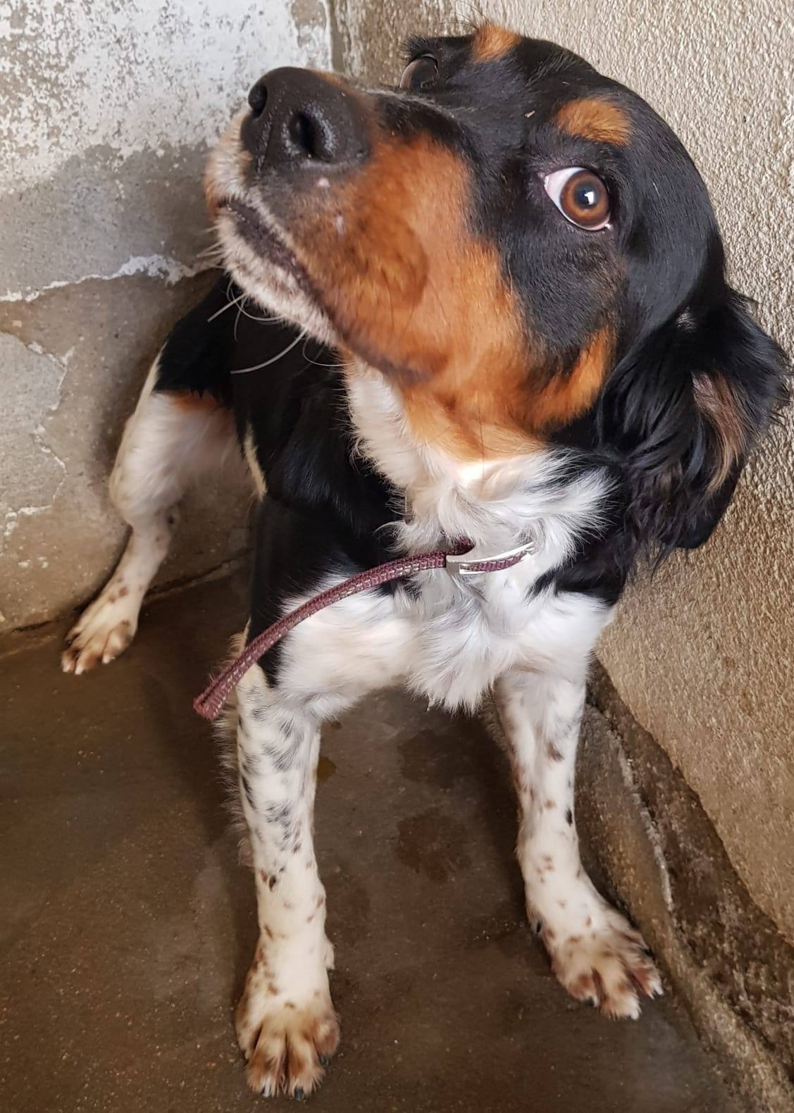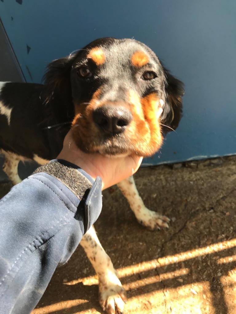 Charlton fue recogido en la calle por una voluntaria, estaba muy asustado. Es un perro muy simpático y activo.