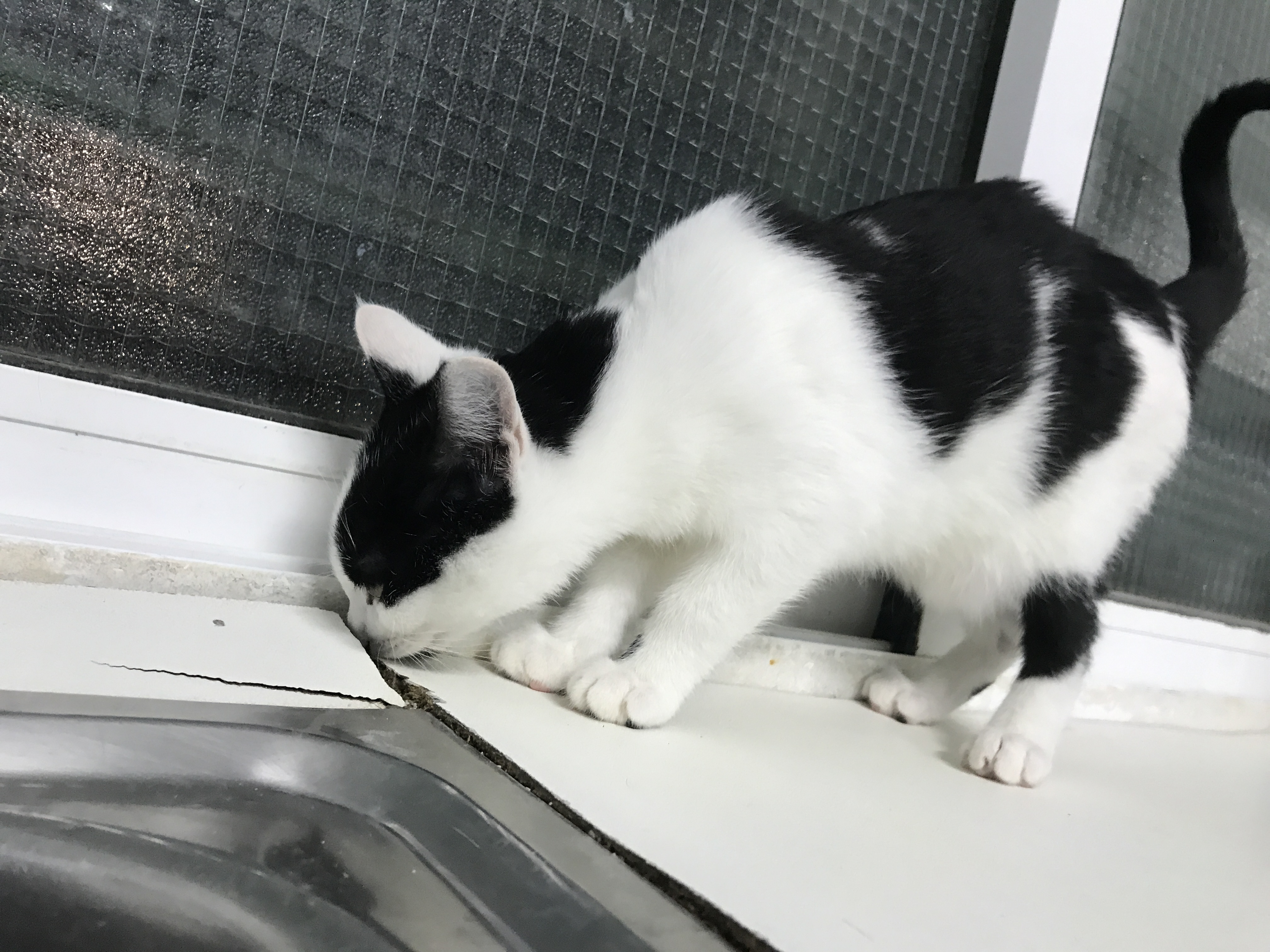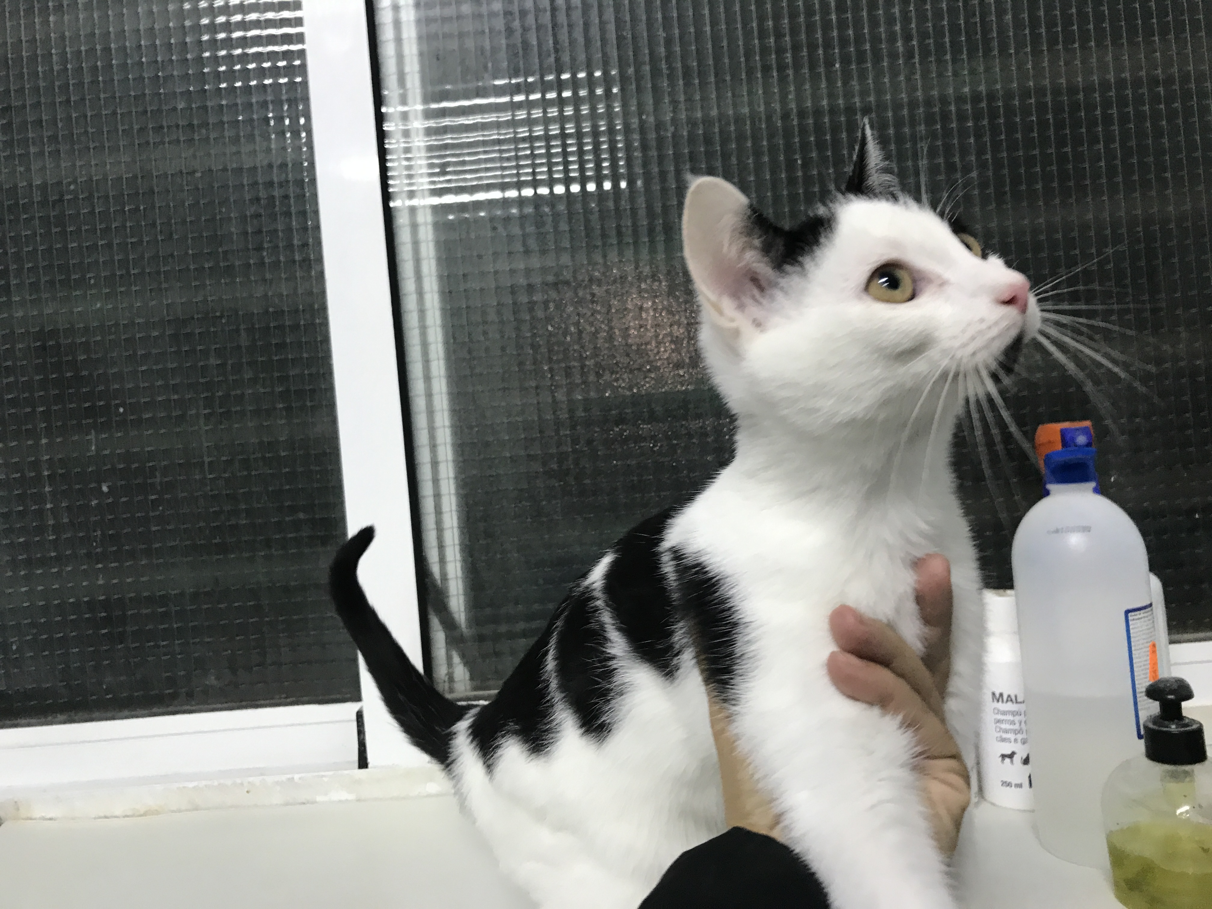 A Bombón (macho) la encontramos junto a sus hermanas Lisa, Puca y Burbuja, no teían ni 1 mes.