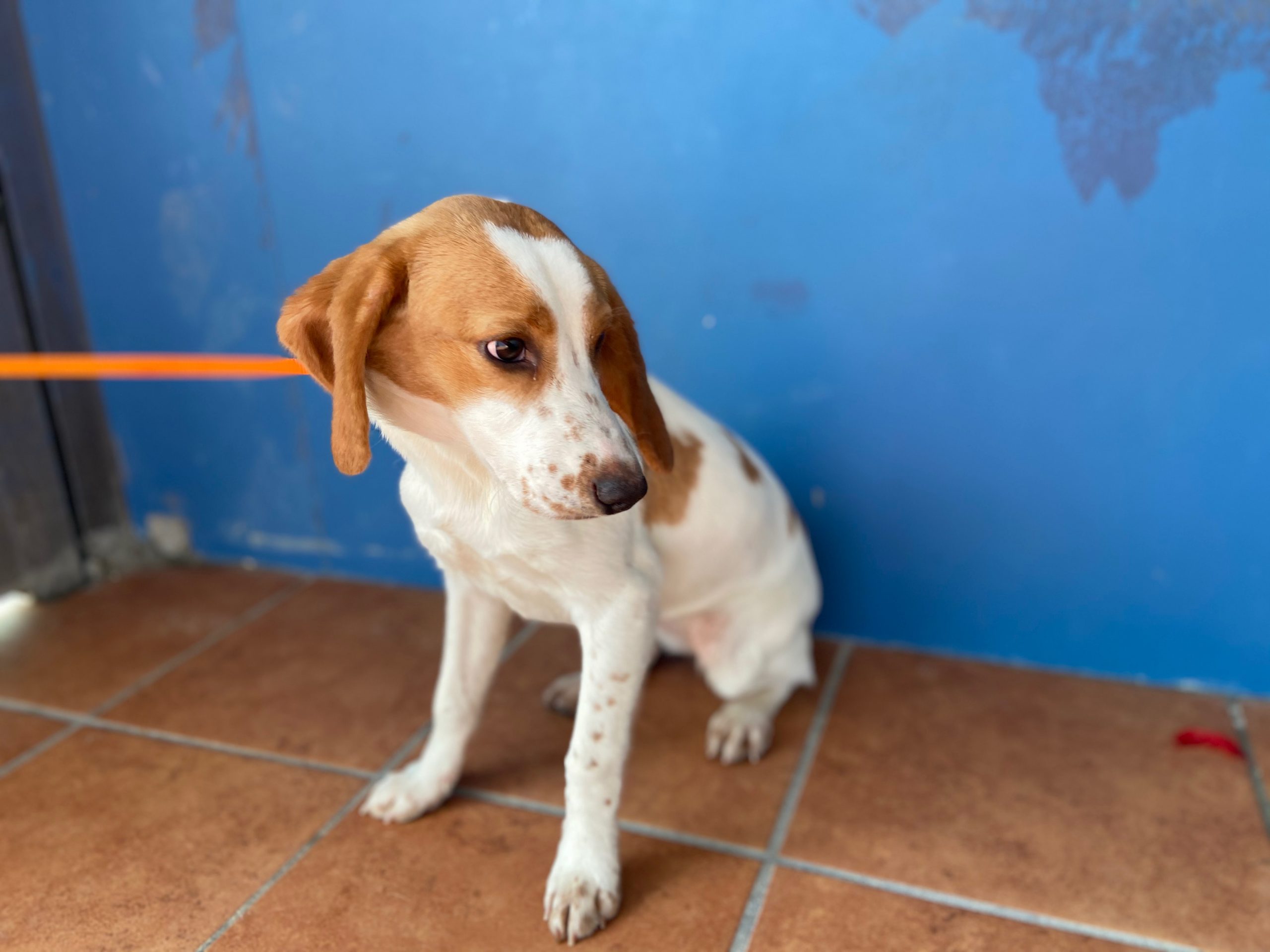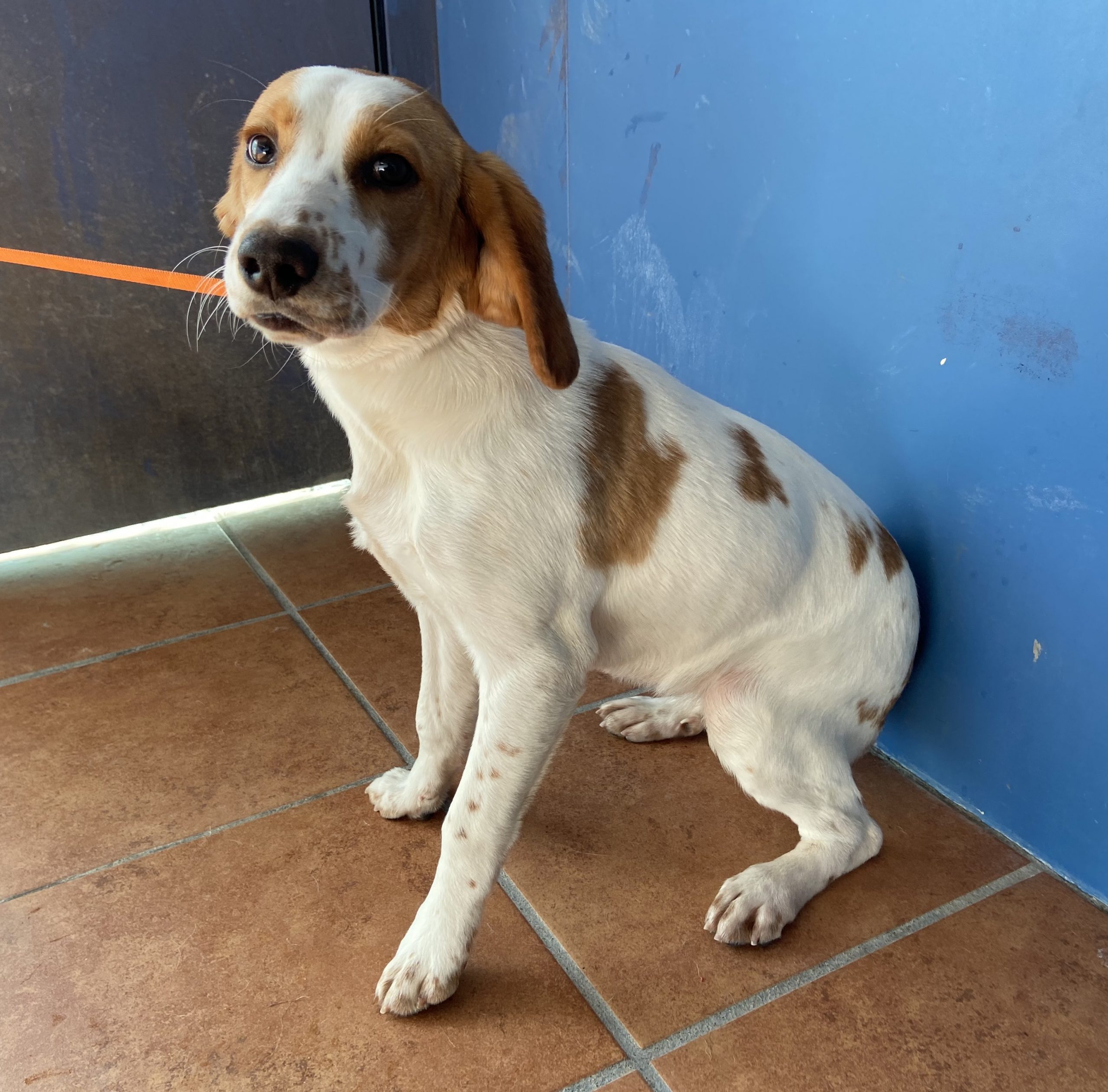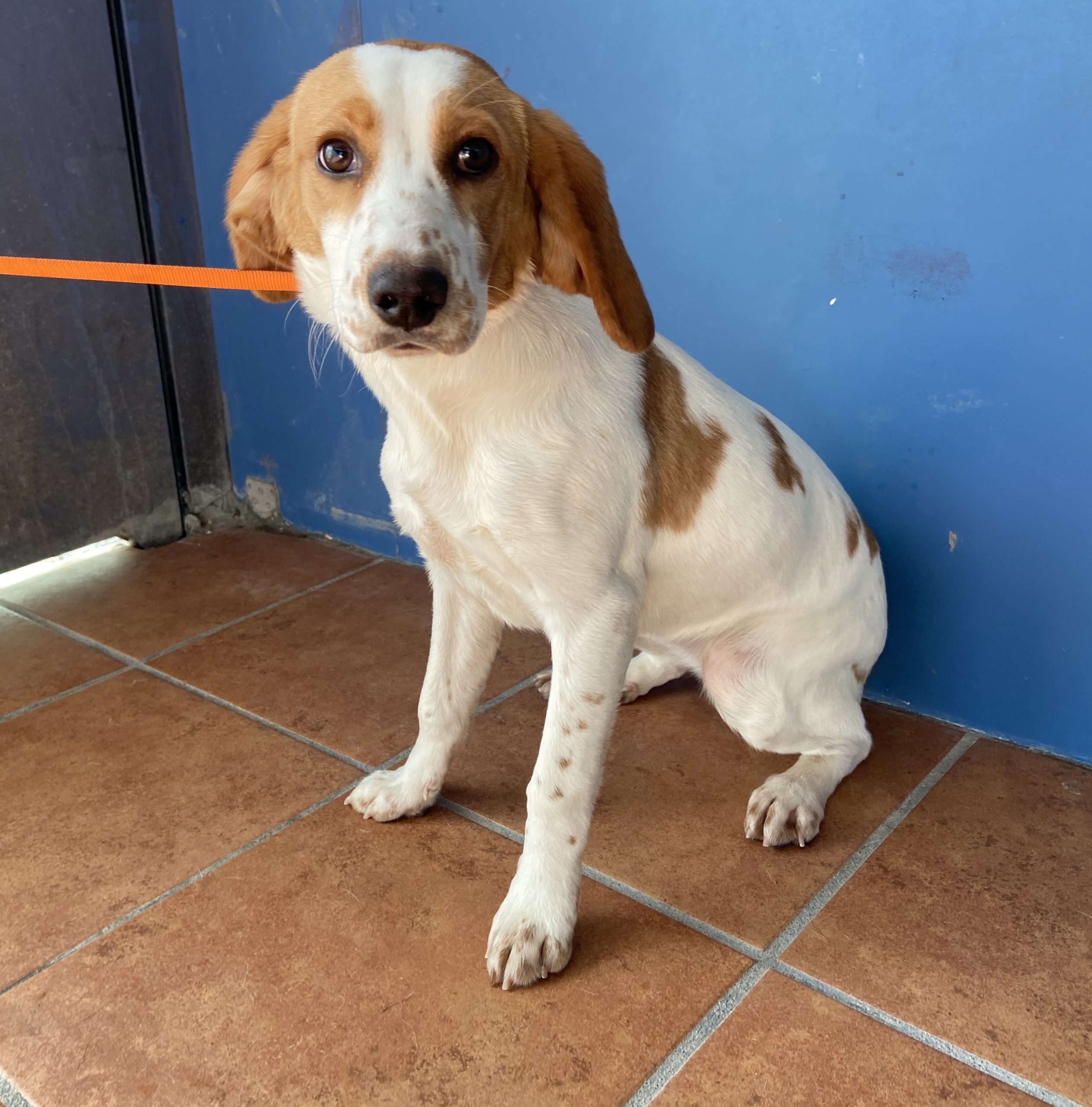 Neftis es cruce de bretón y solo una cahorra, tendrá 4 o 5 meses pero ya no la quieren, otro «estorbo» para su dueño al albergue. Es super cariñosa.