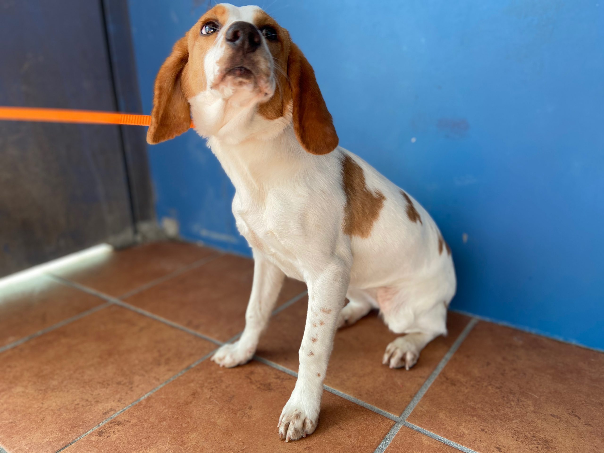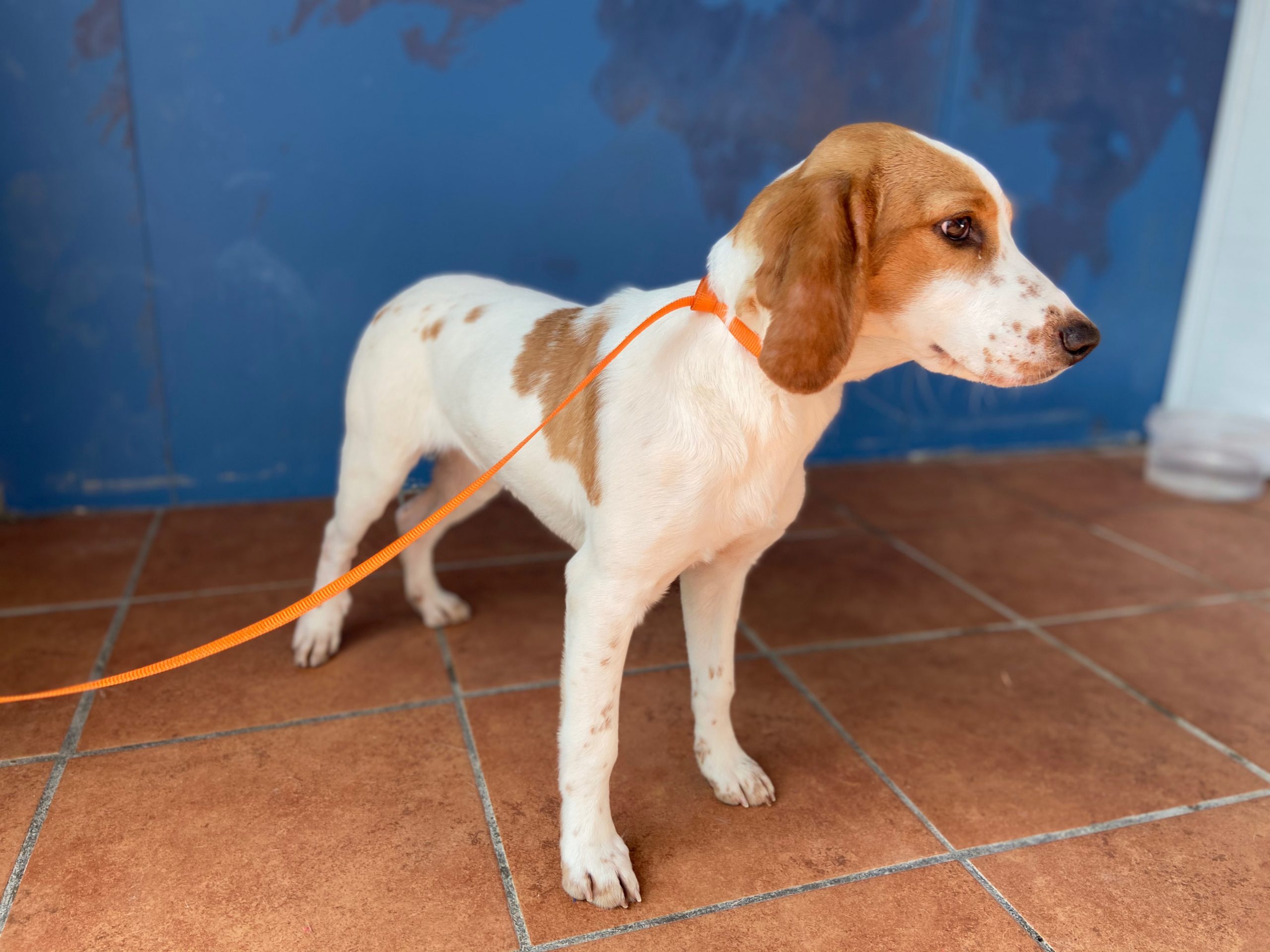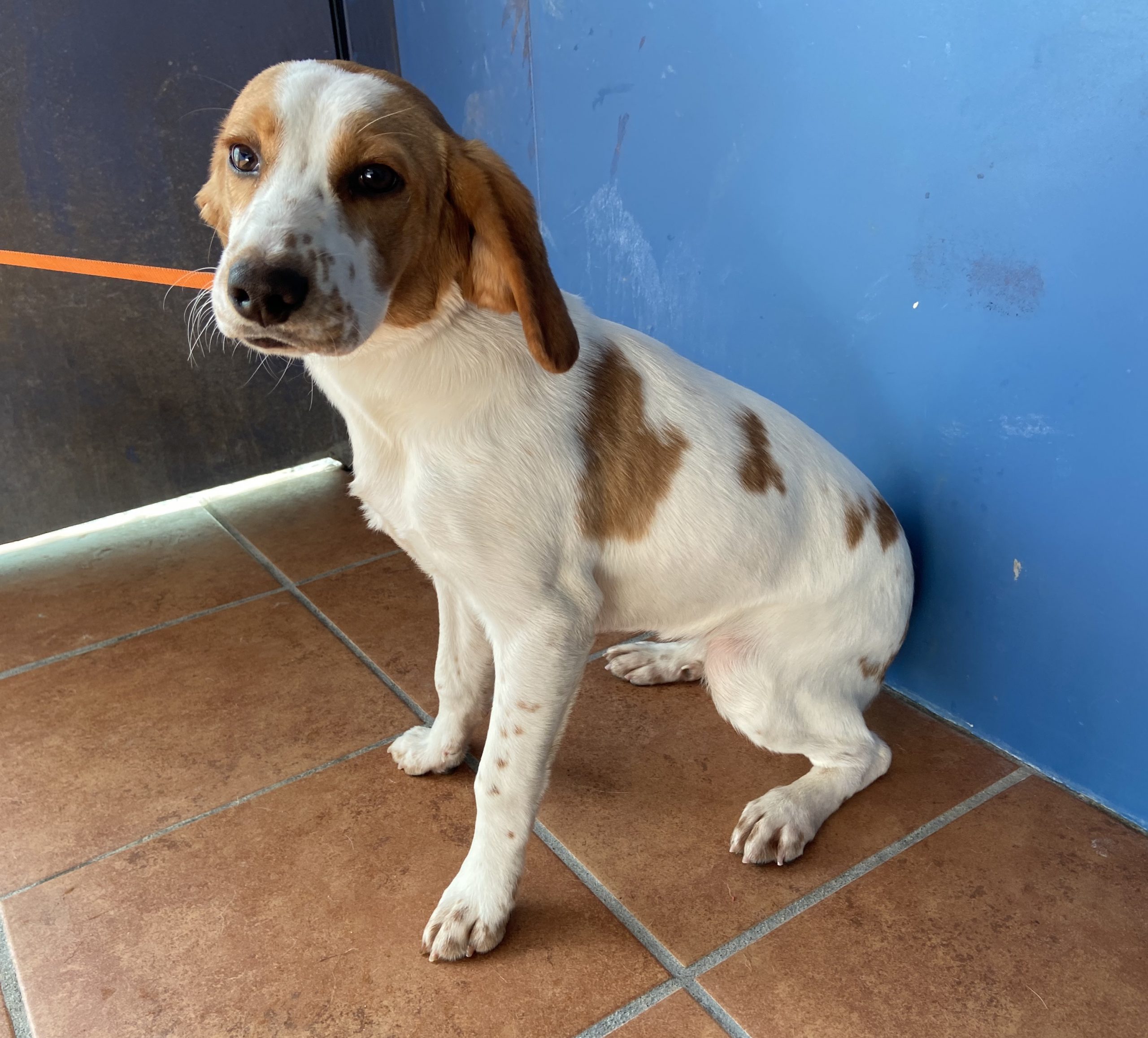 Neftis es cruce de bretón y solo una cahorra, tendrá 4 o 5 meses pero ya no la quieren, otro «estorbo» para su dueño al albergue. Es super cariñosa.