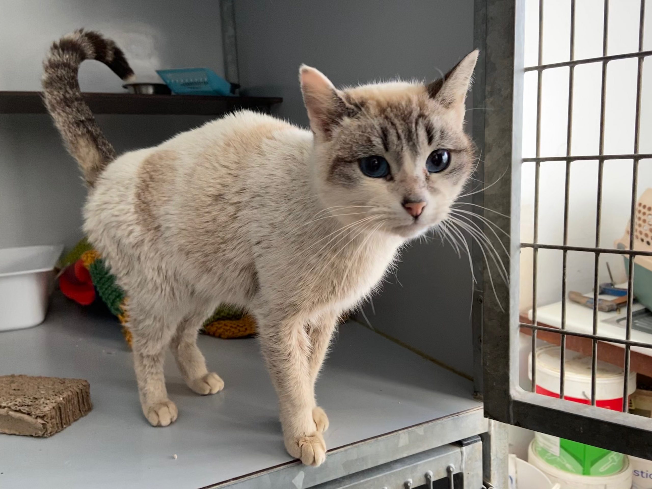 Estaba cerca de Repsol y dentro de un charco de alquitran, le hemos lavado lo que hemos podido , pero aún le queda ponerse más guapa de lo que es.
