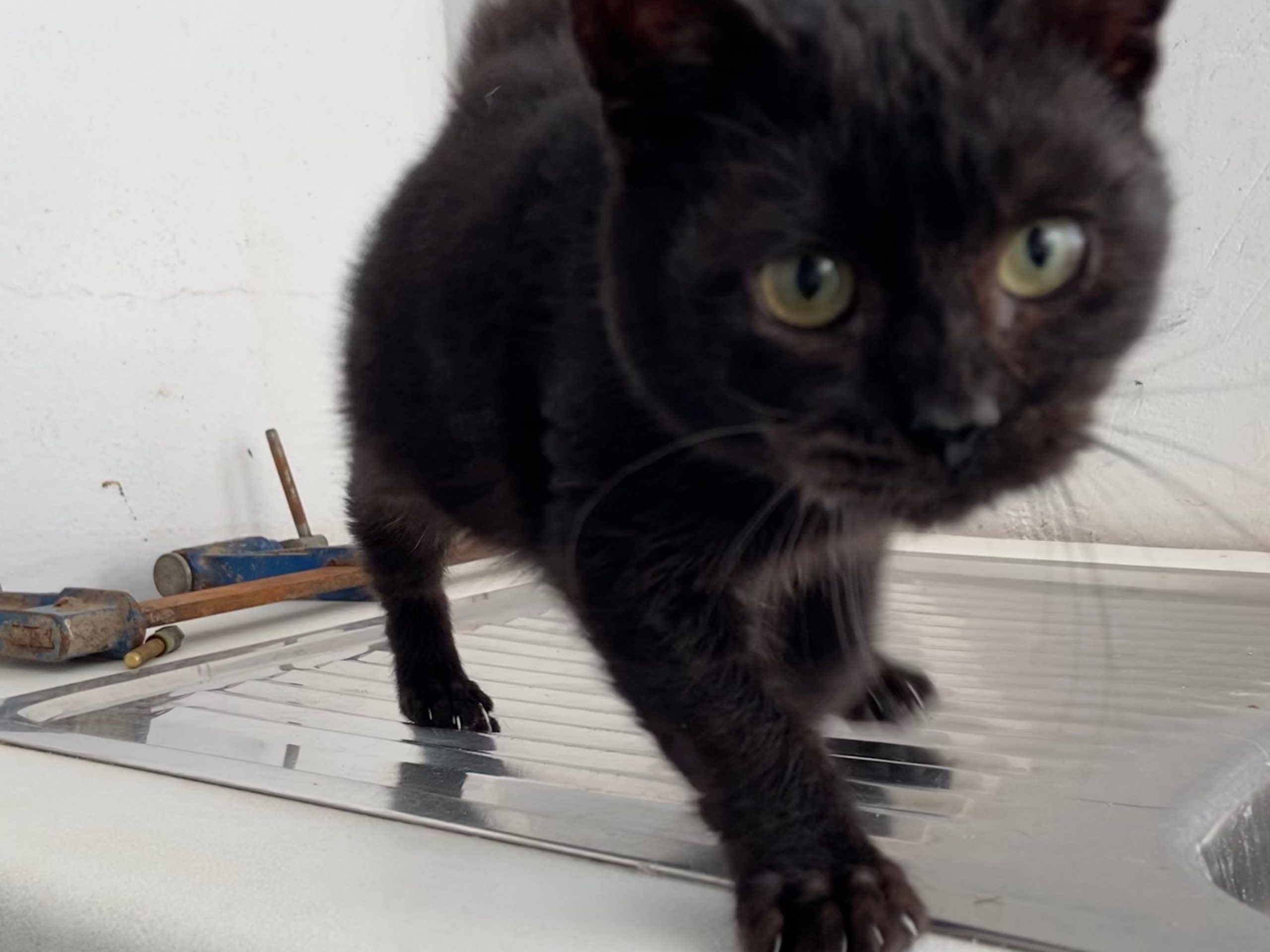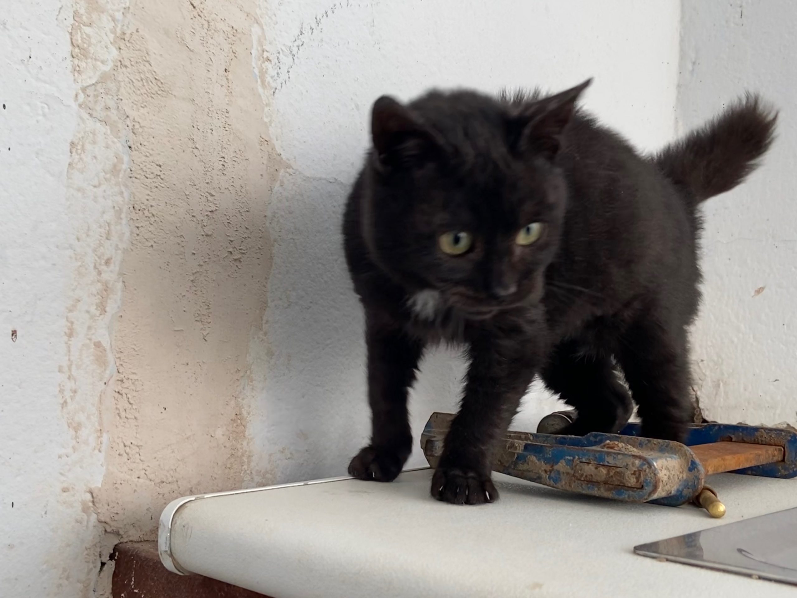 Lu es gatito muy pequeño que llego con un mes y unos días, está desde entonces en un jaulón.