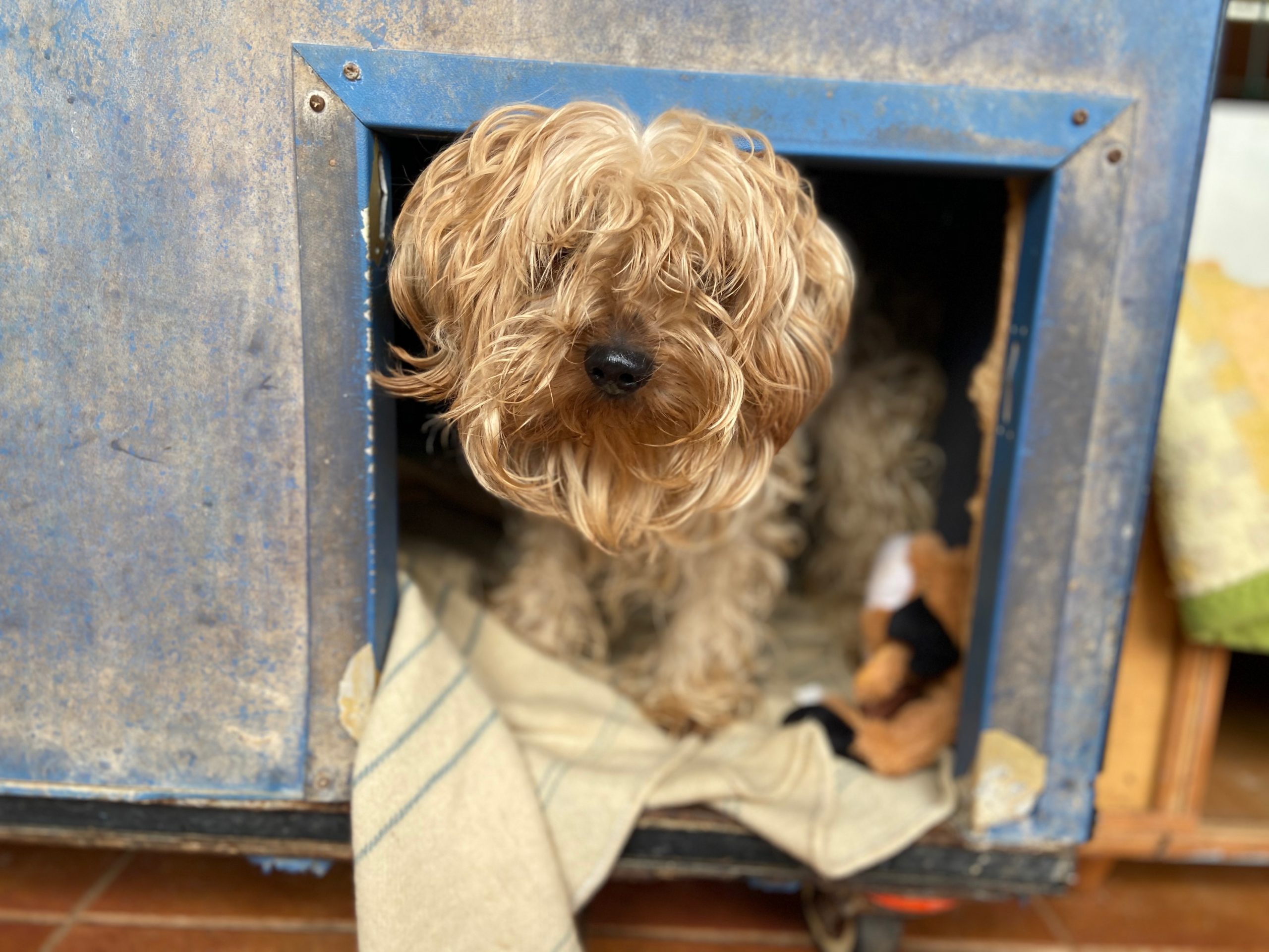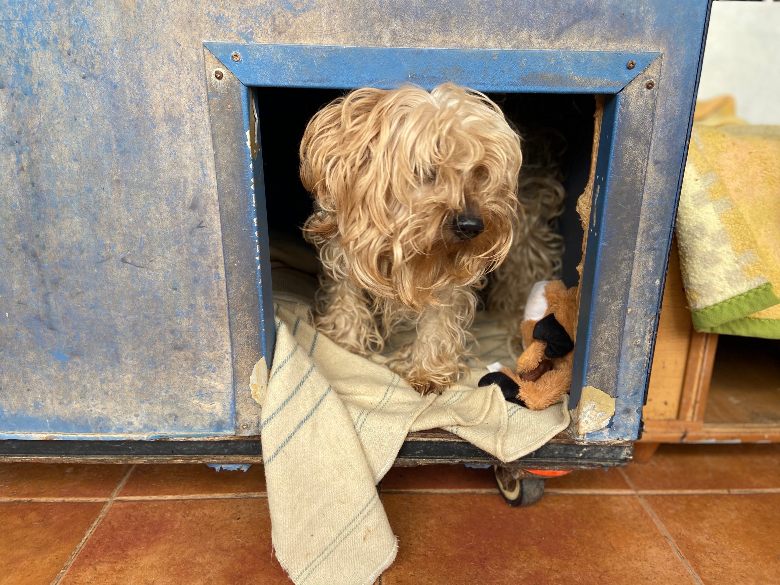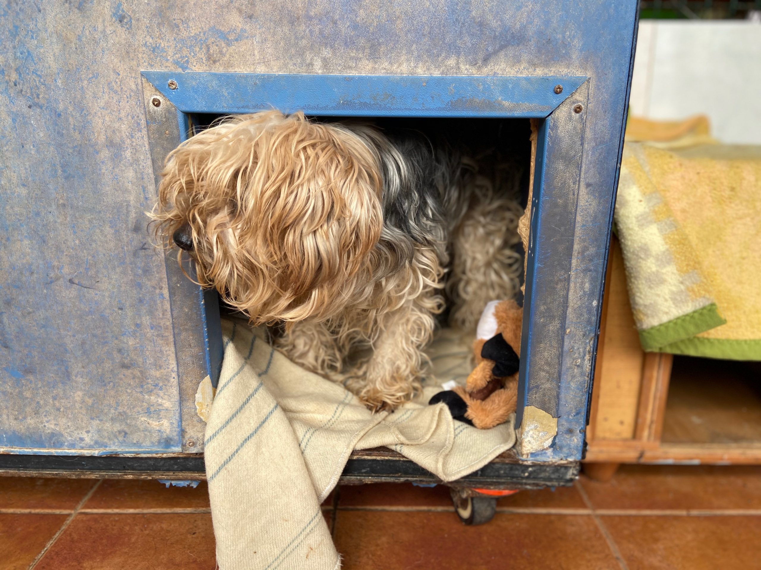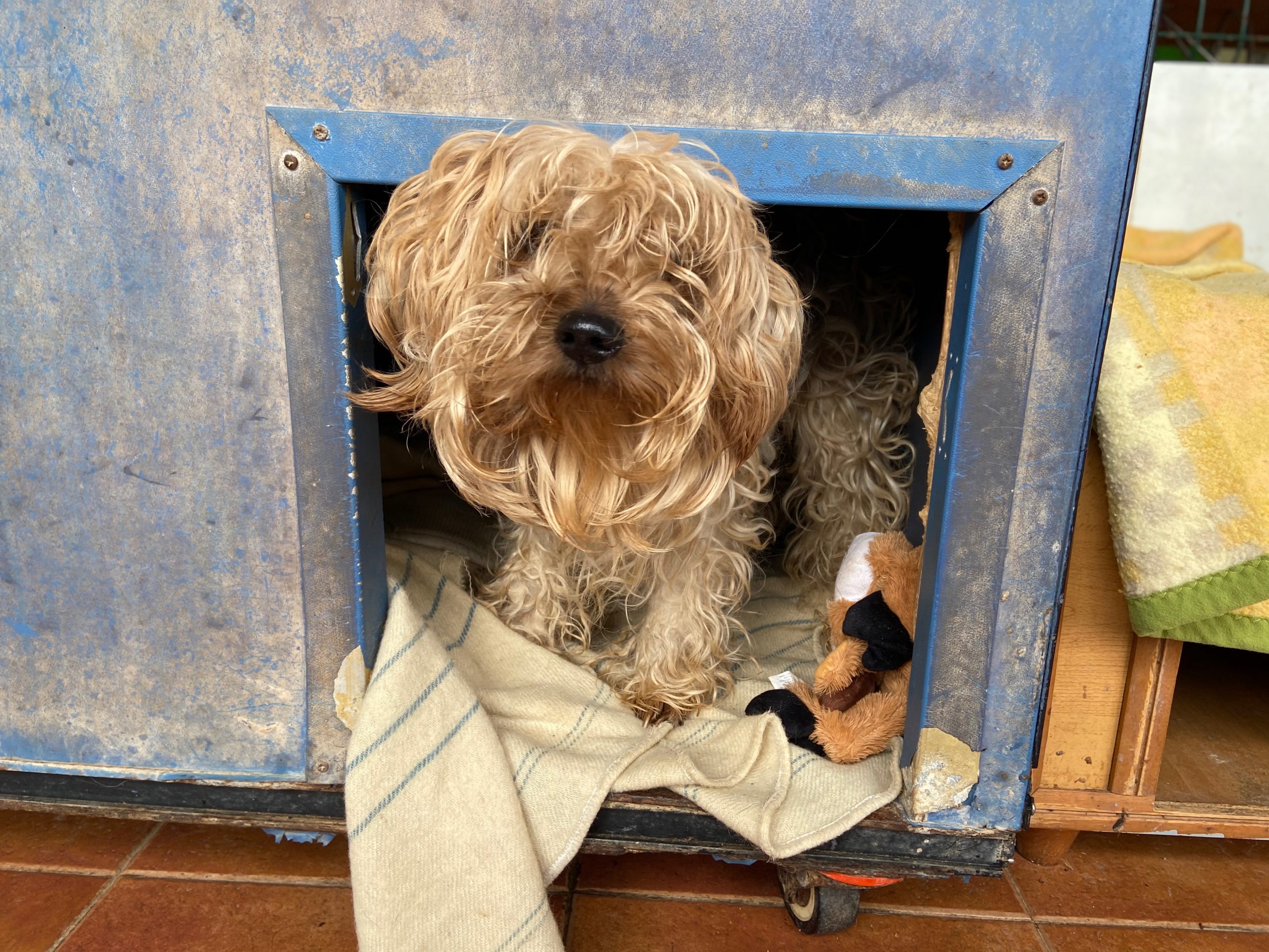 Es muy cariñosa y buena, aunque tiene un poco de miedo en el albergue