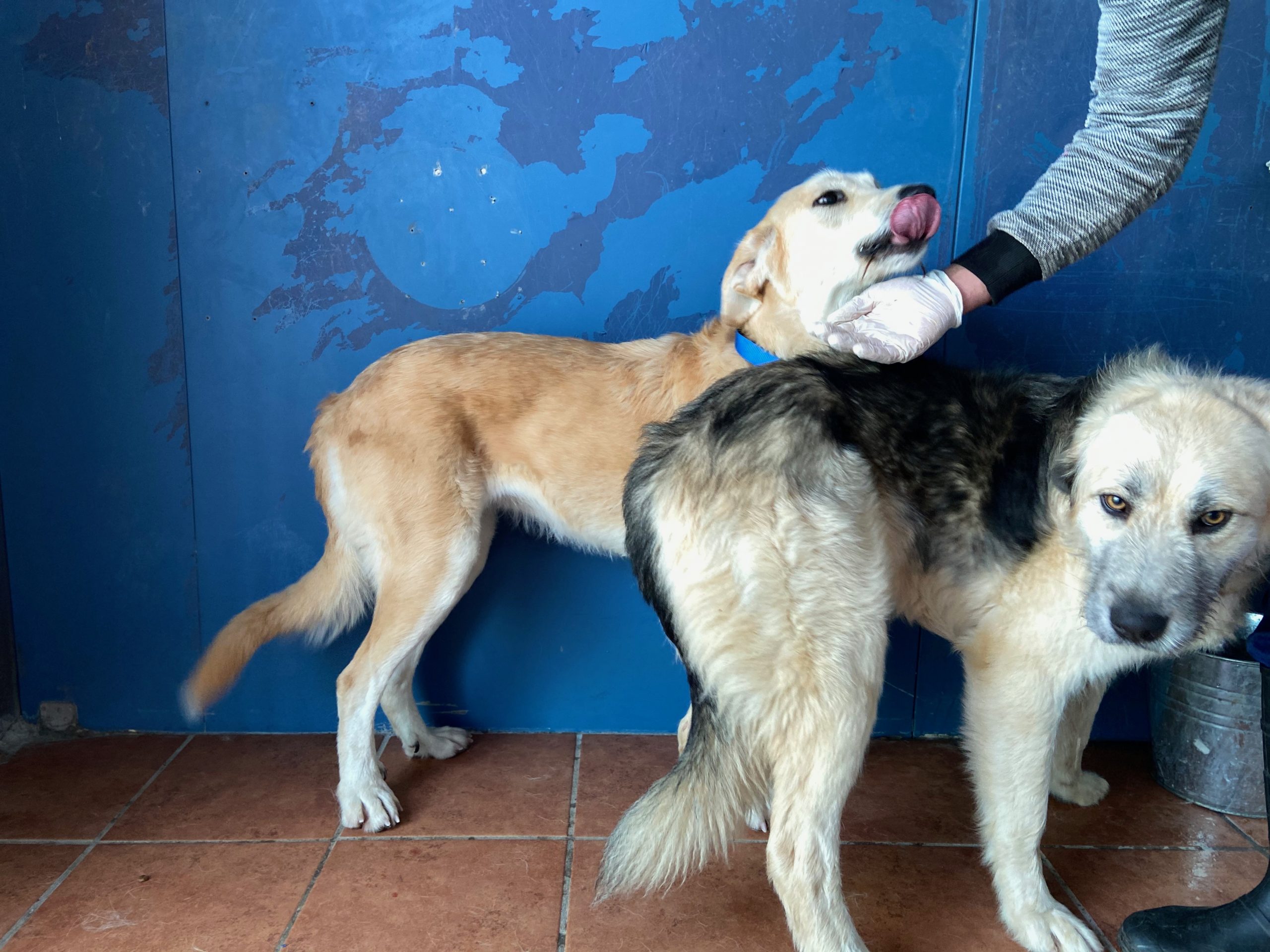 Grandeza y Euforia son dos hermanas cruce de mastín, las dos son muy buenas y están llenas de vitalidad porque son muy cachorronas, solo tienen 10 meses.