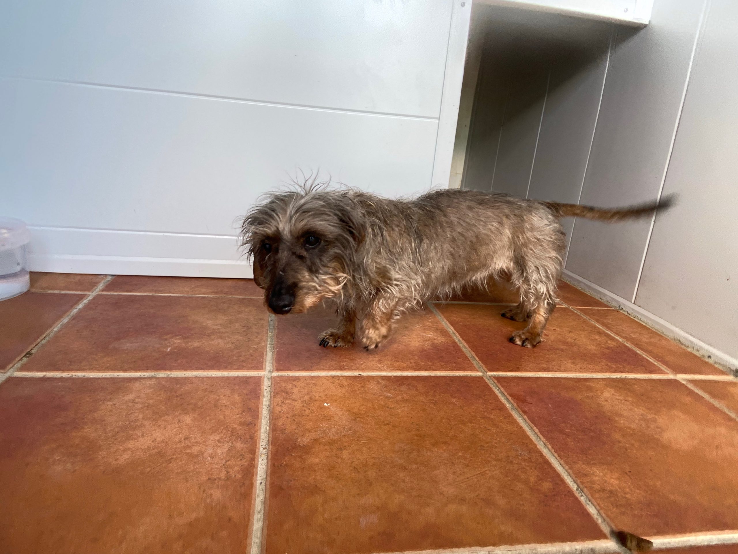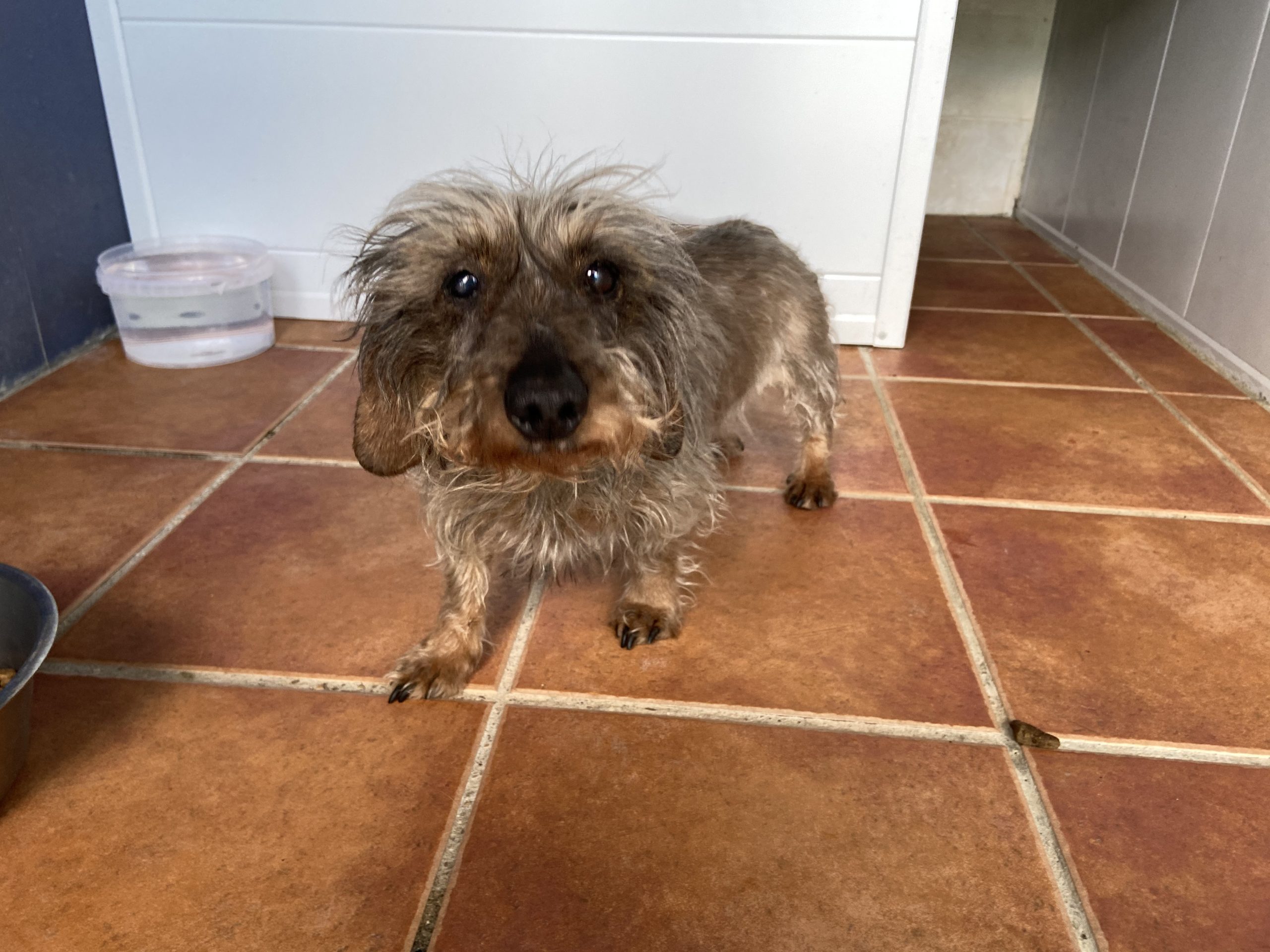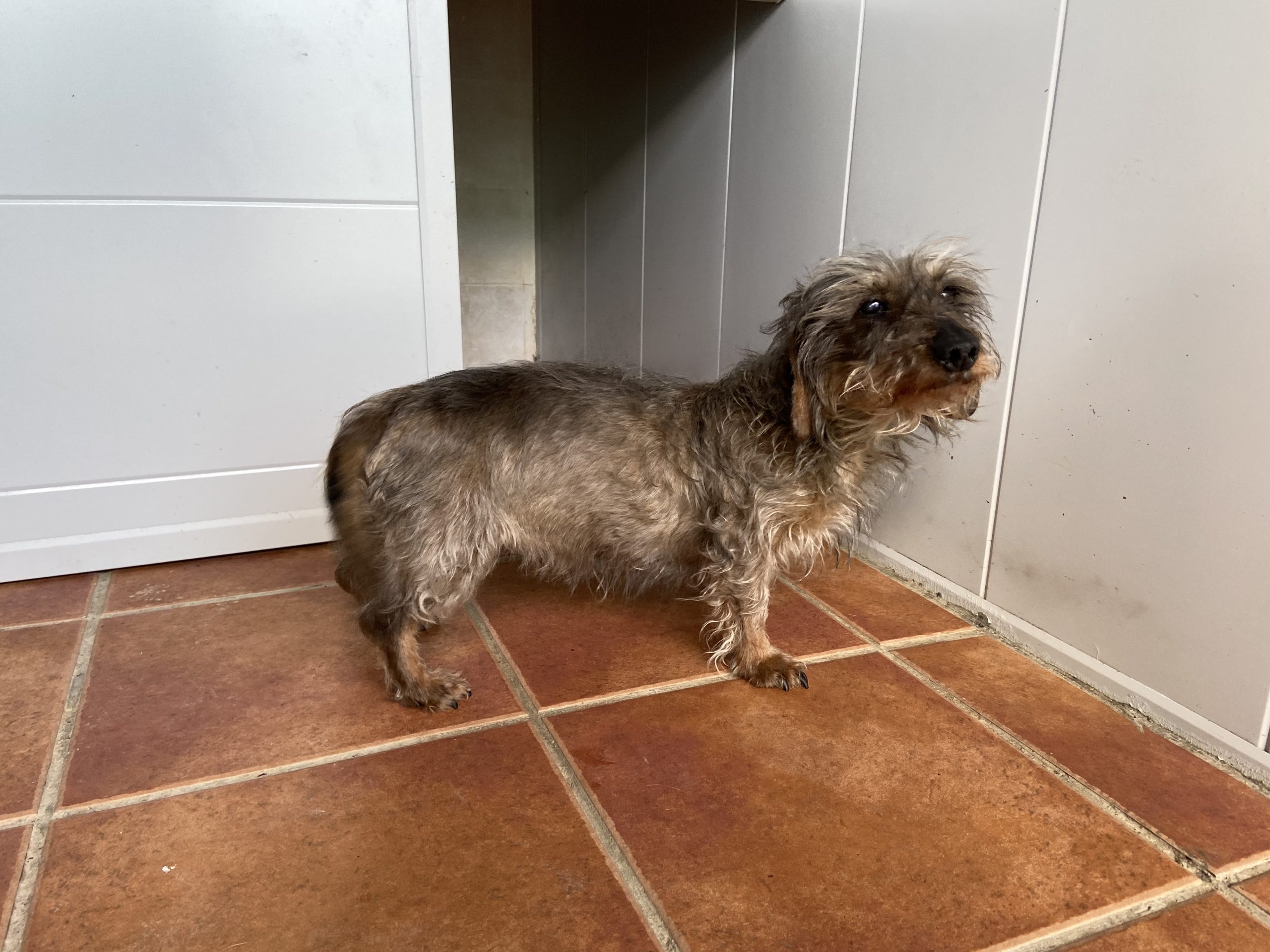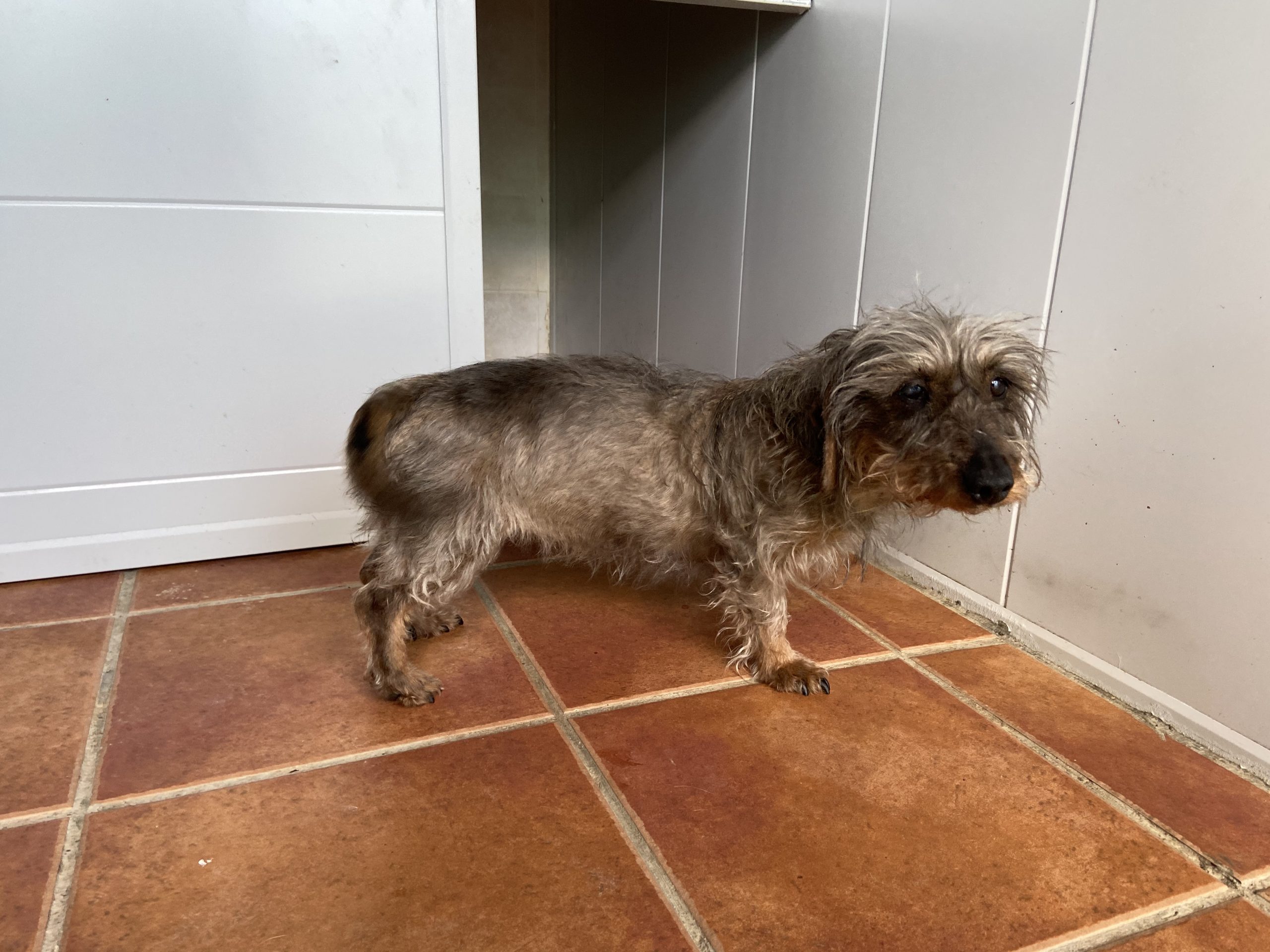 Eartha es una teckel mayorcita que nos la han traido contándonos unas mentiras que ya están puestas en conocimiento de la Policia, para que pueda actuar y abrir diligencias cuando pasen estas semanas de alarma.