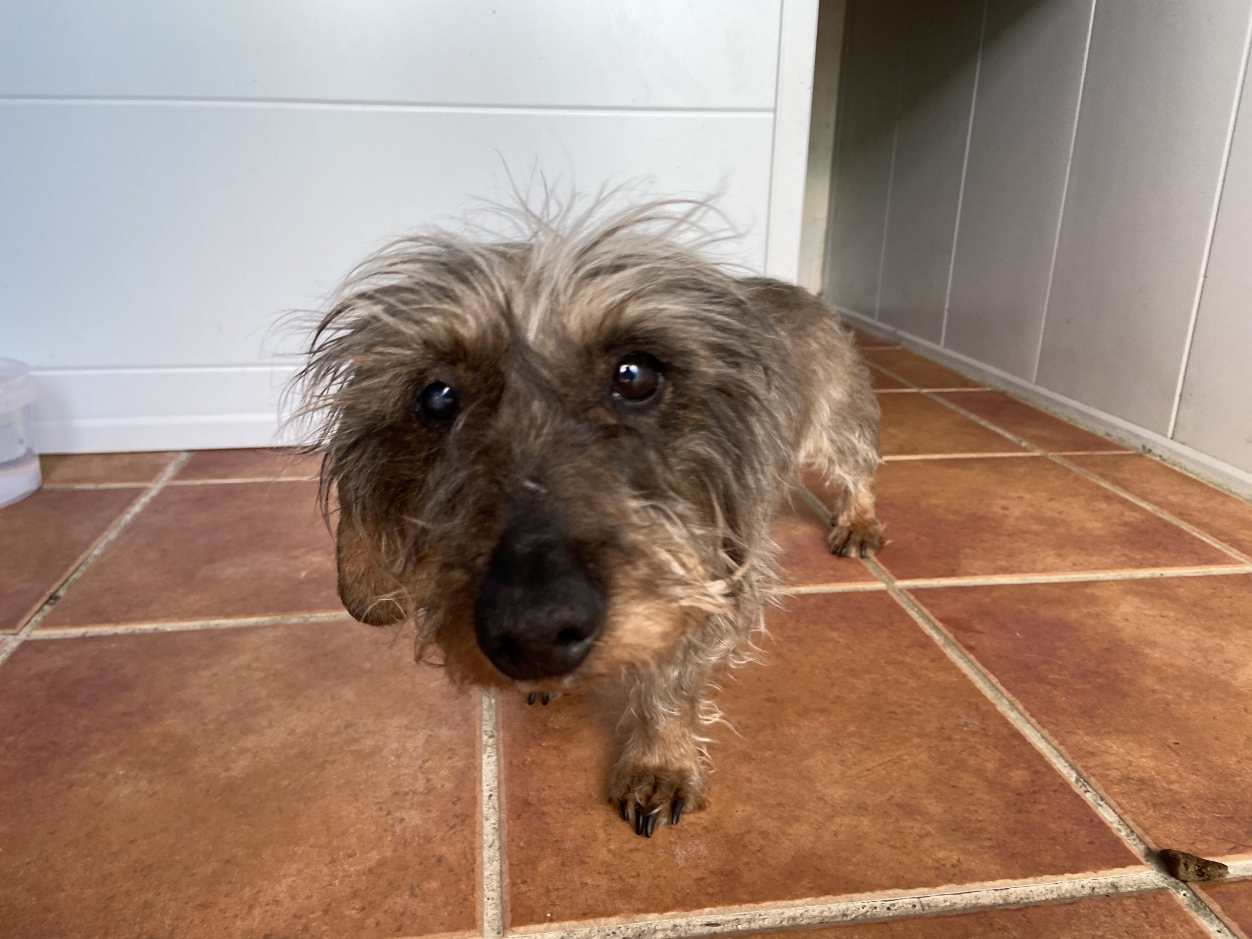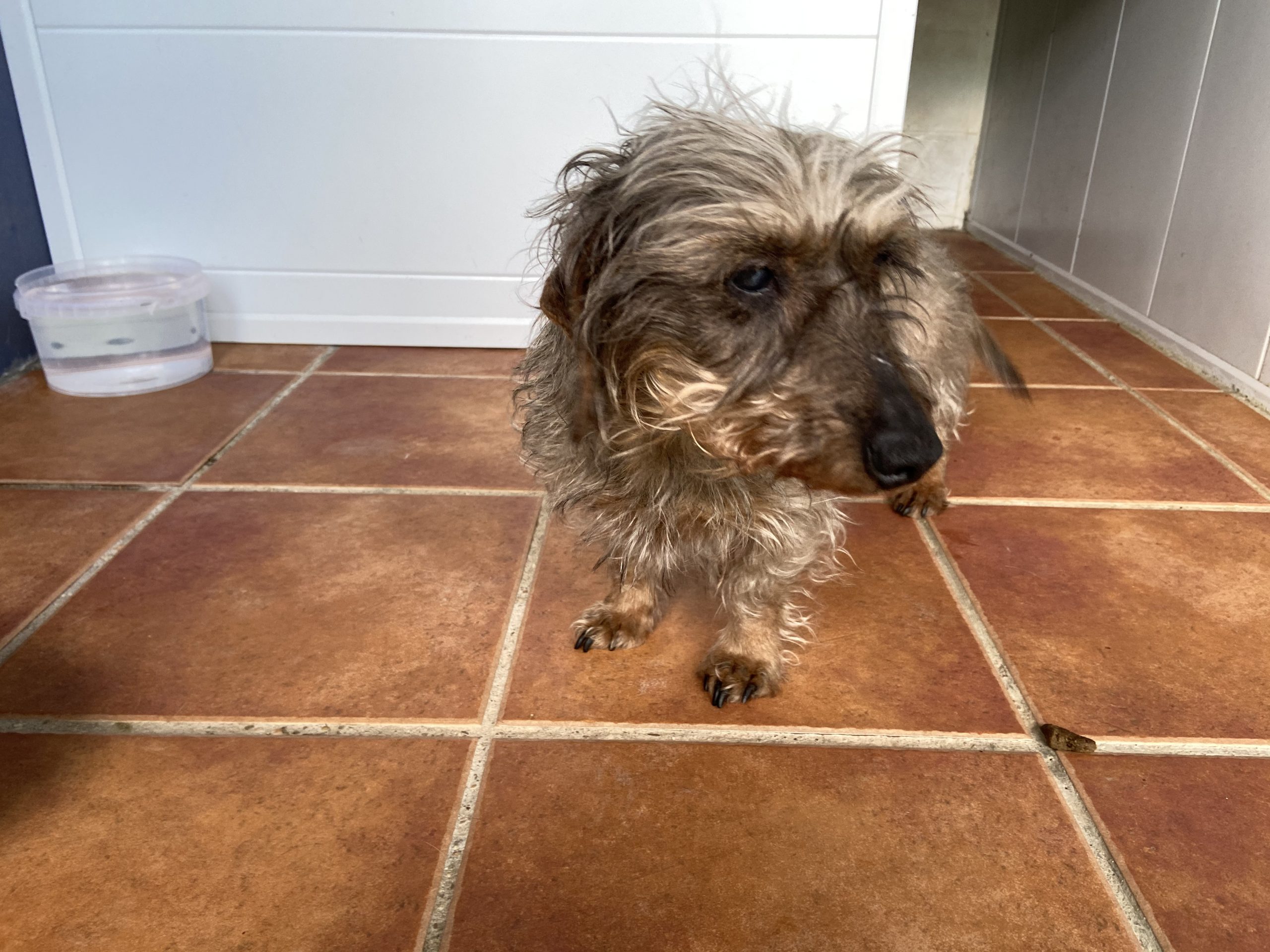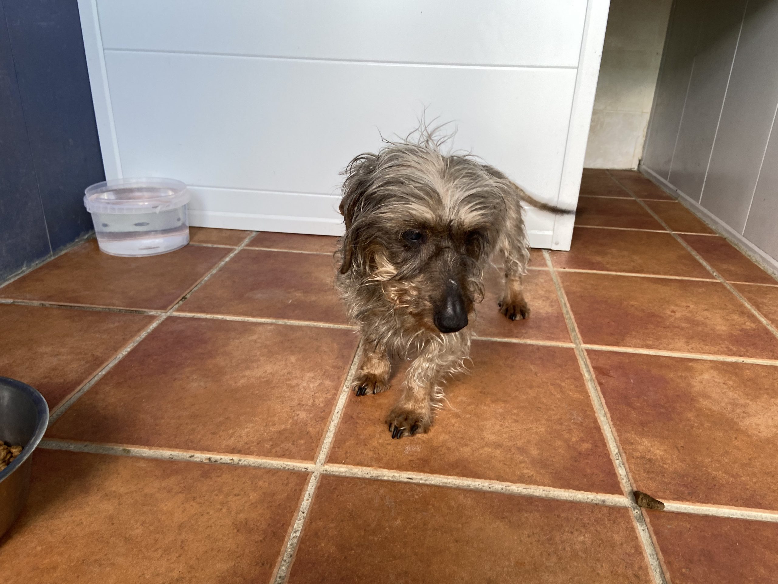 Eartha es una teckel mayorcita que nos la han traido contándonos unas mentiras que ya están puestas en conocimiento de la Policia, para que pueda actuar y abrir diligencias cuando pasen estas semanas de alarma.