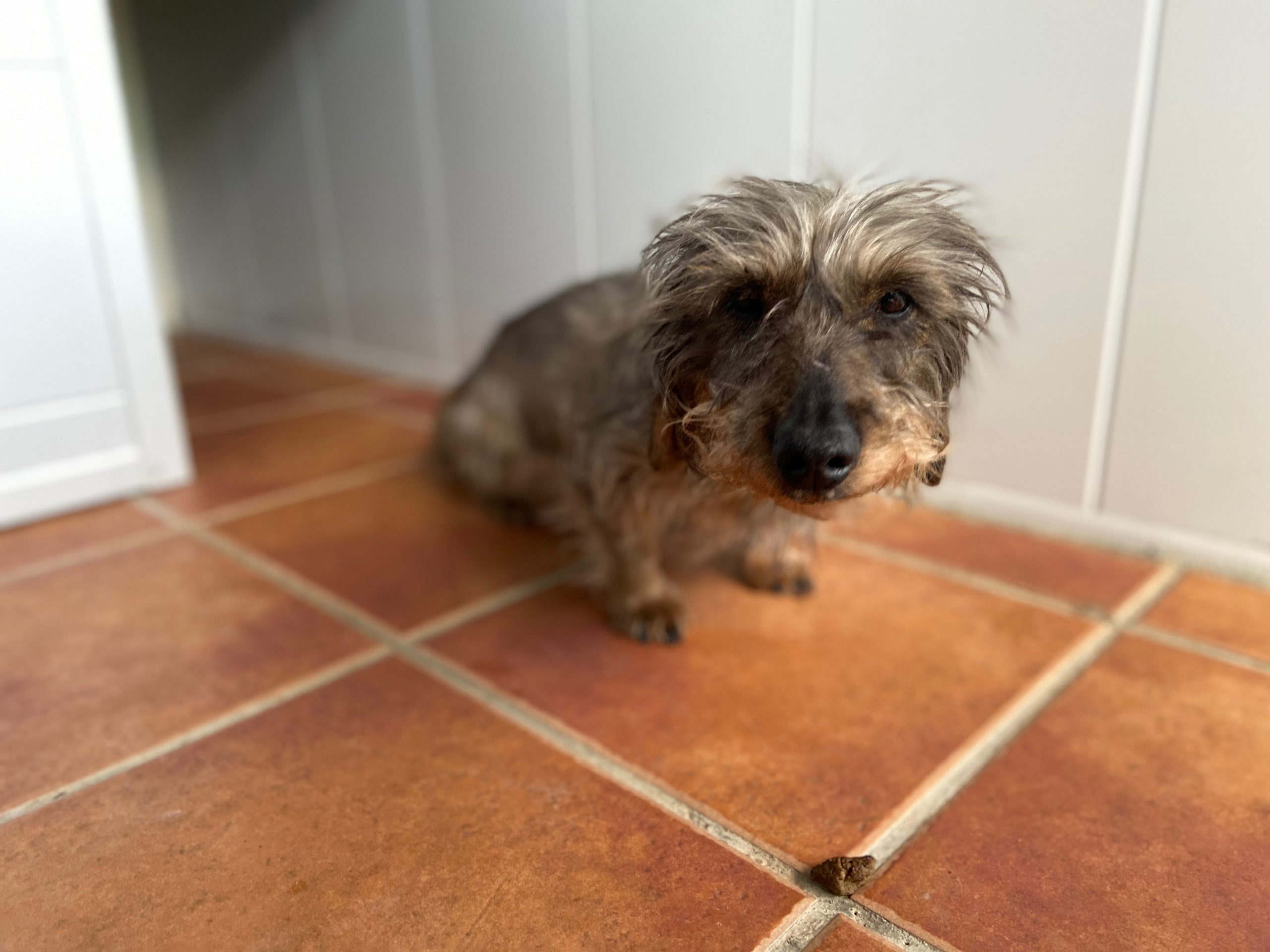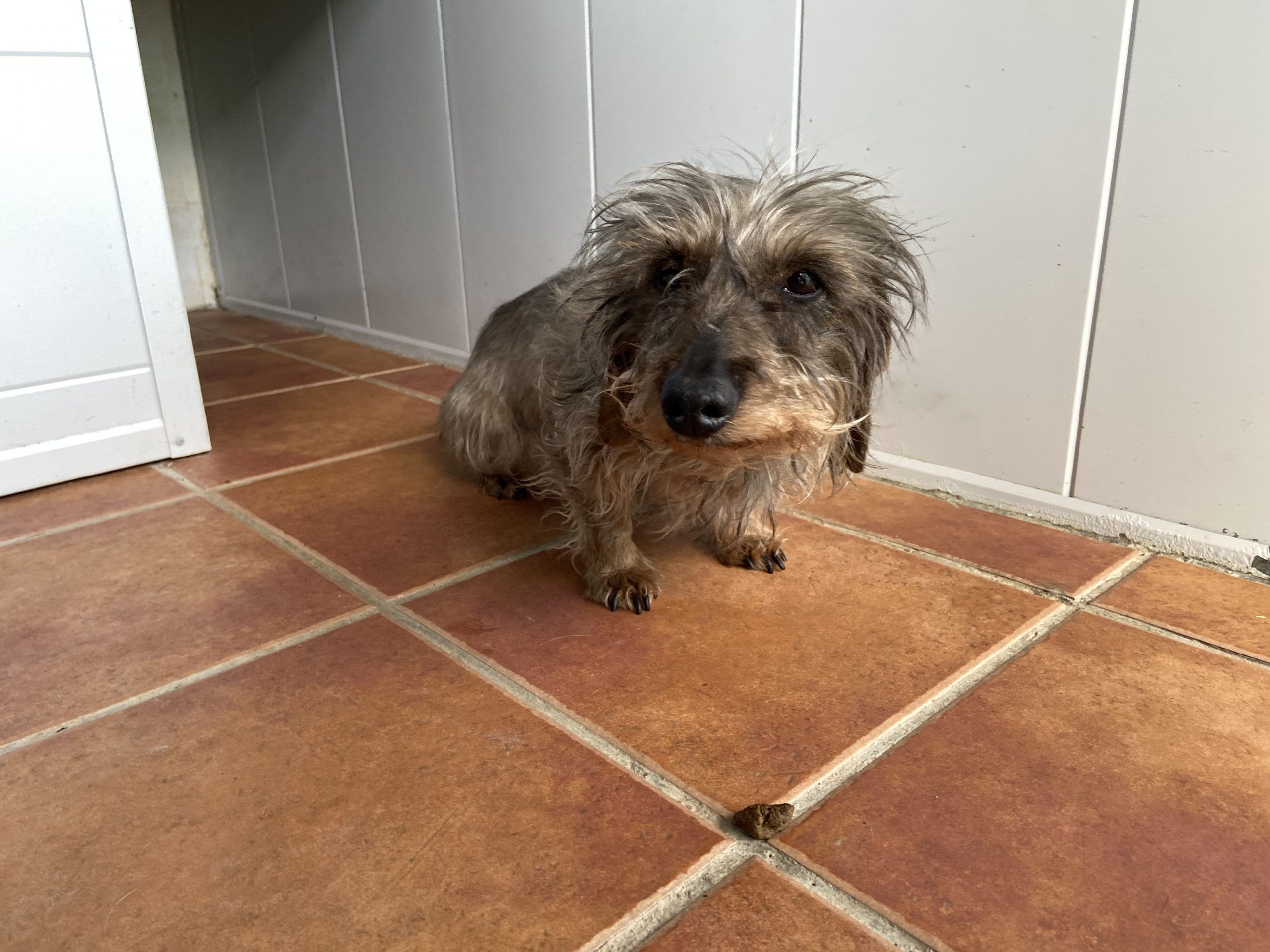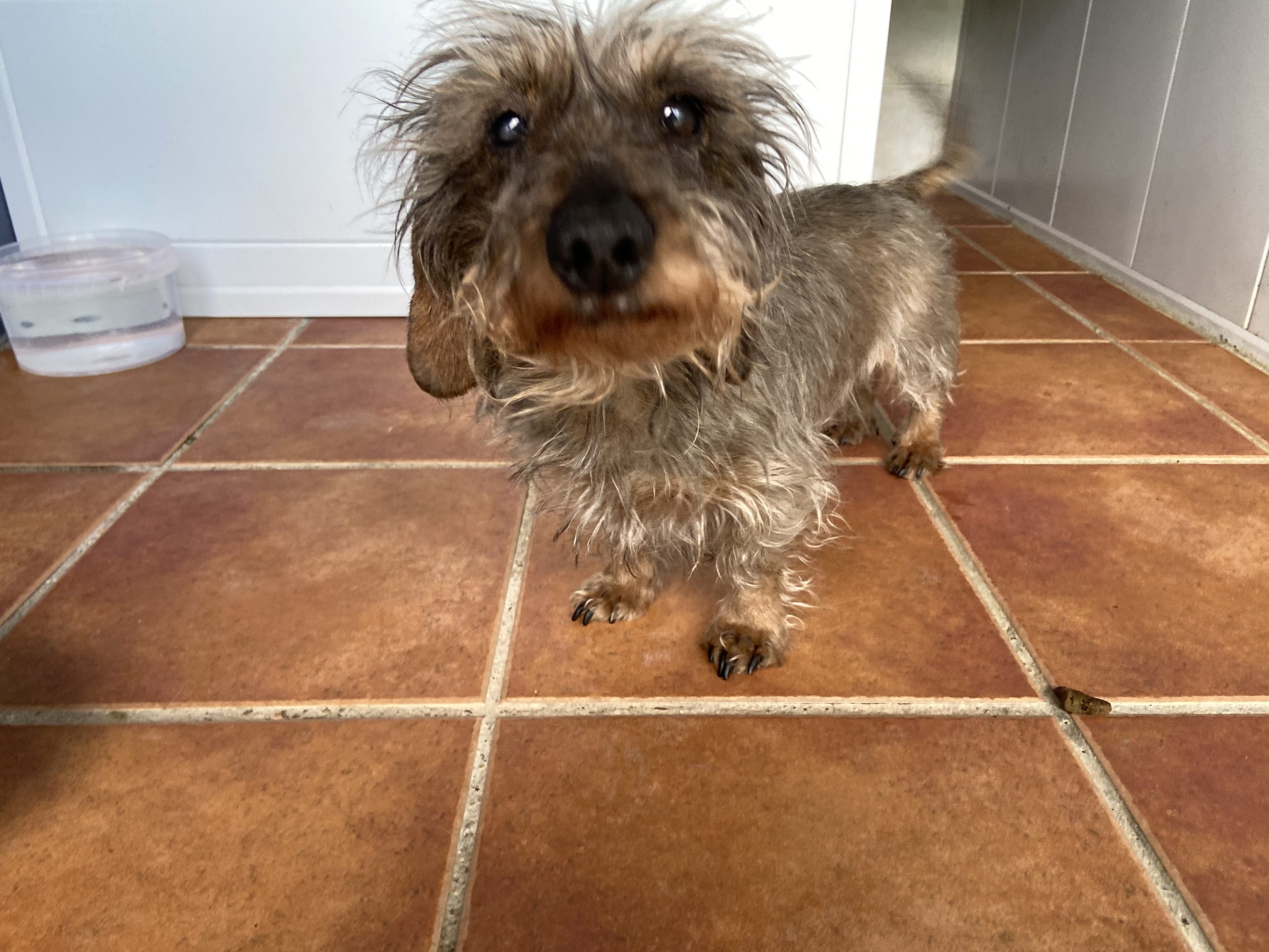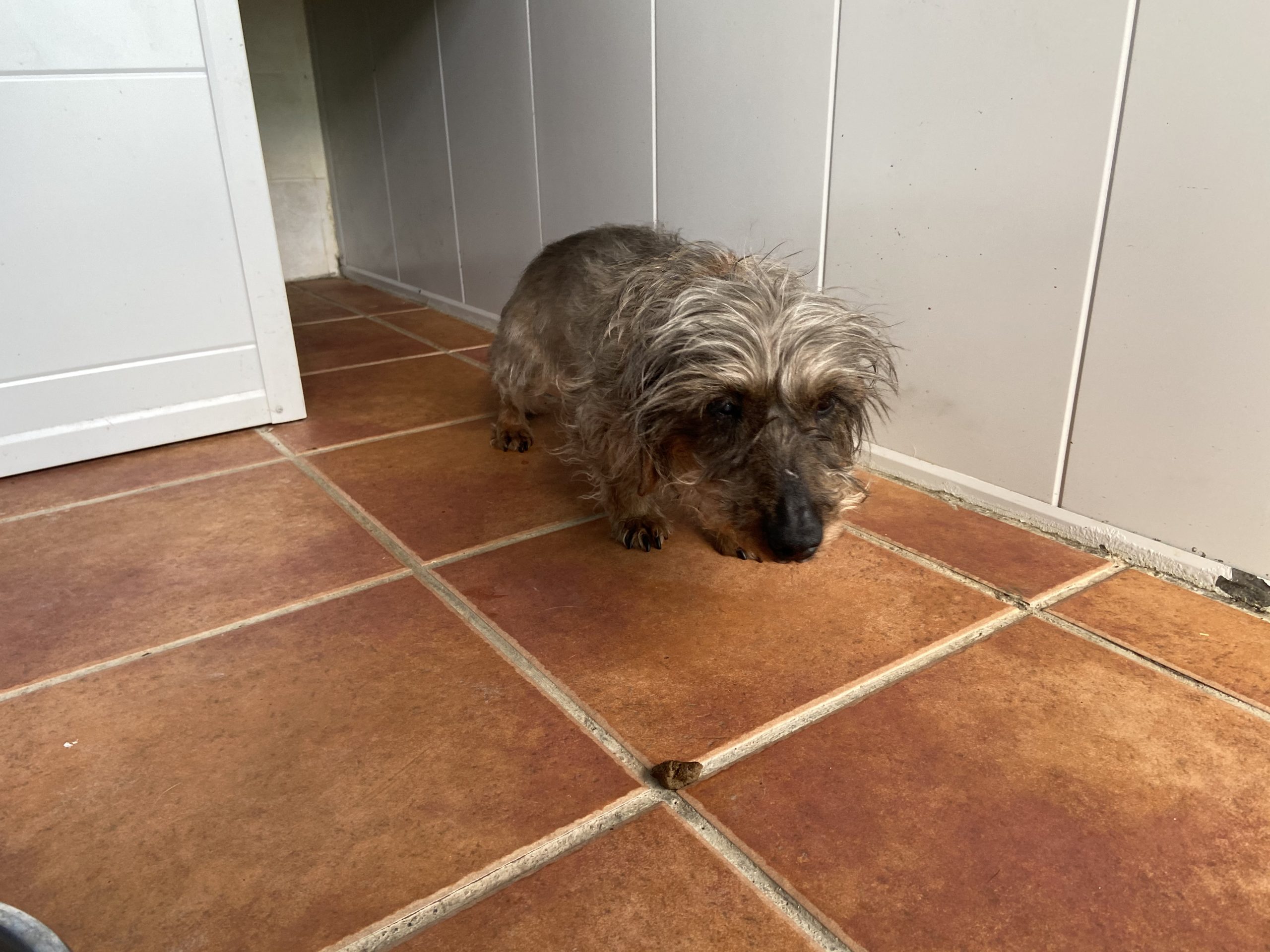 Eartha es una teckel mayorcita que nos la han traido contándonos unas mentiras que ya están puestas en conocimiento de la Policia, para que pueda actuar y abrir diligencias cuando pasen estas semanas de alarma.