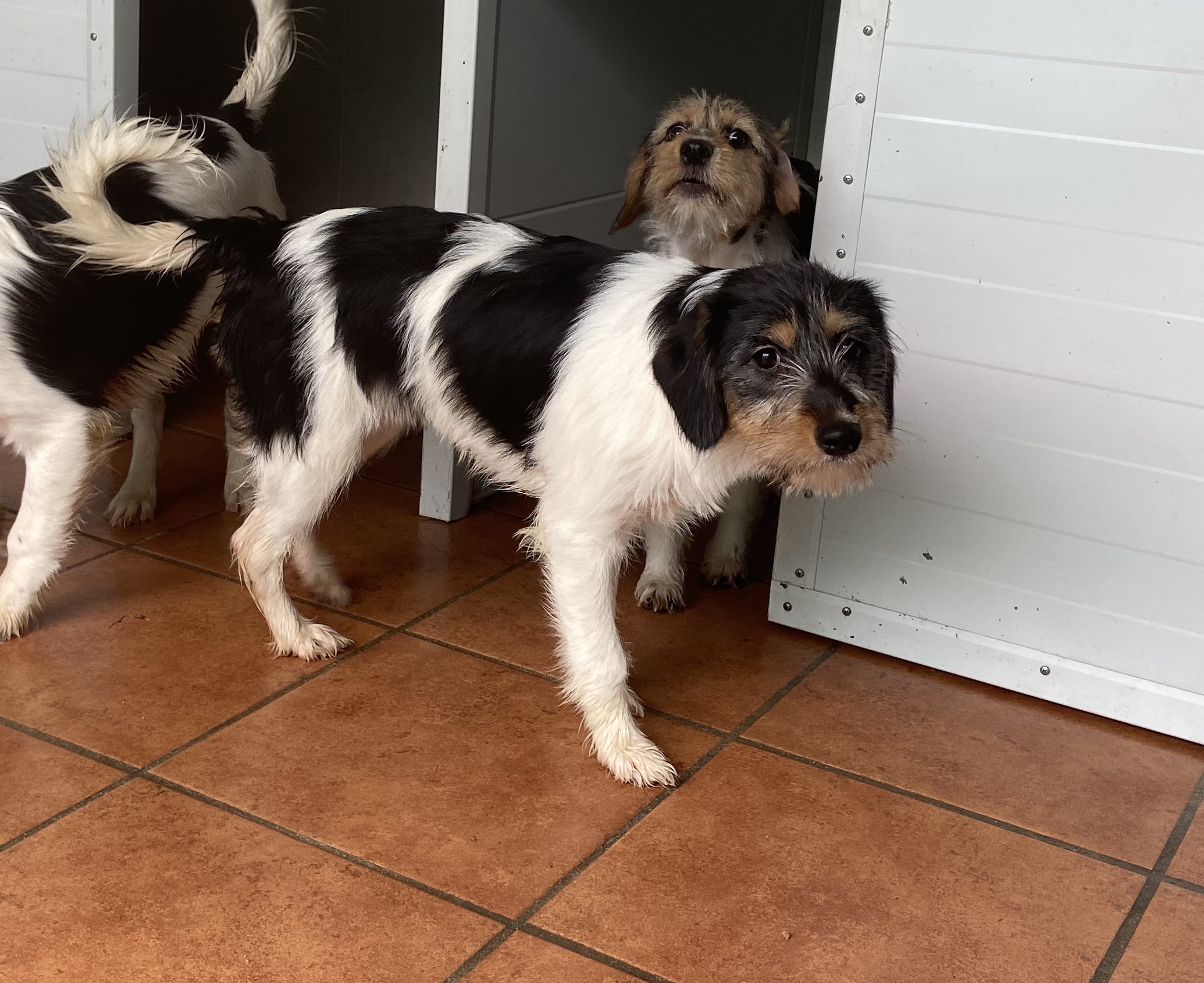 Además los cuatro no han tenido casi contacto humano, Luna es la única que es un poco más cercana, desde el inicio a las caricias, pero sus hijos aún les asusta el contacto humano aunque cada día les gusta más, ya le han dado lametones a algunas voluntarias, han recibido nuestras caricias…en seguida estarán dispuestas para ser adoptadas y tener un verdadero hogar.